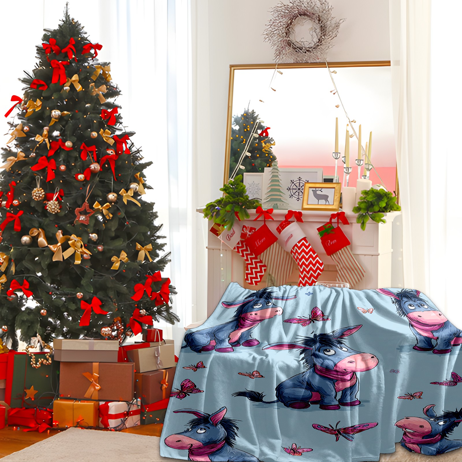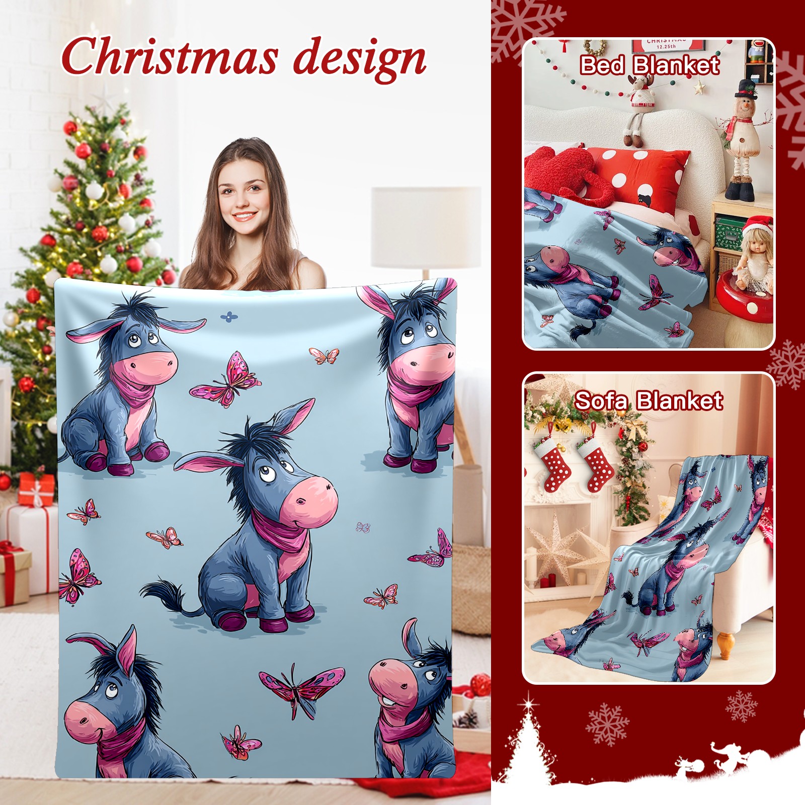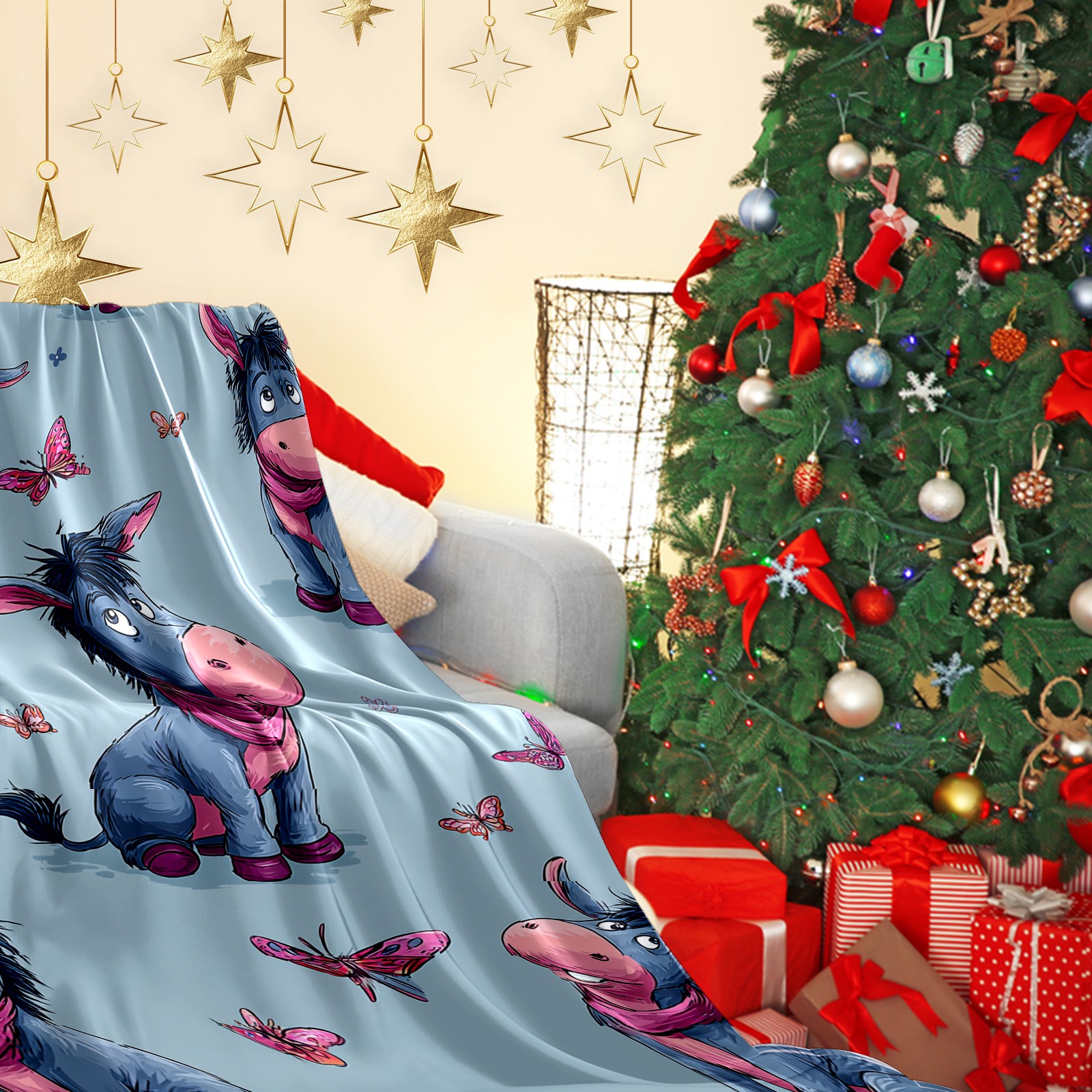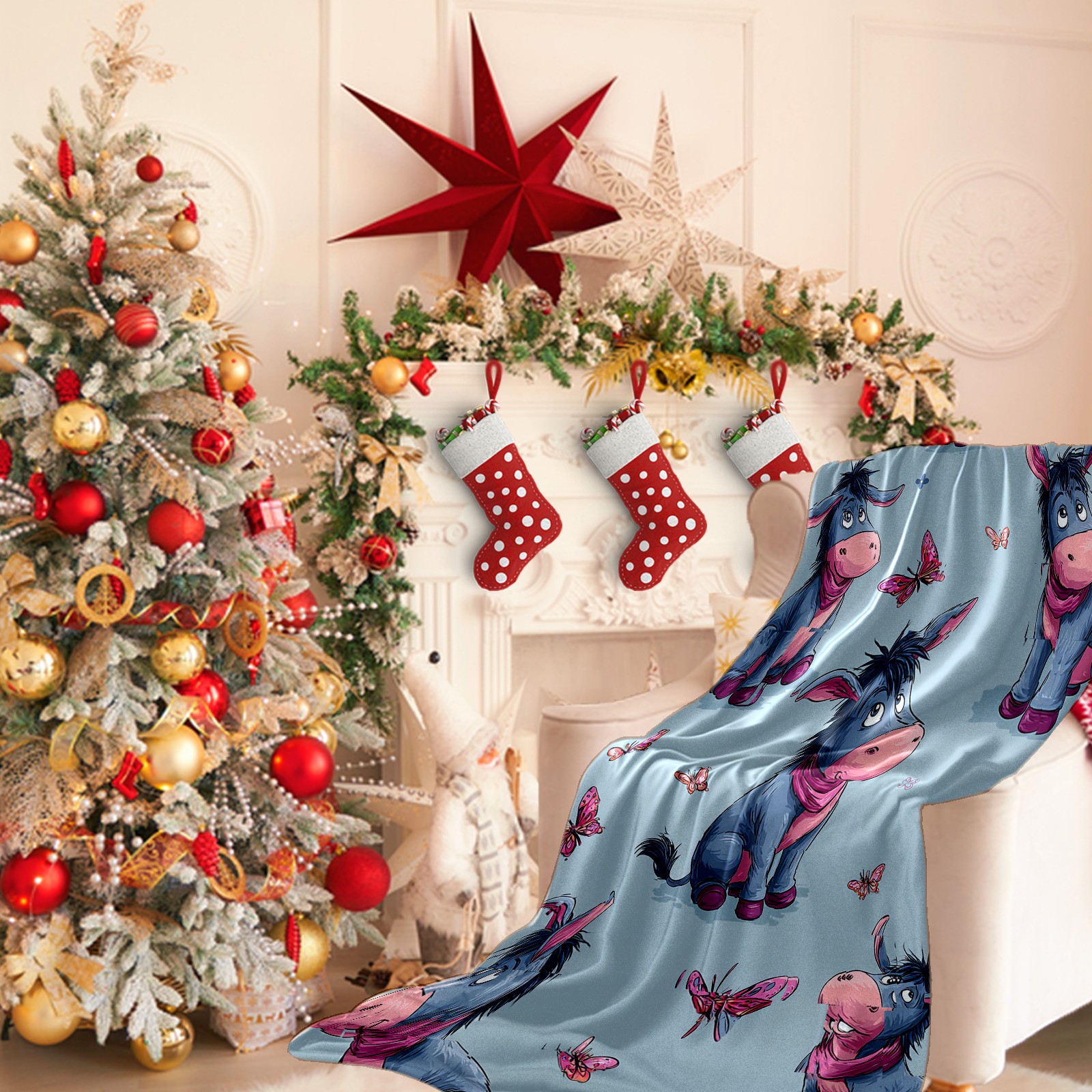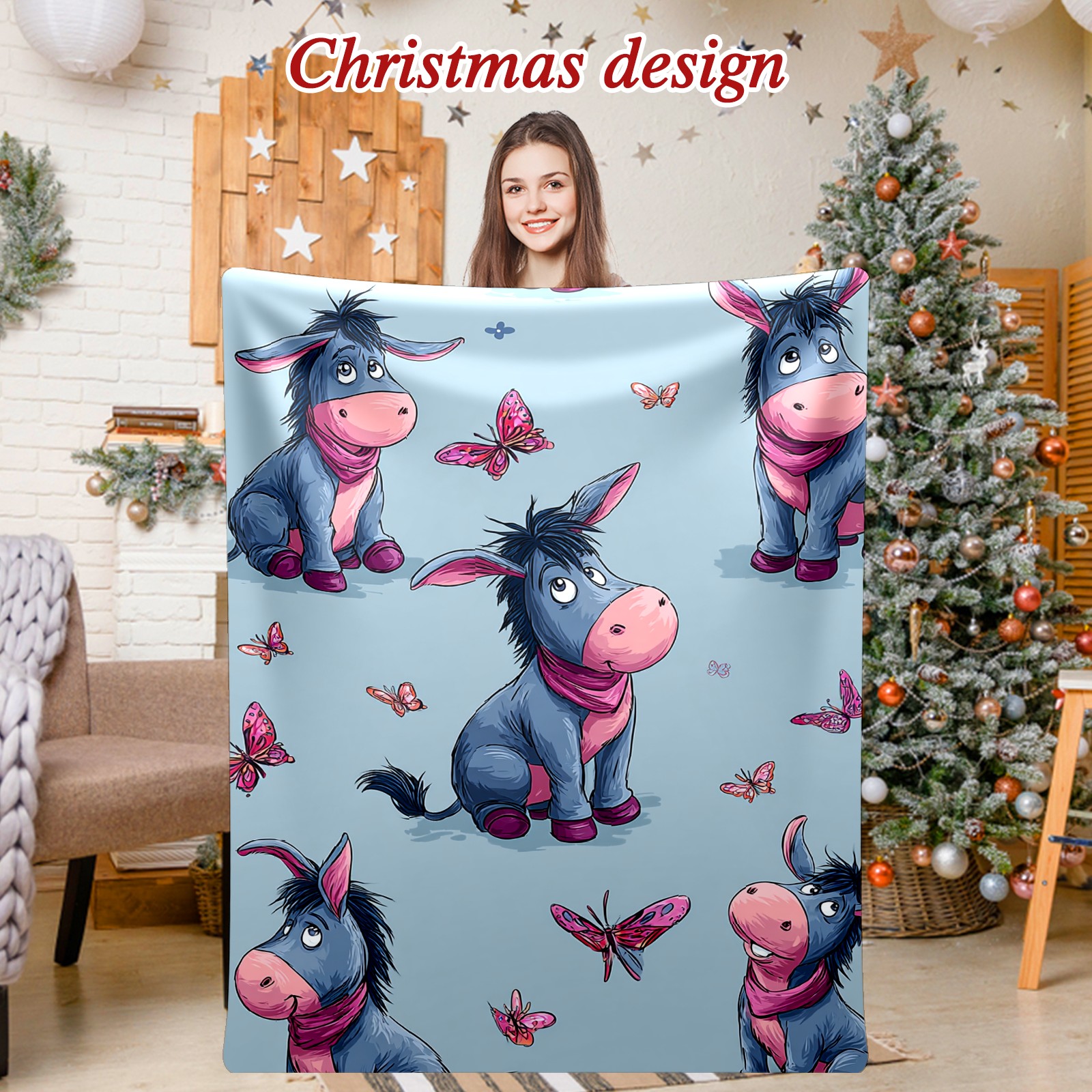 Премиальная фланелевая одеяло Donkey Butterfly Blue