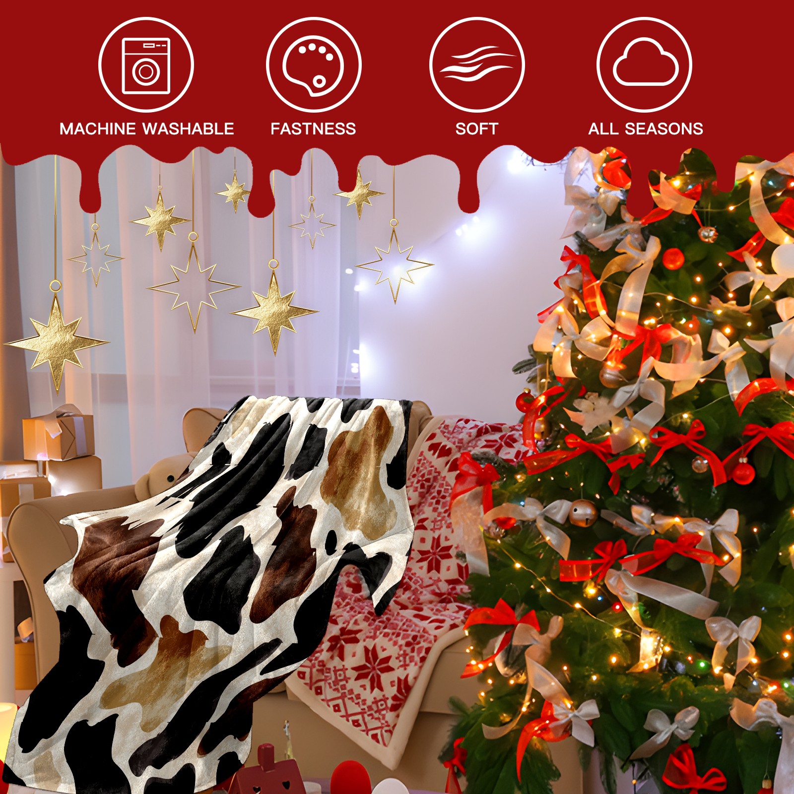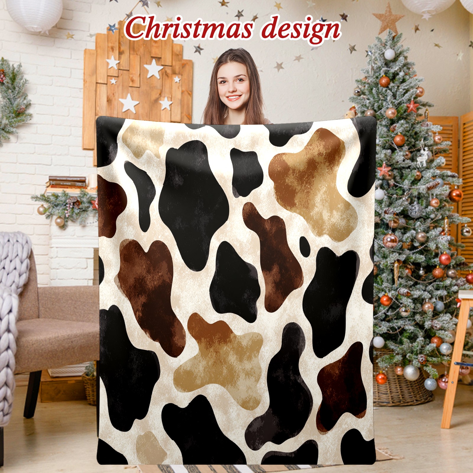 Премиальная фланелевая одеяло Vintage Brown Cow