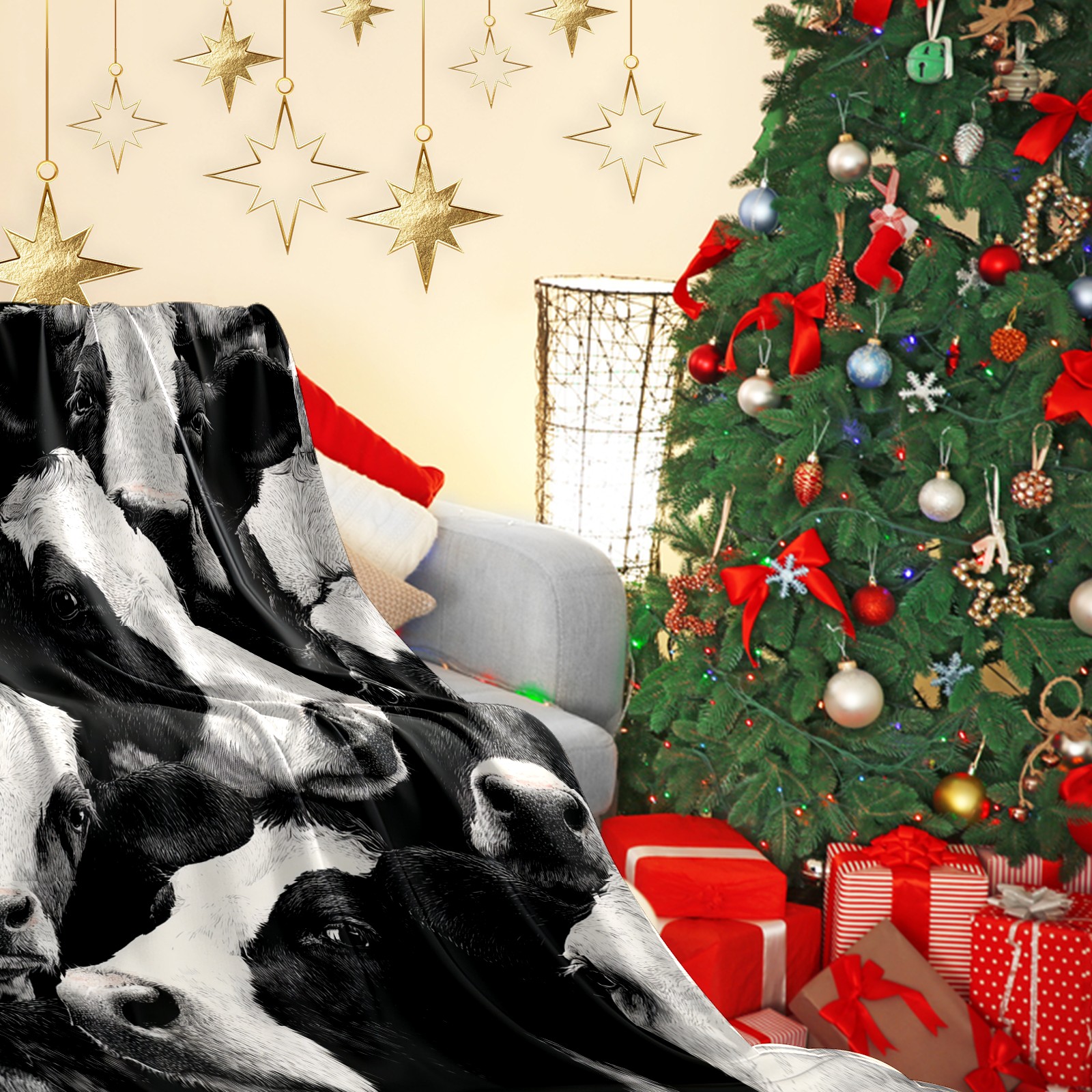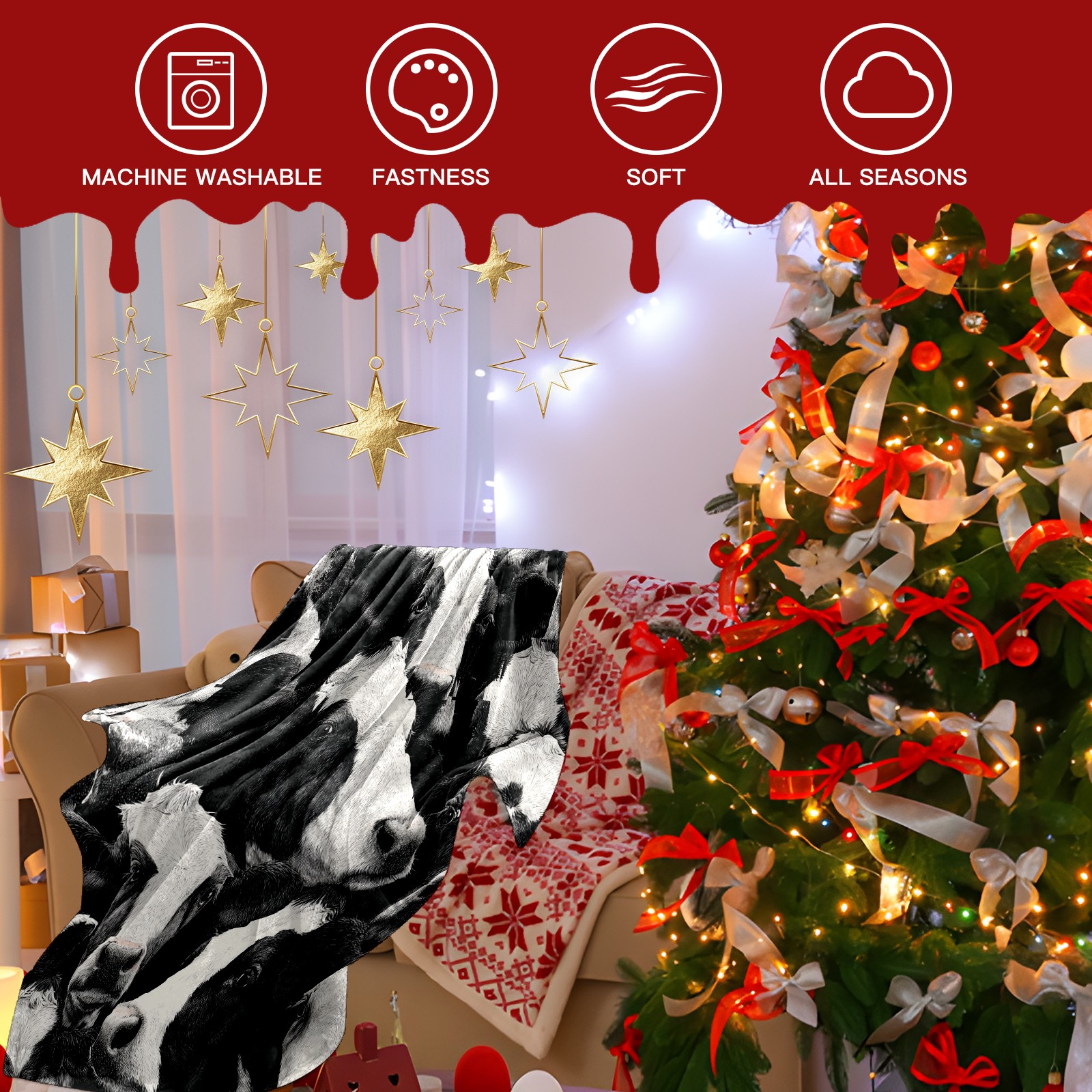 Премиальная фланелевая одеяло Fresh Cow White