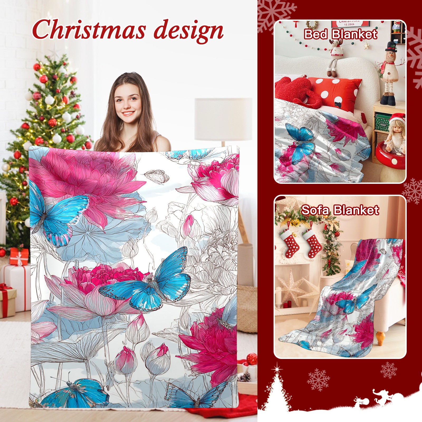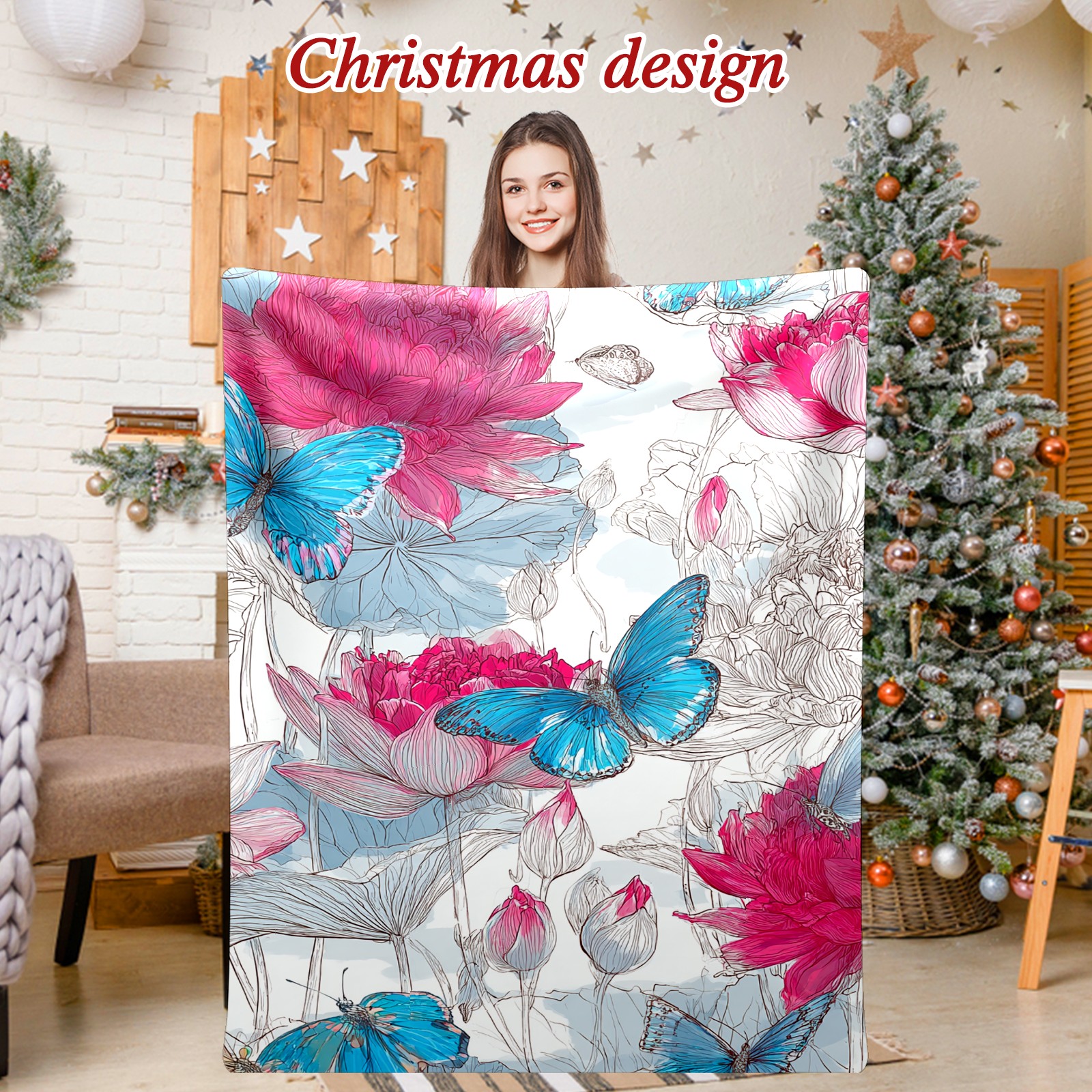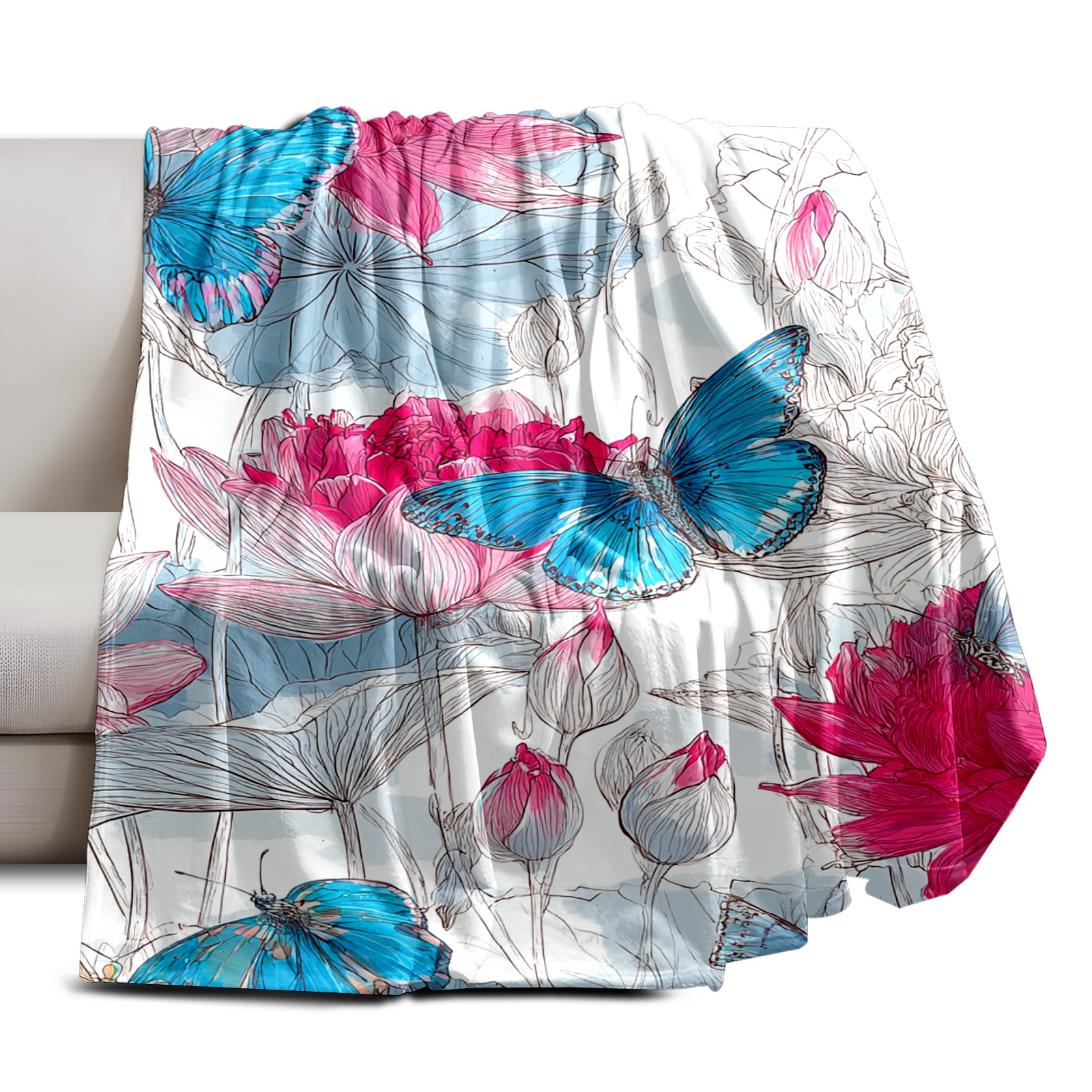 Премиальная фланелевая одеяло Pink Blue Butterflies