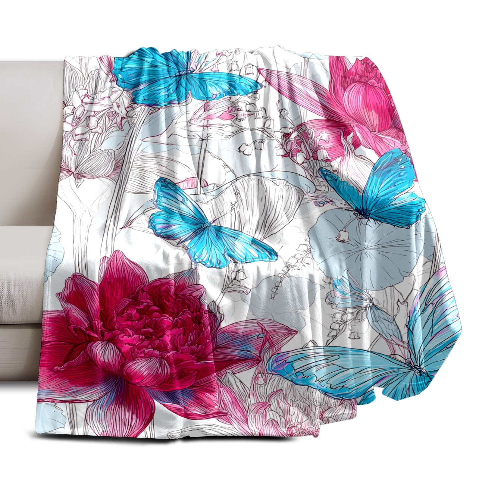 Премиальная фланелевая одеяло Romantic Blue Butterflies