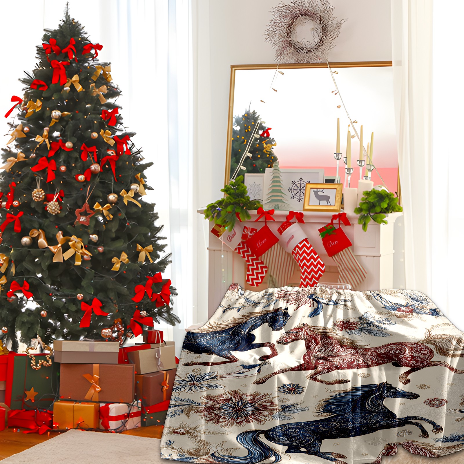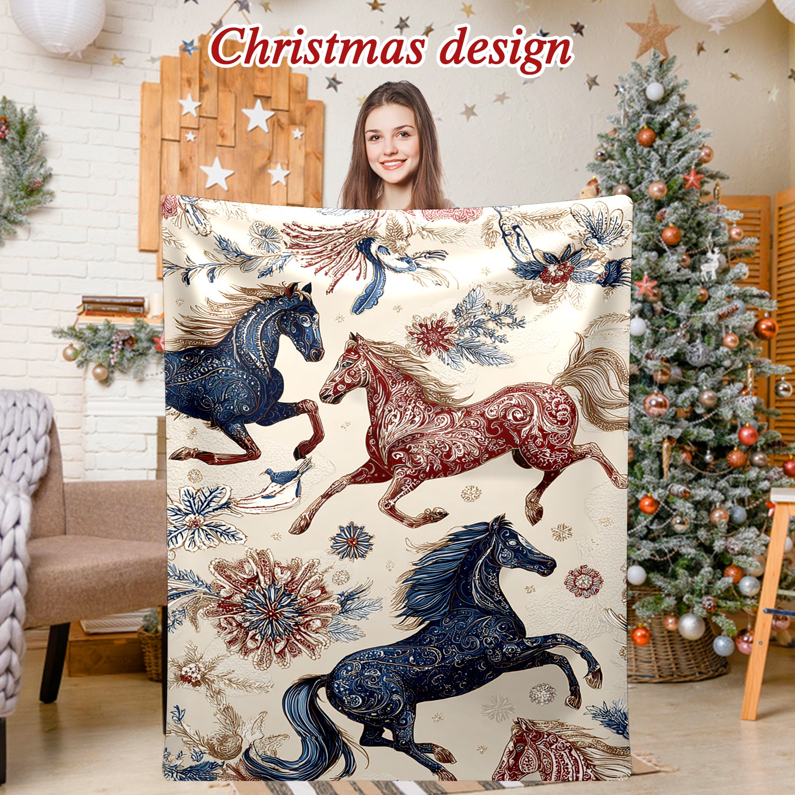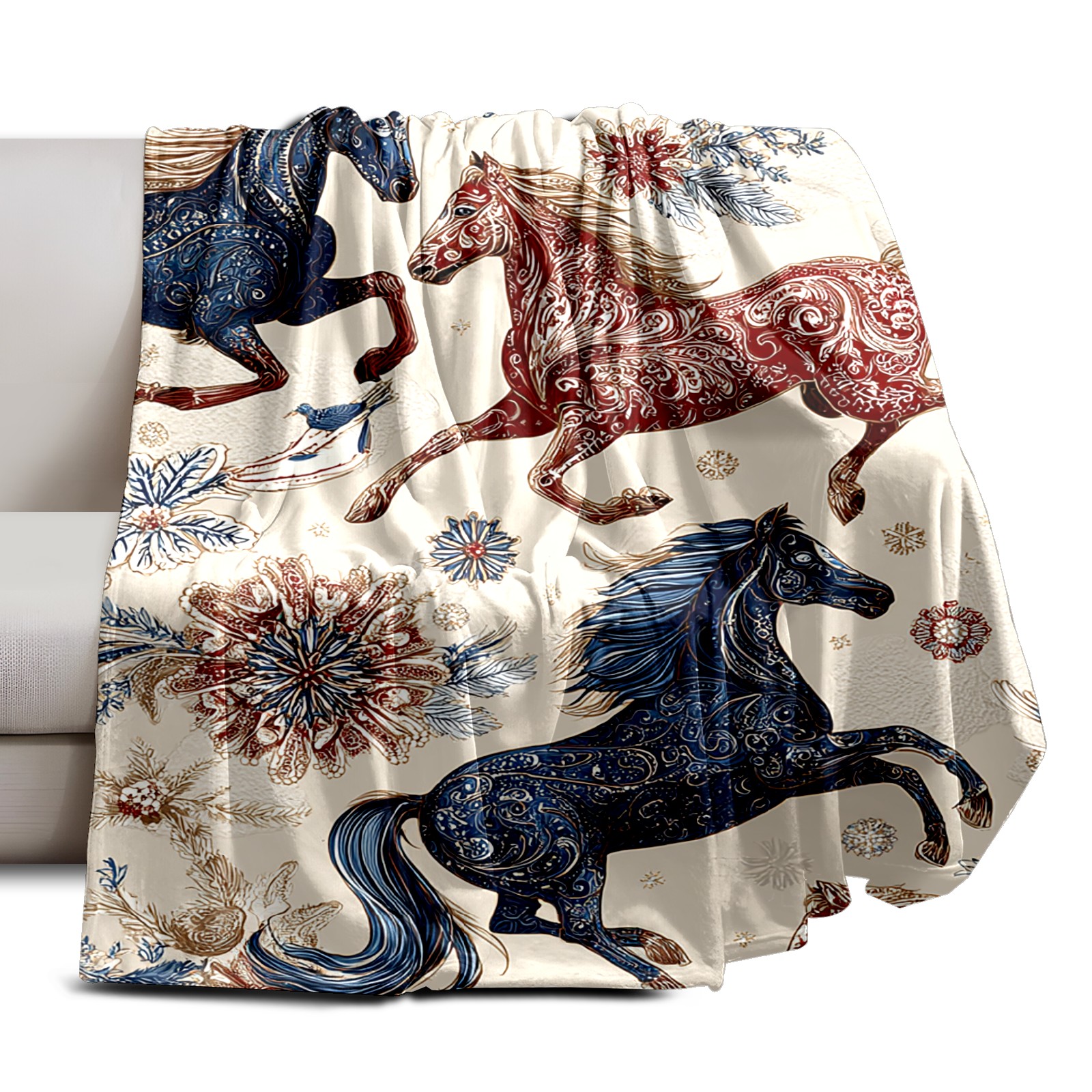 Премиальная фланелевая одеяло Vintage Horse Beige