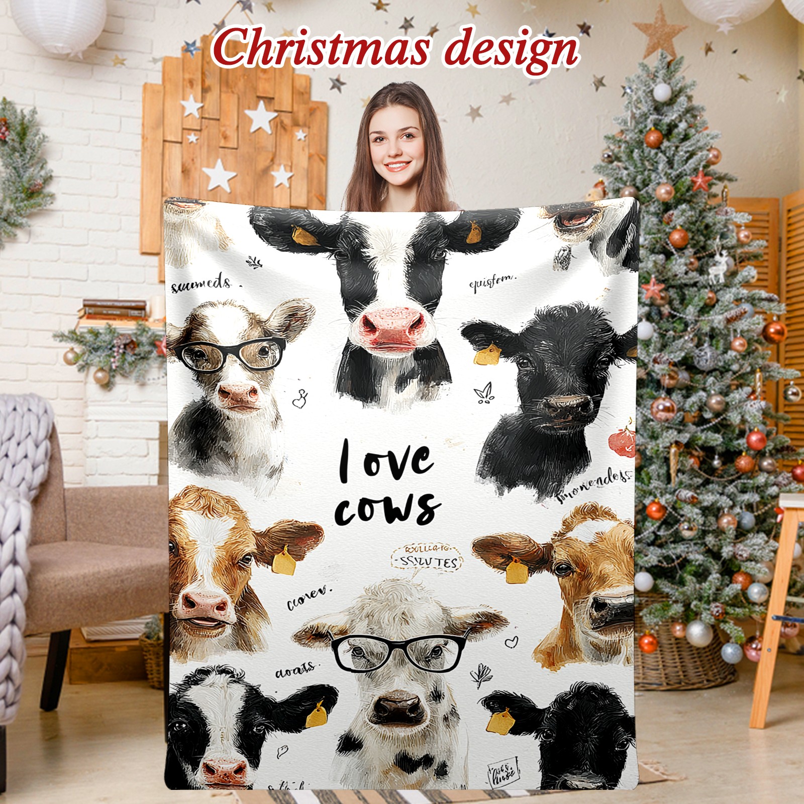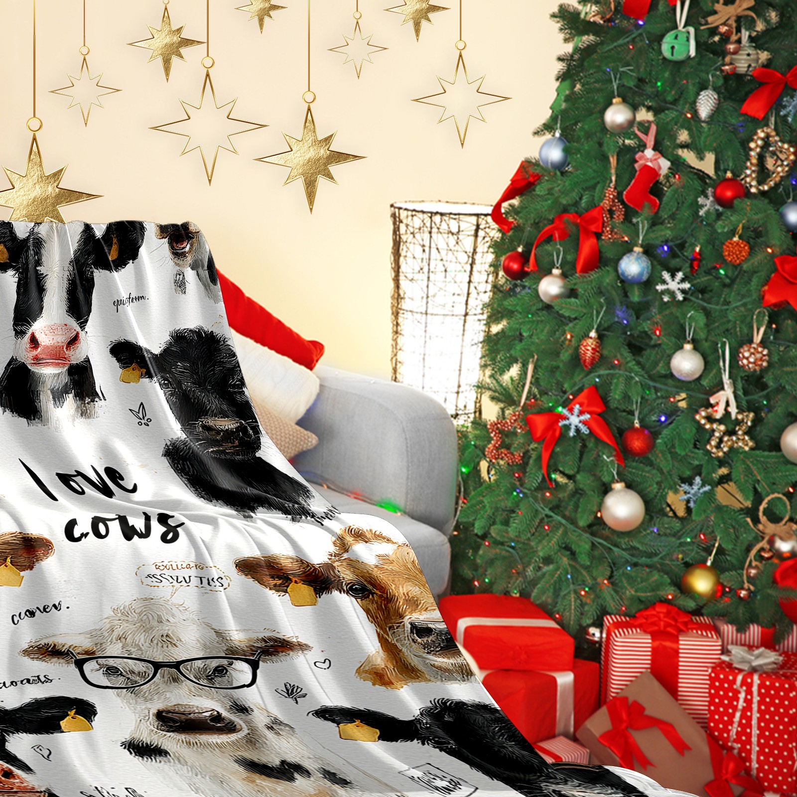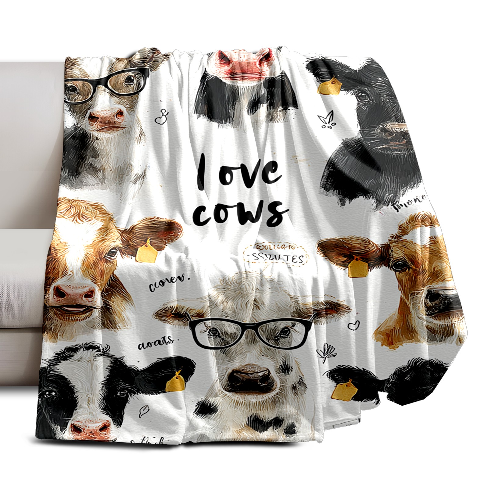 Премиальная фланелевая одеяло Cute Cow White
