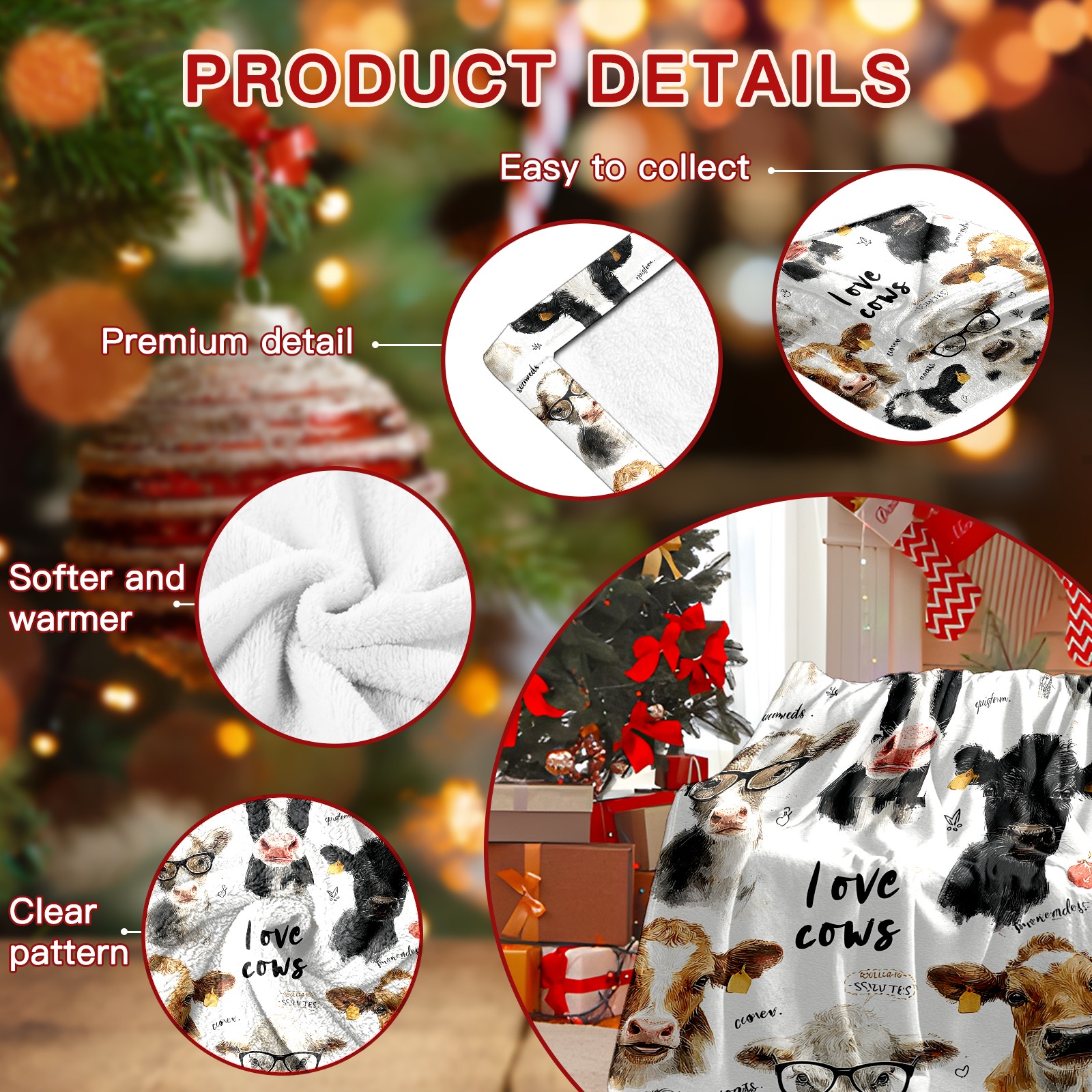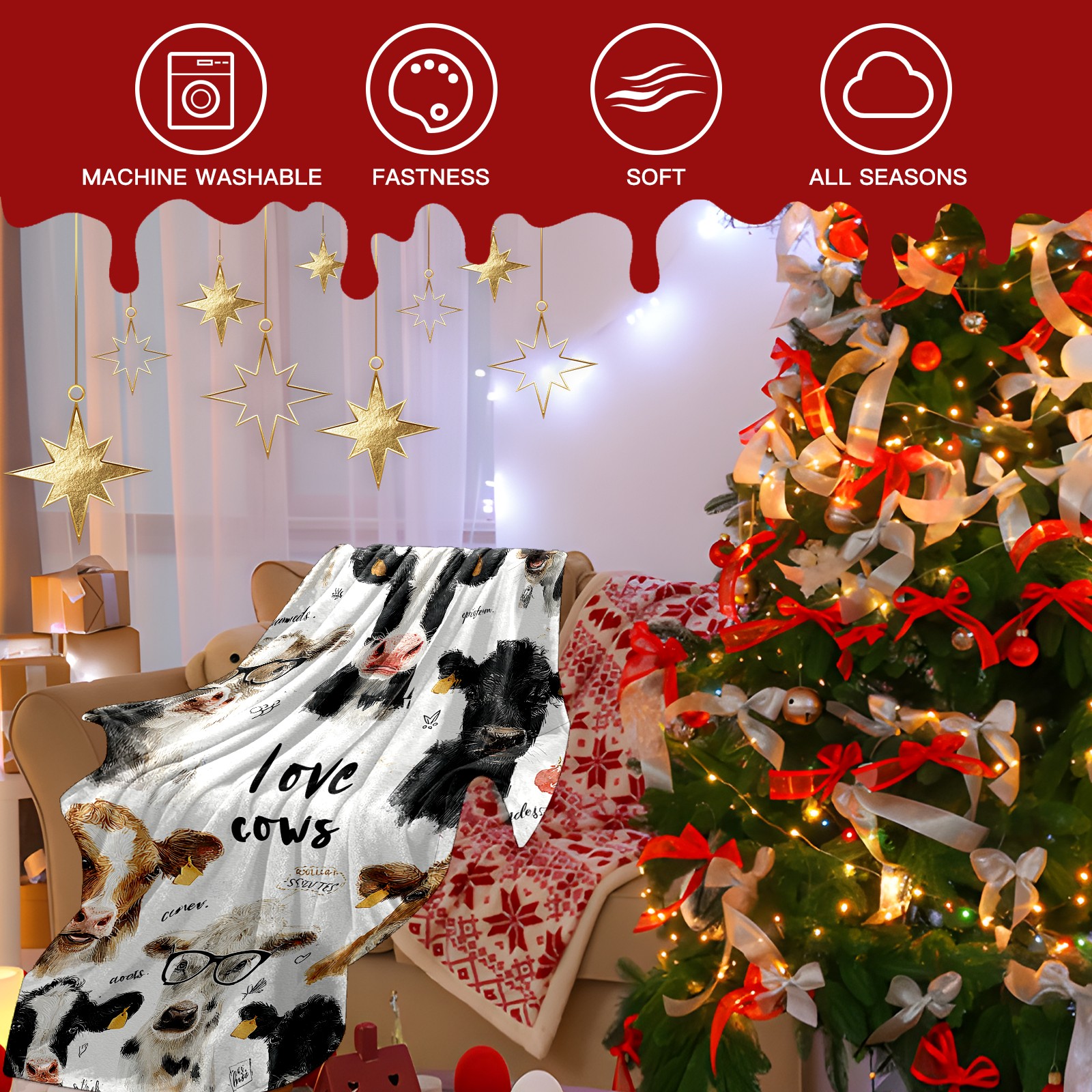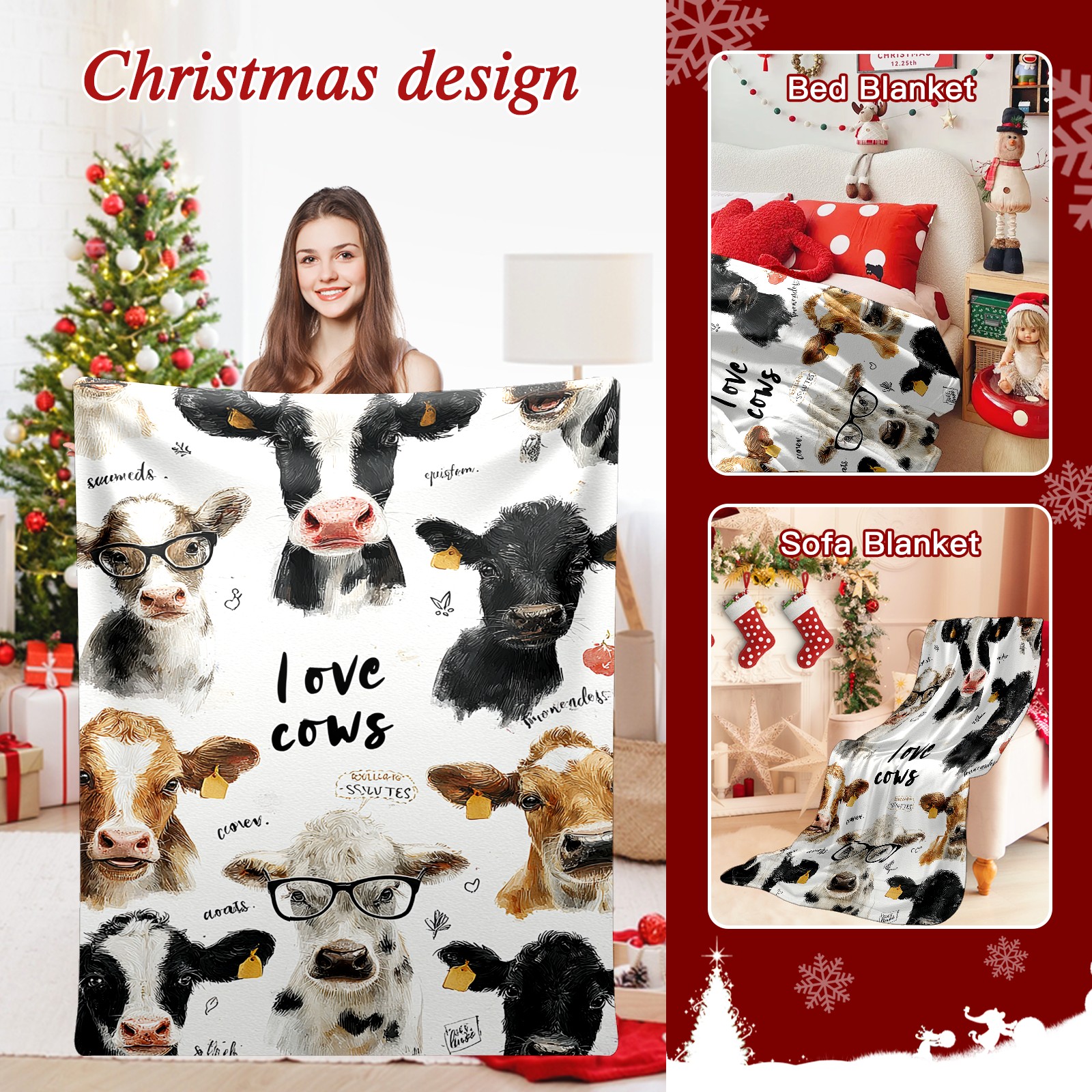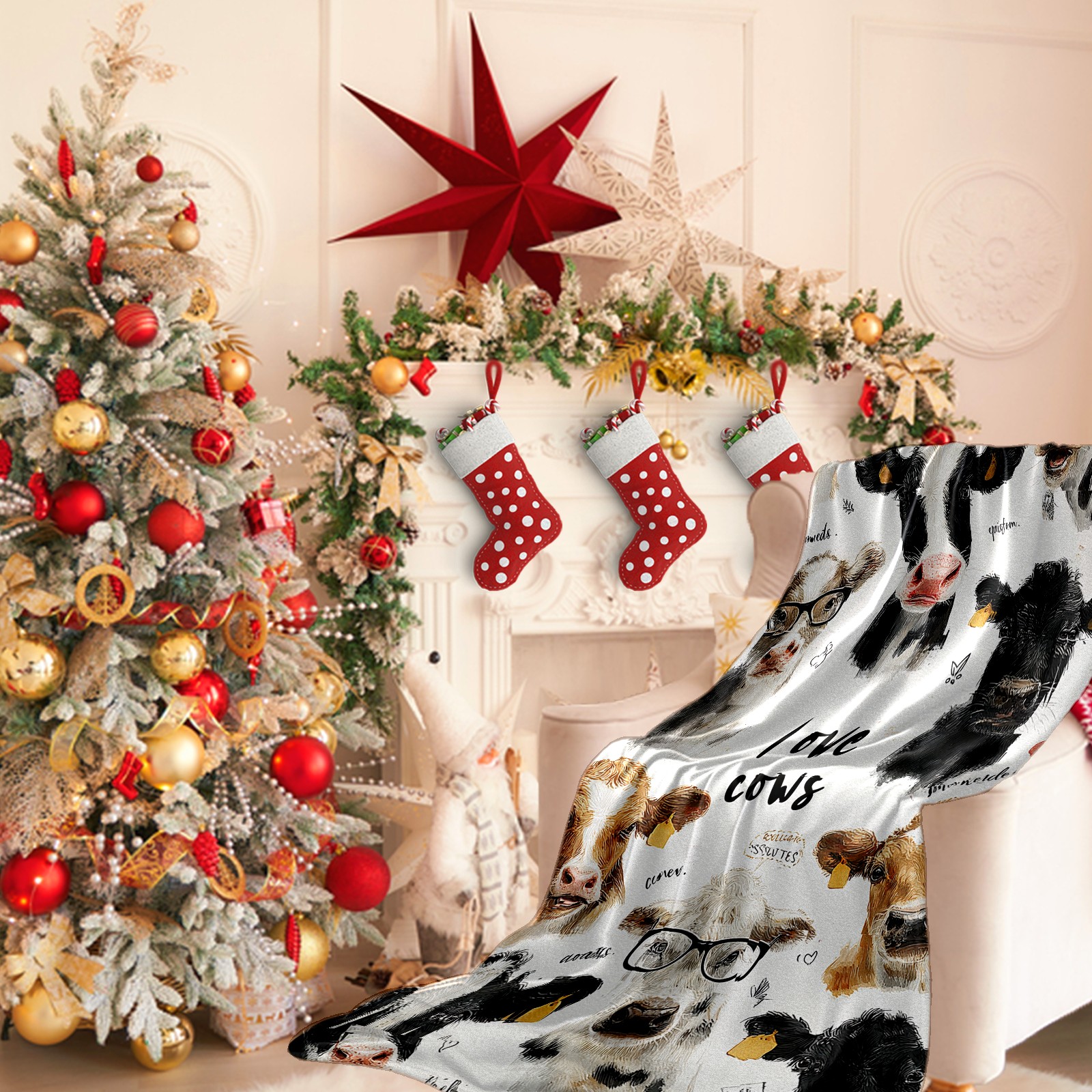 Премиальная фланелевая одеяло Cute Cow White