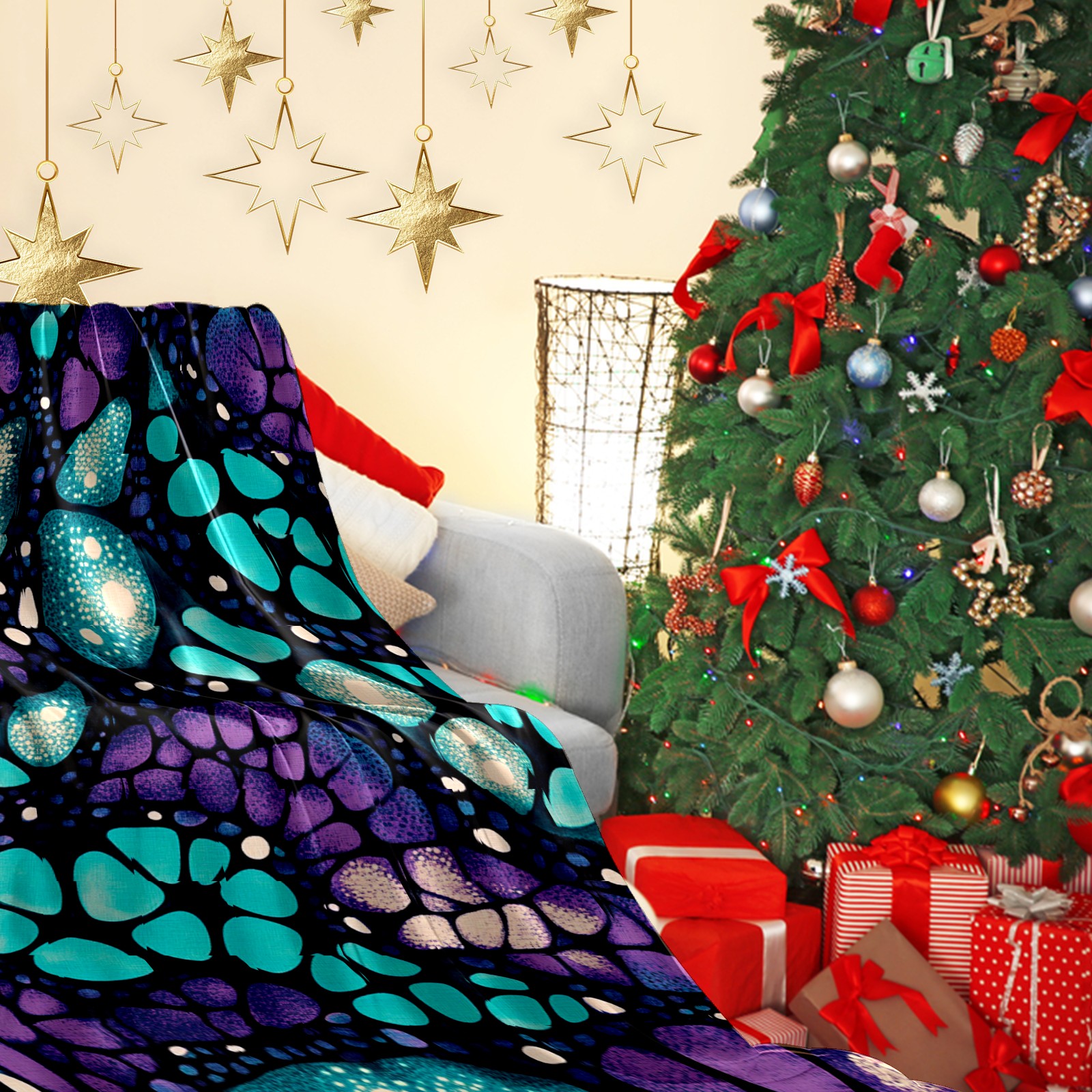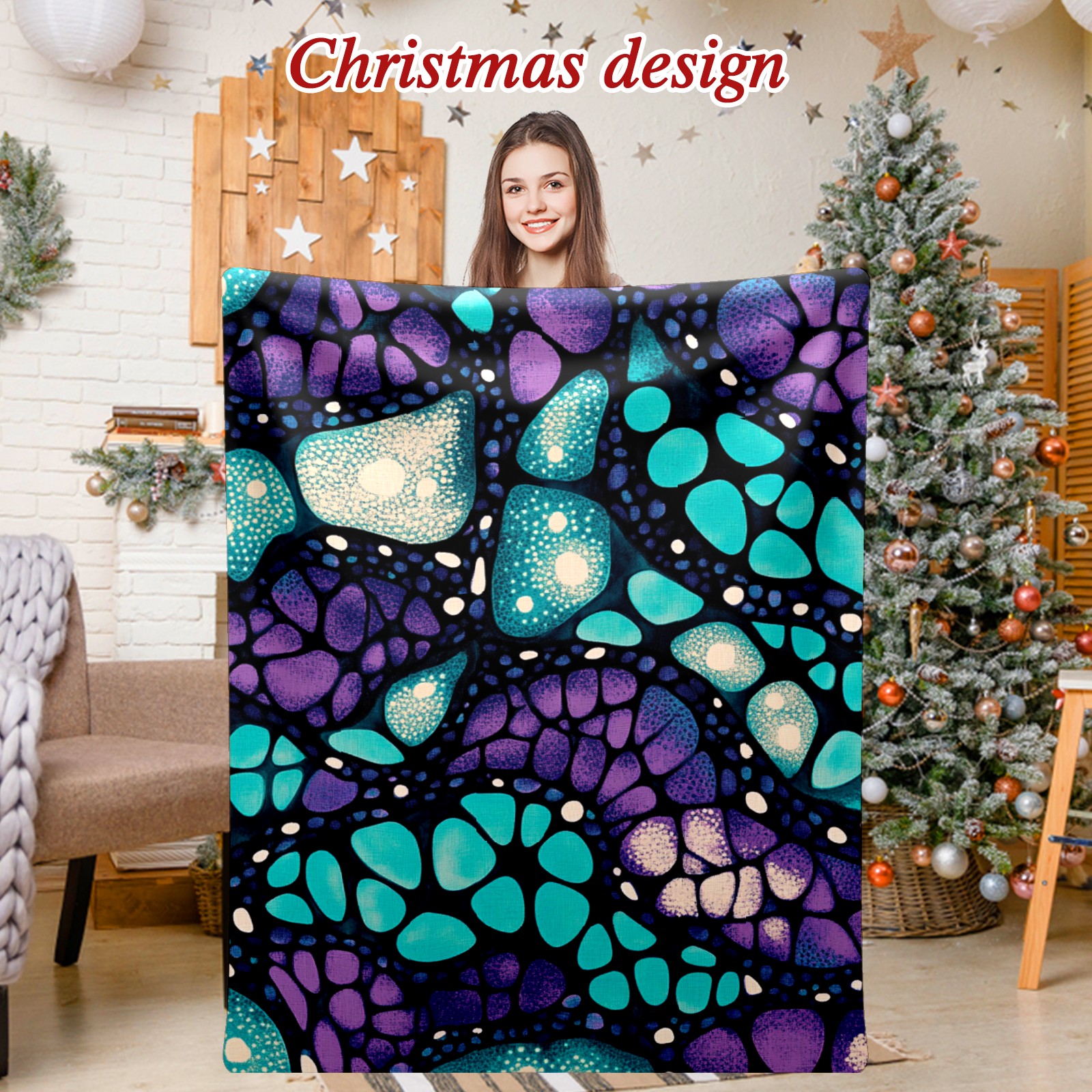 Премиальная фланелевая одеяло Purple Stone Pattern