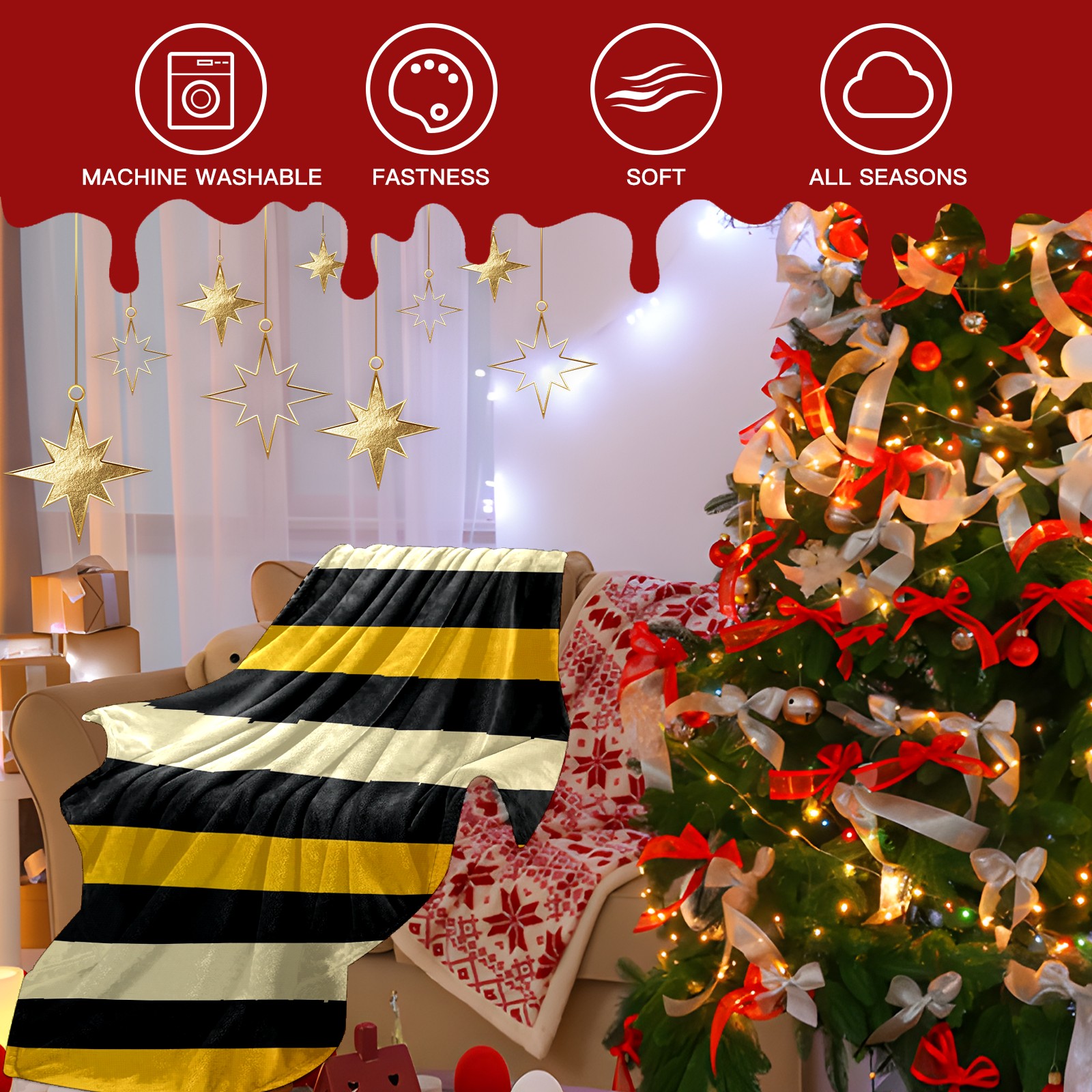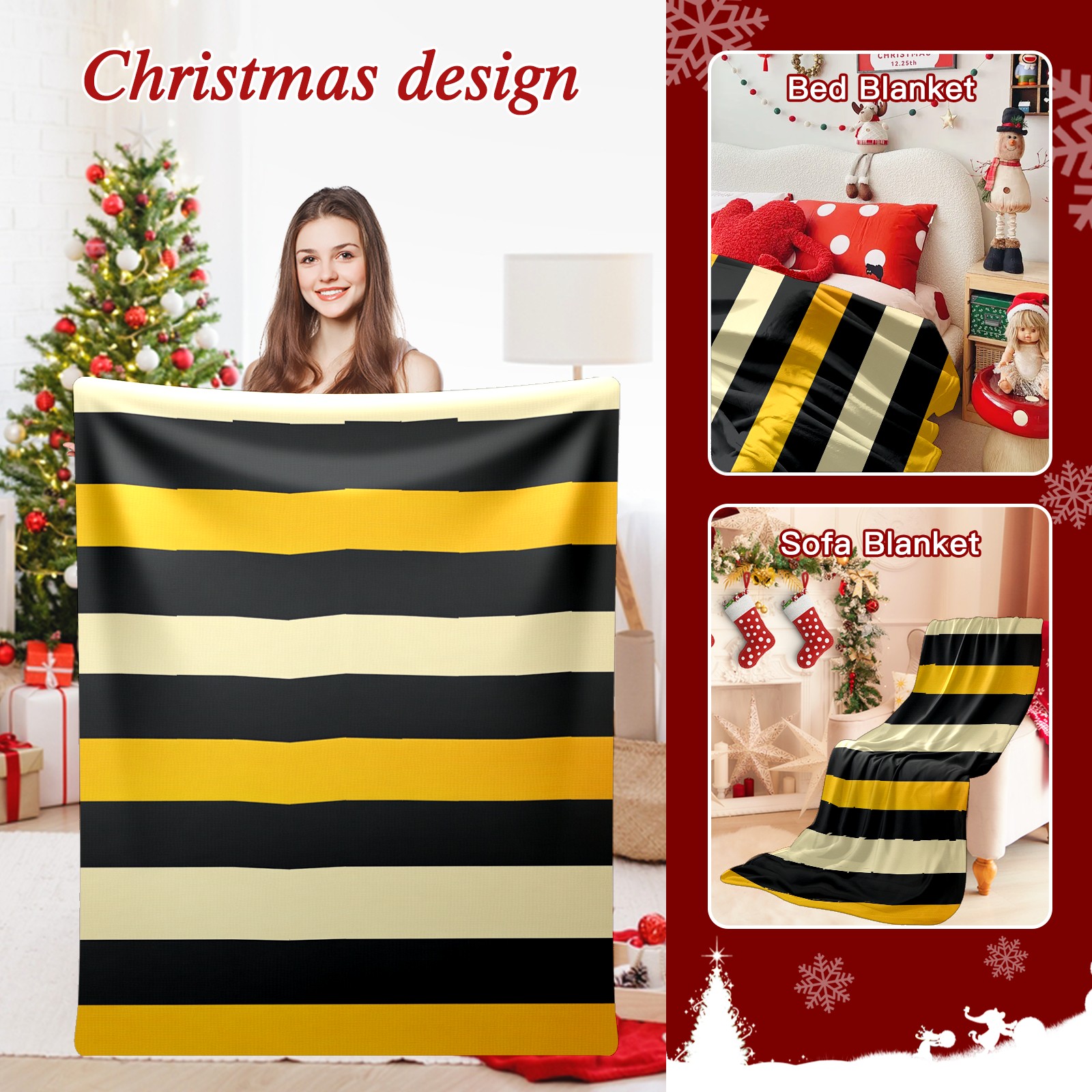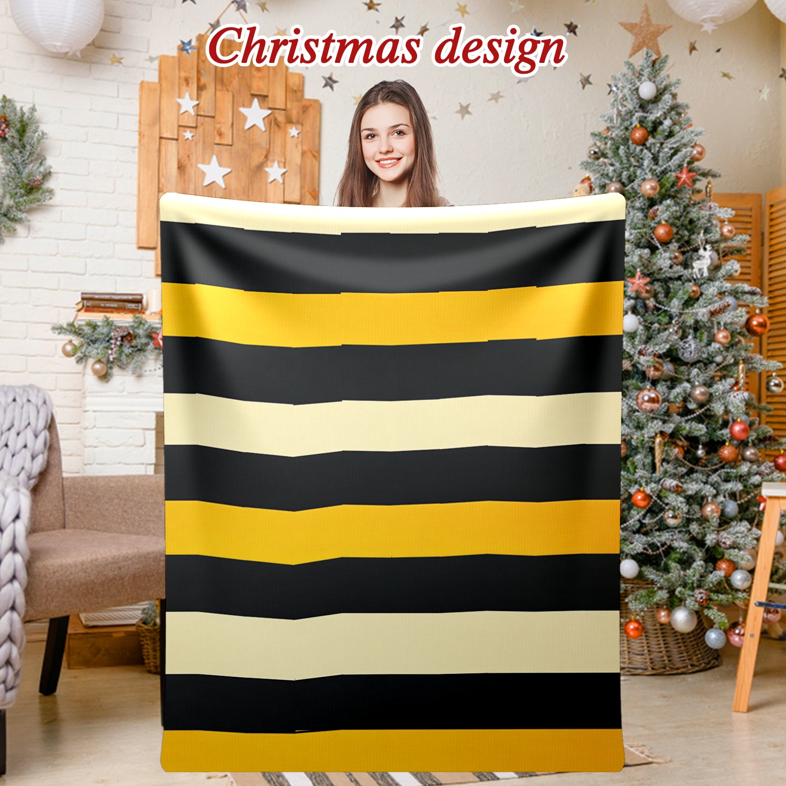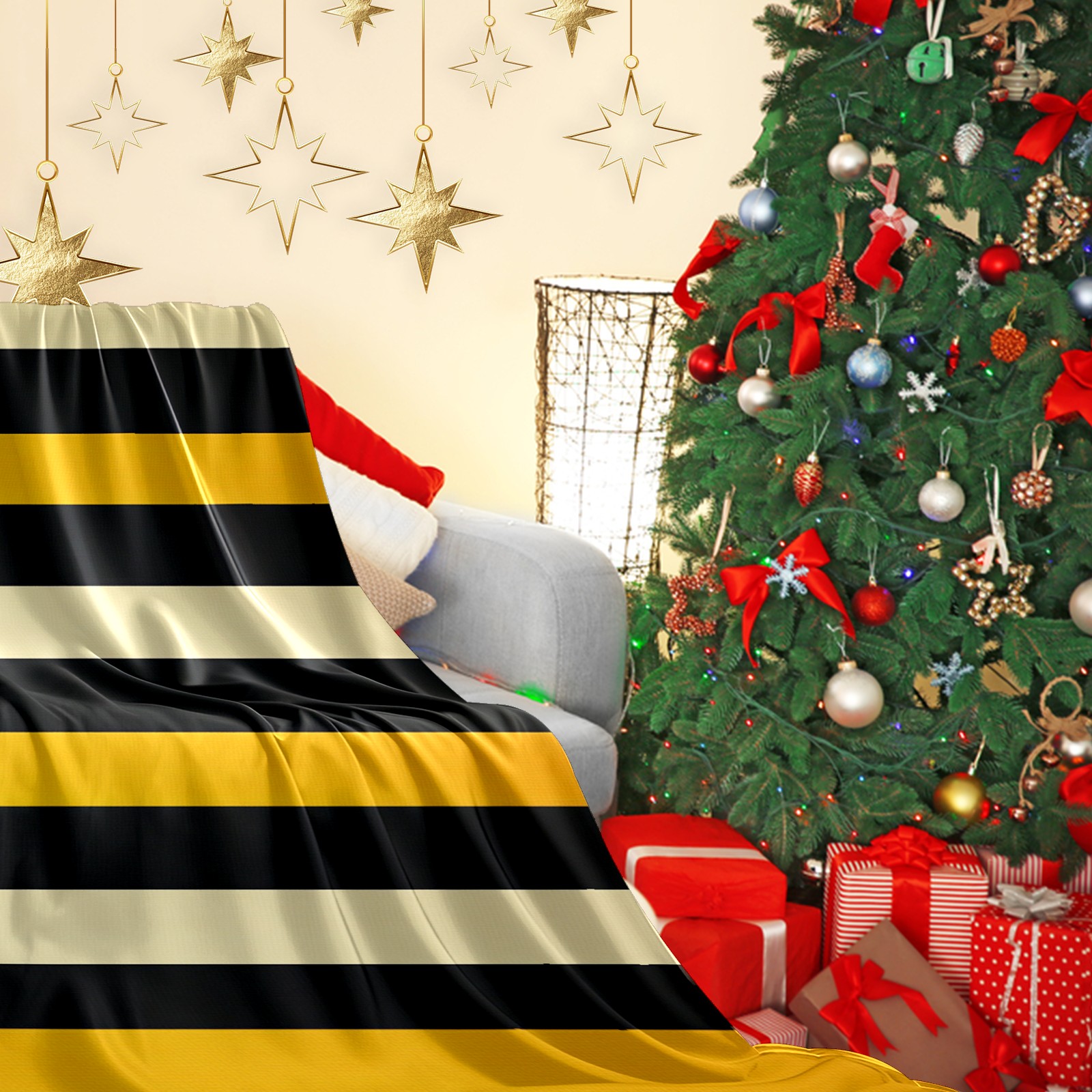Премиальная фланелевая одеяло Yellow Black Striped Pattern