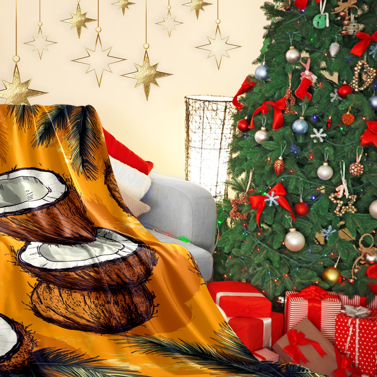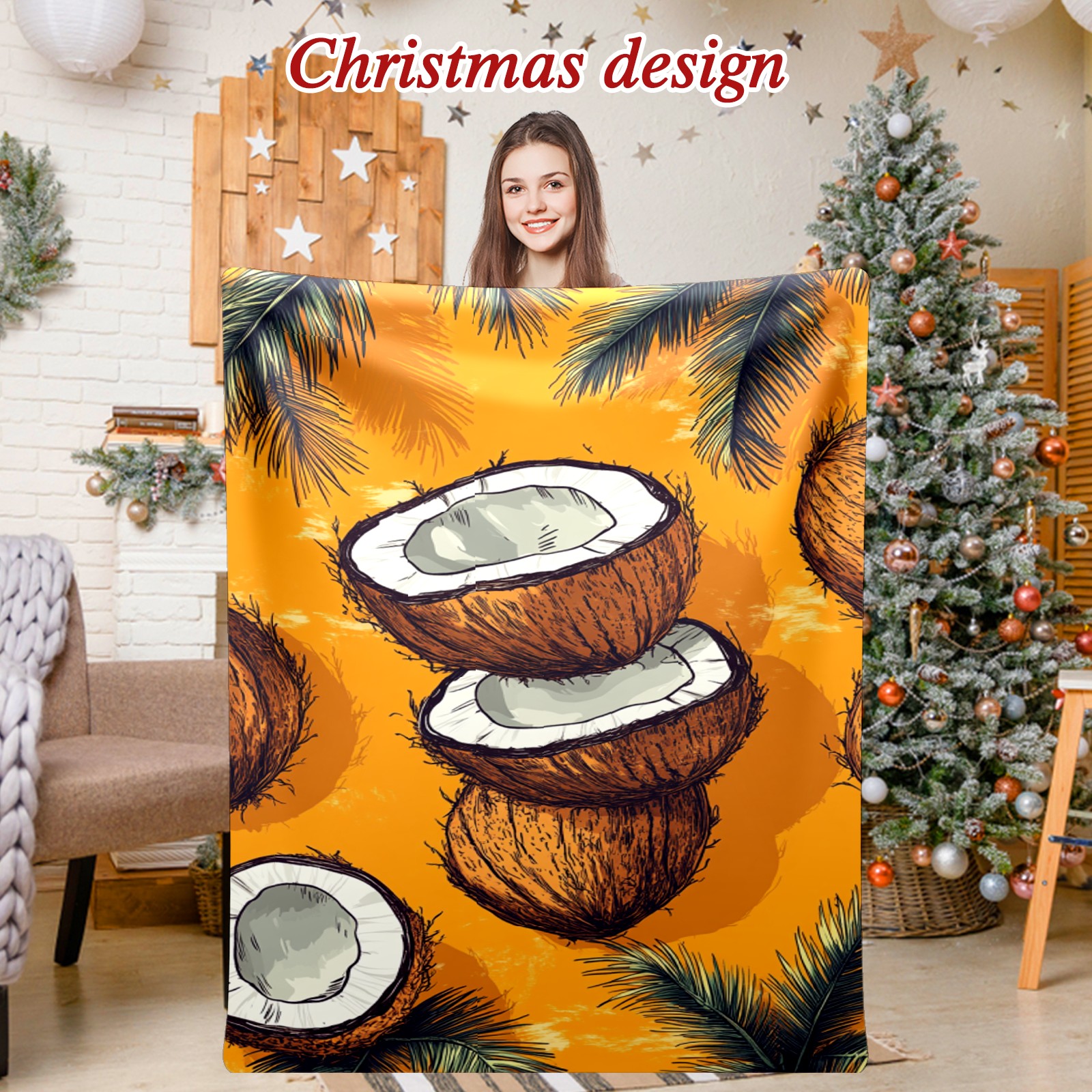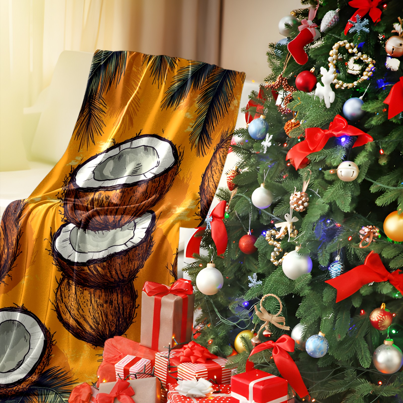 Премиальная фланелевая одеяло Retro Coconut Pattern