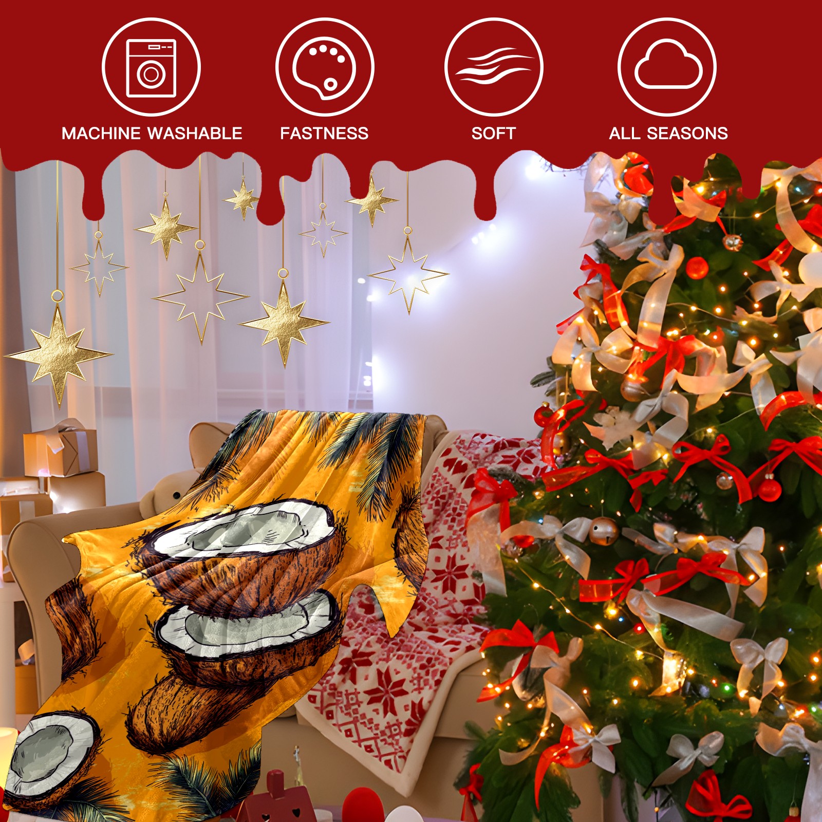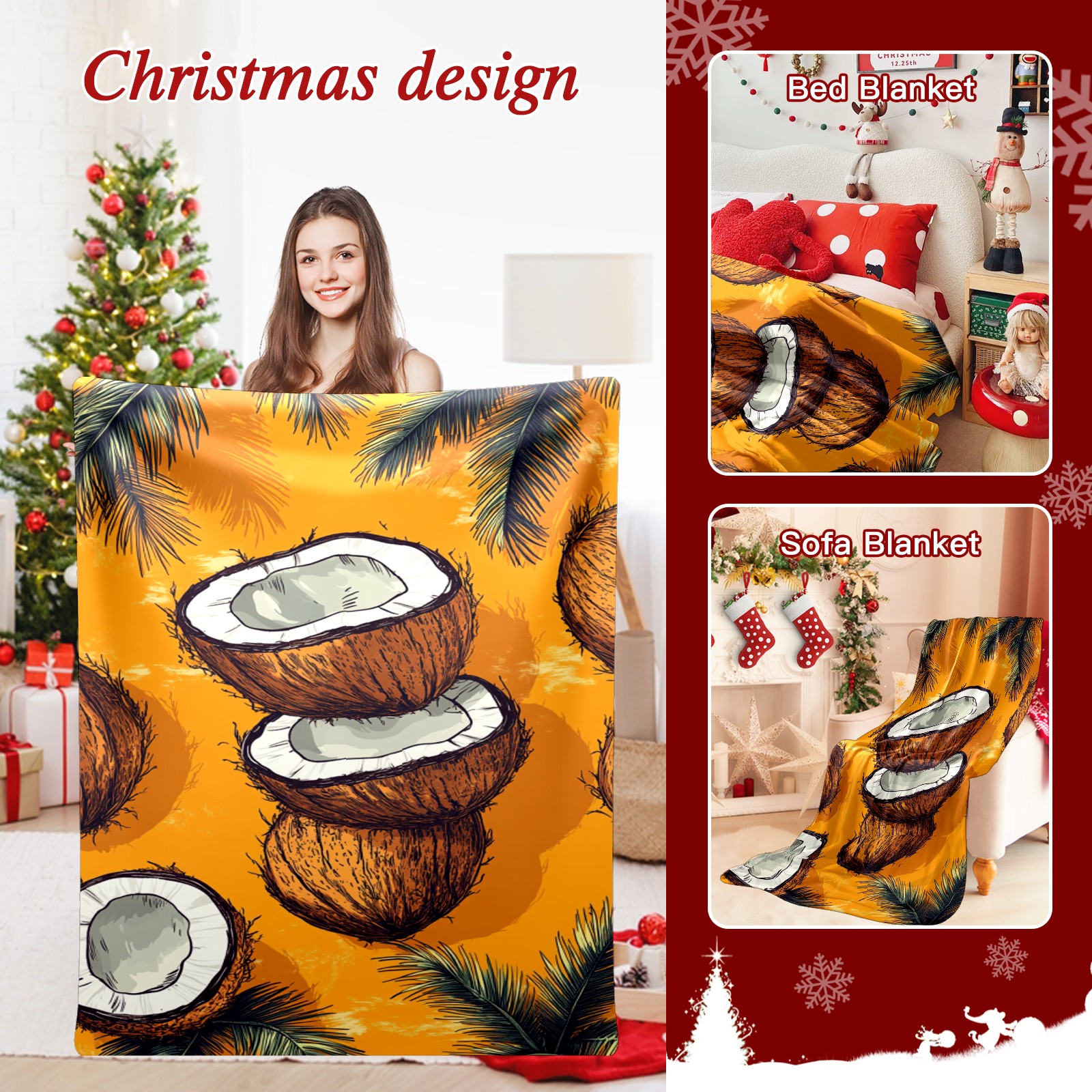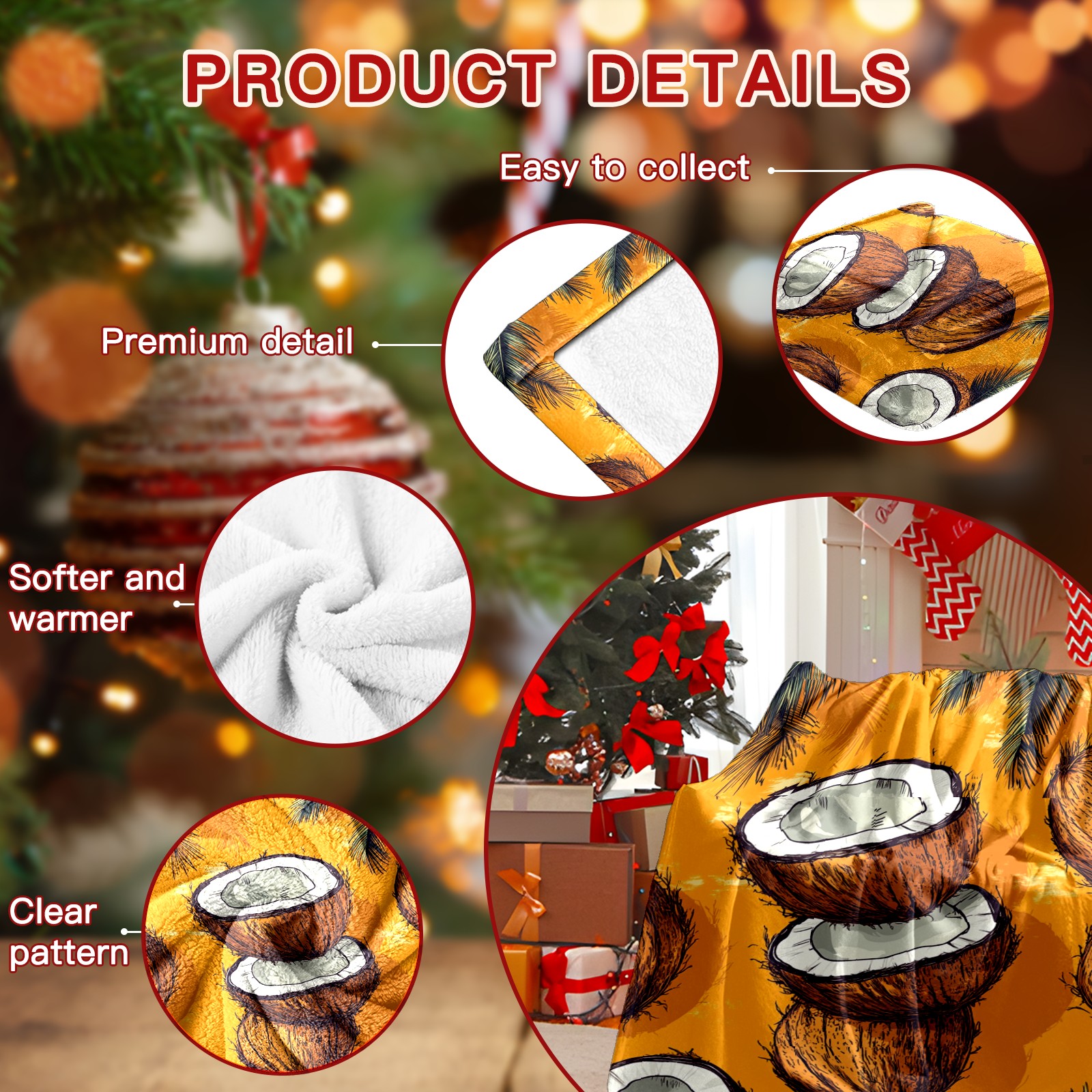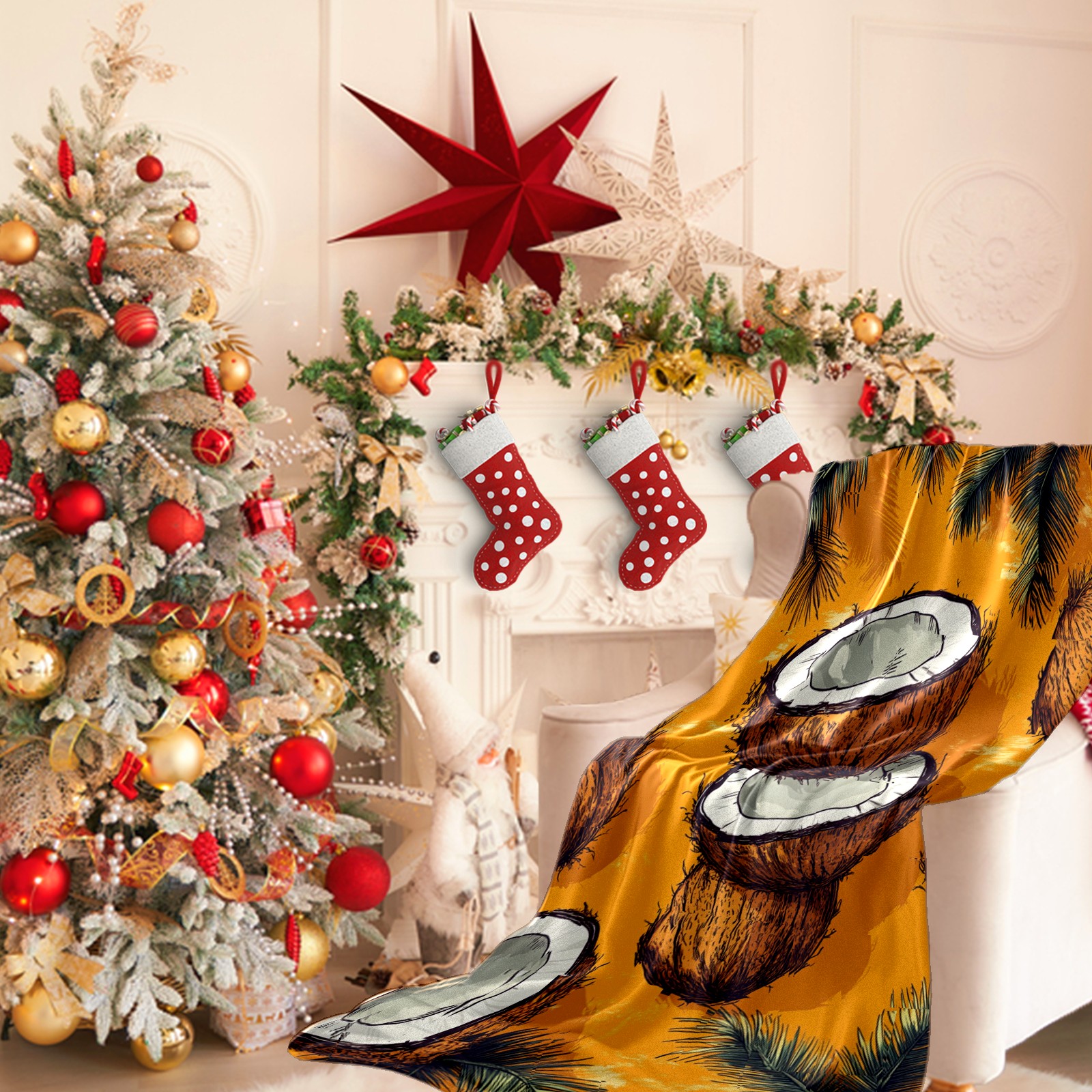 Премиальная фланелевая одеяло Retro Coconut Pattern