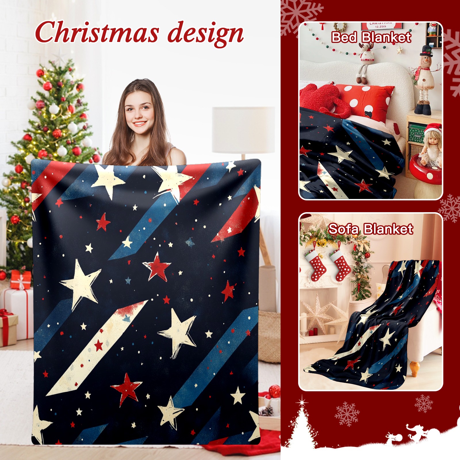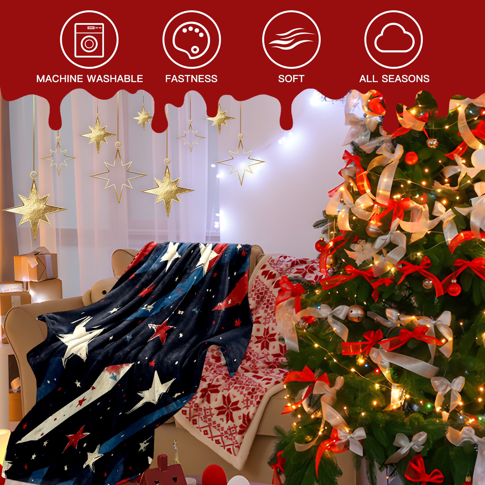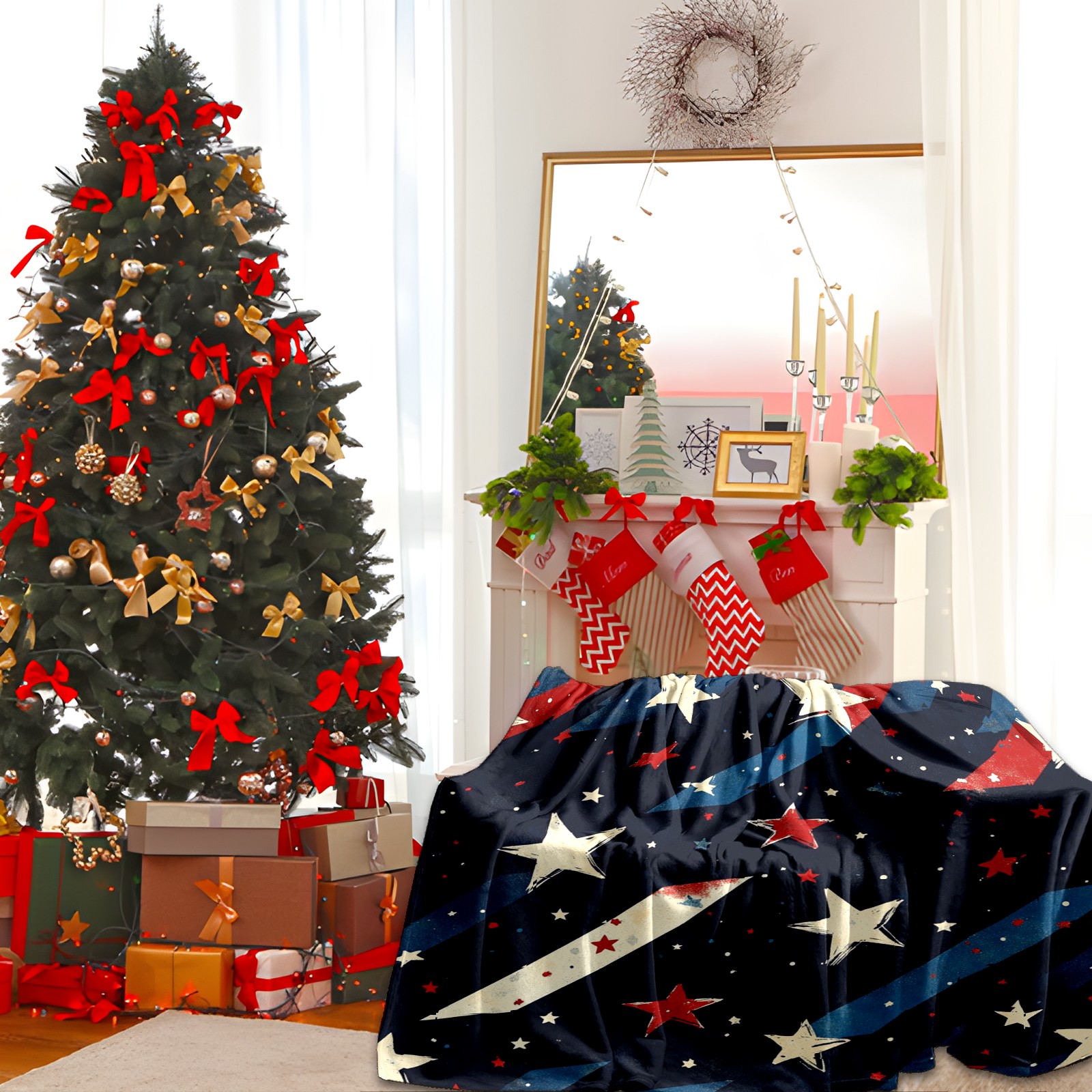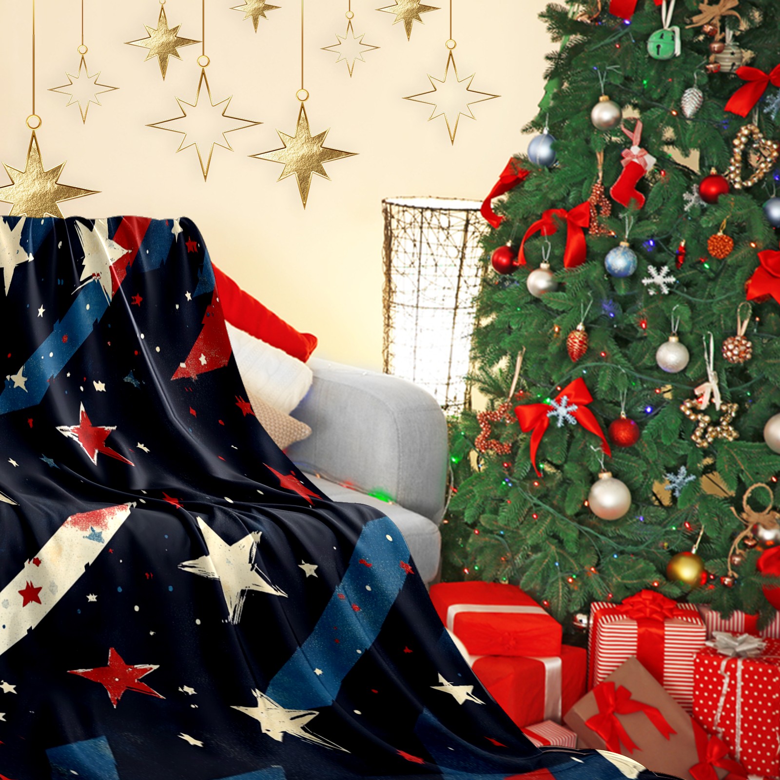 Премиальная фланелевая одеяло Dark Blue Star Pattern