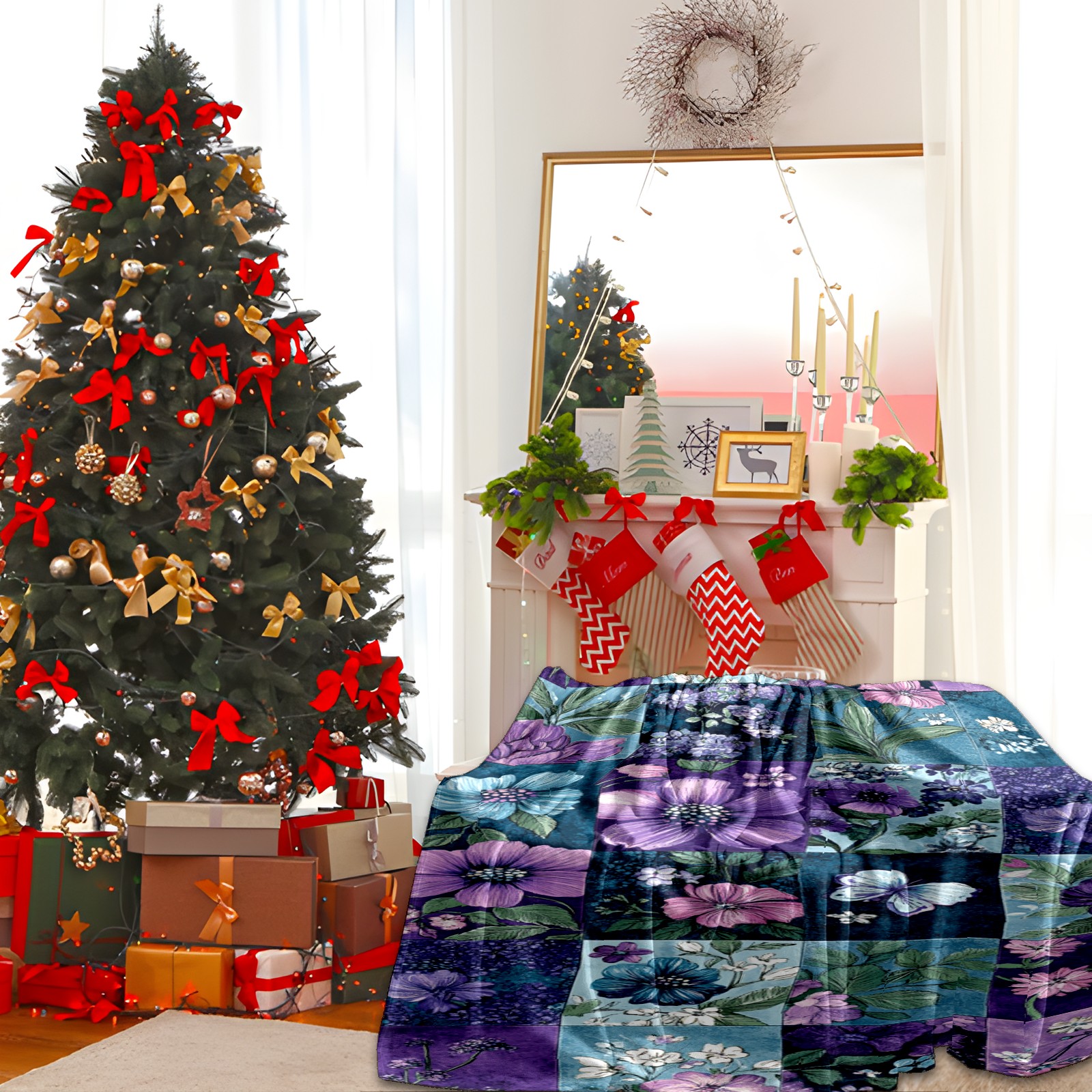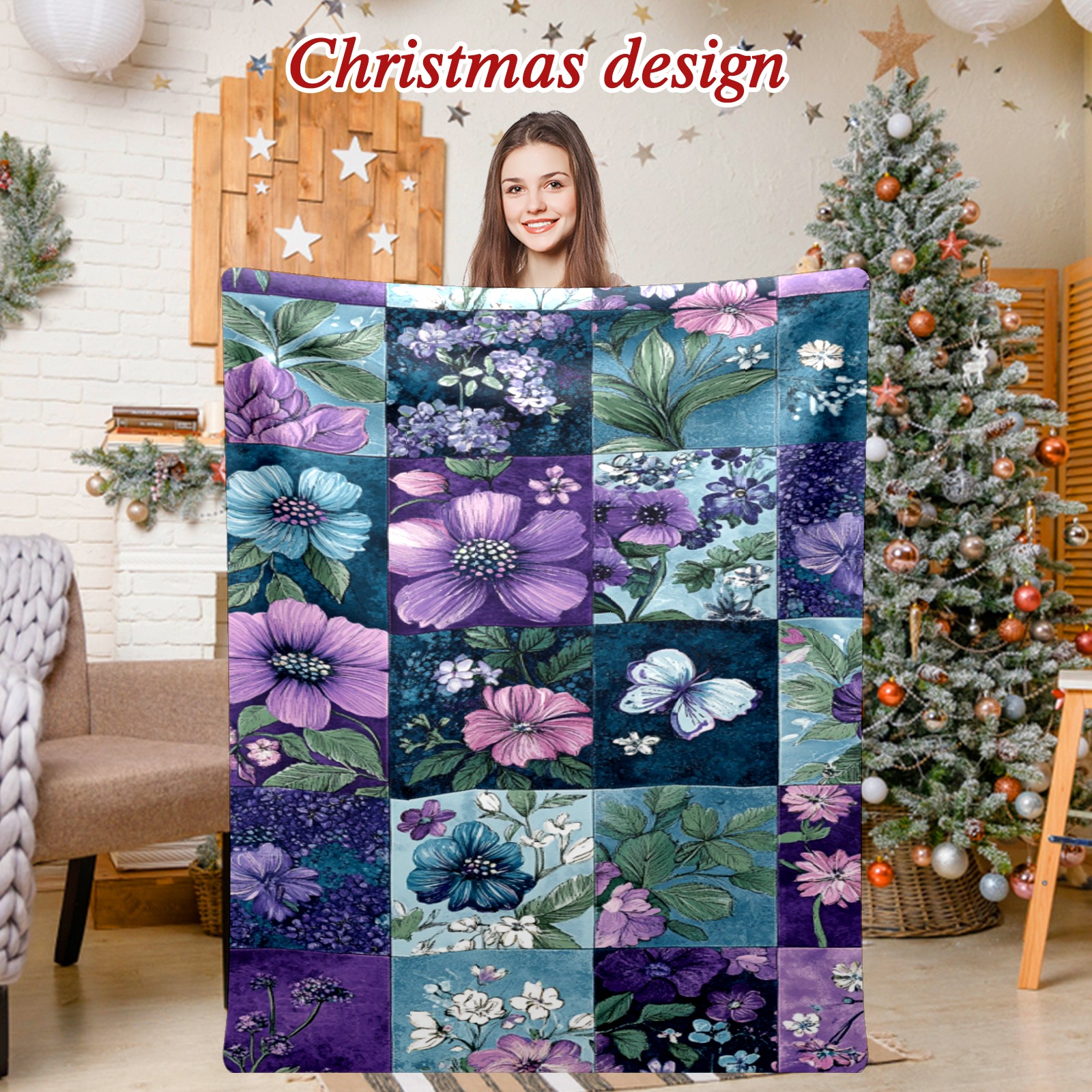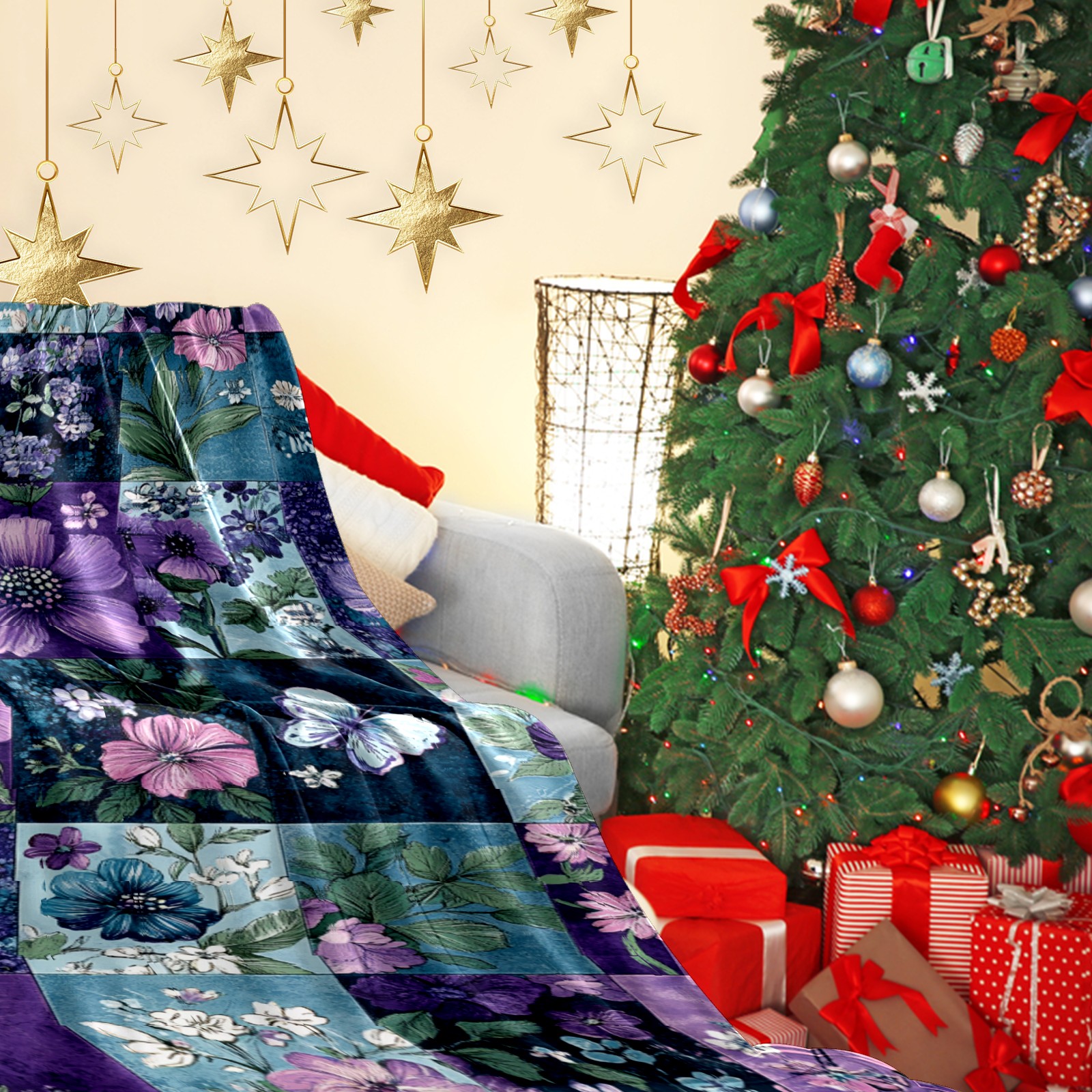 Премиальная фланелевая одеяло Checkered Floral Pattern