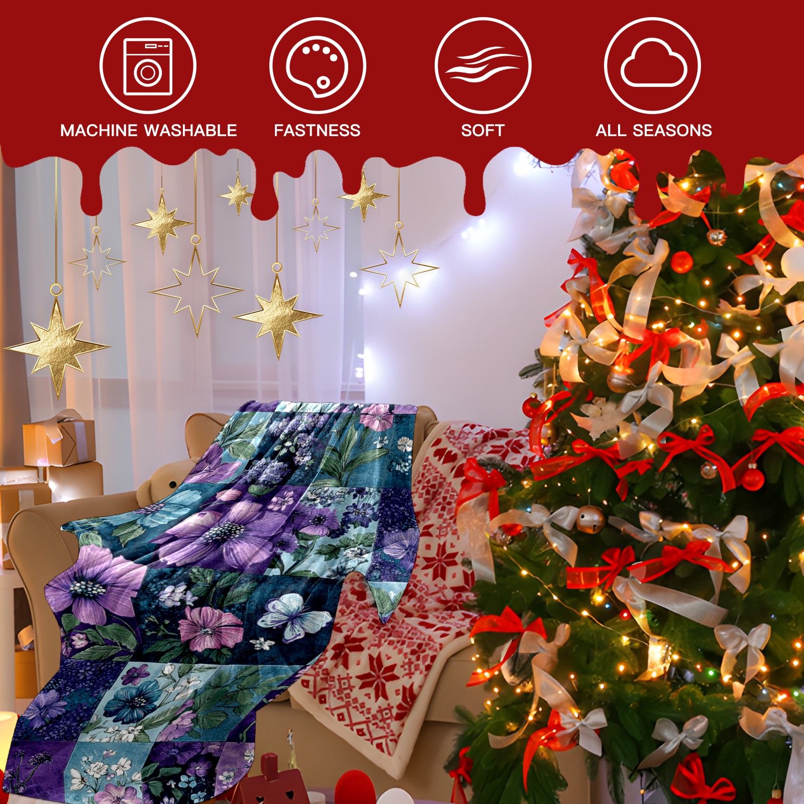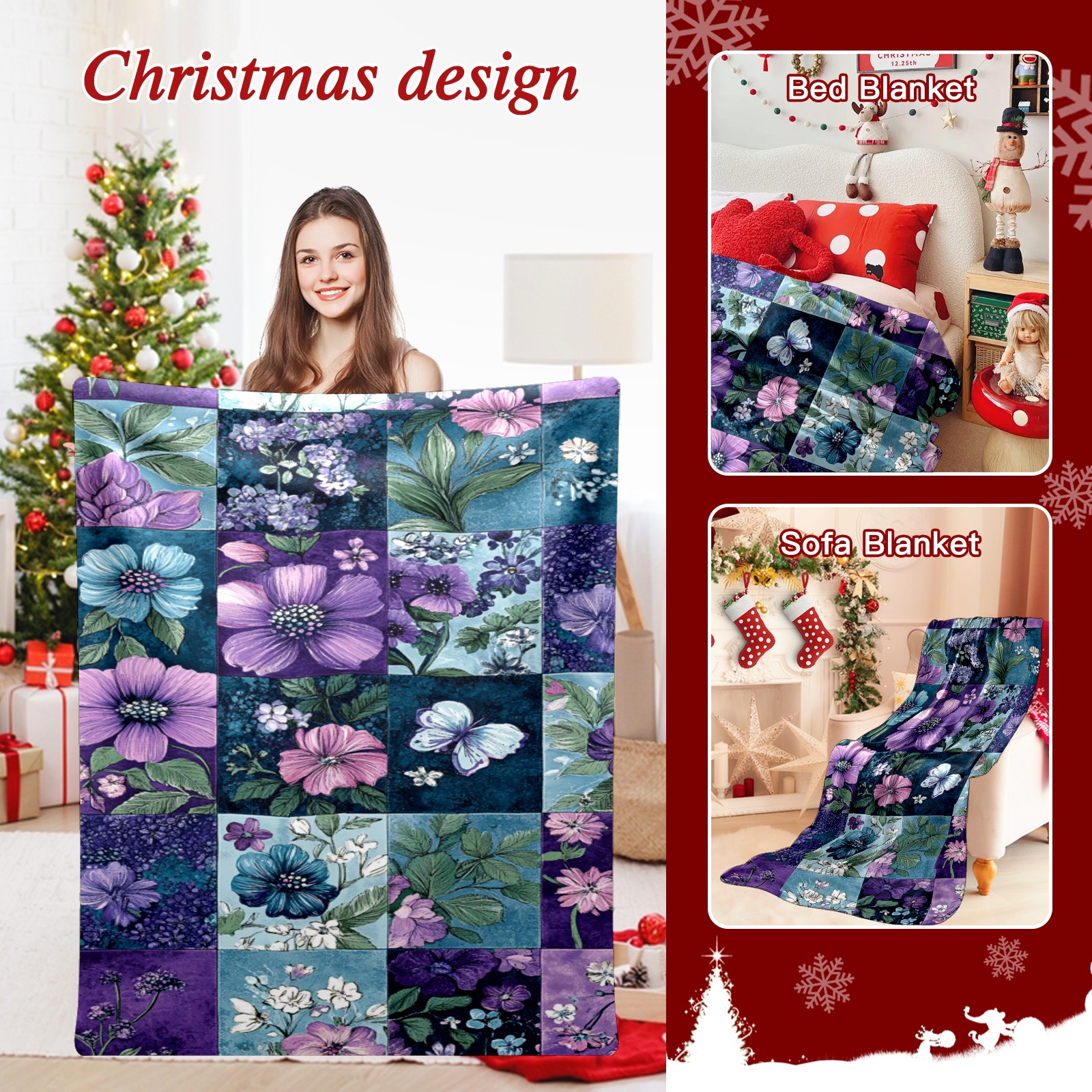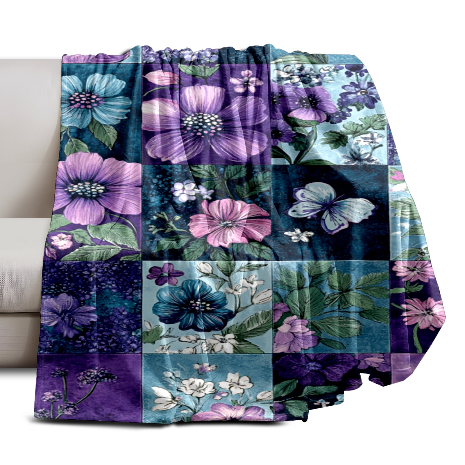 Премиальная фланелевая одеяло Checkered Floral Pattern
