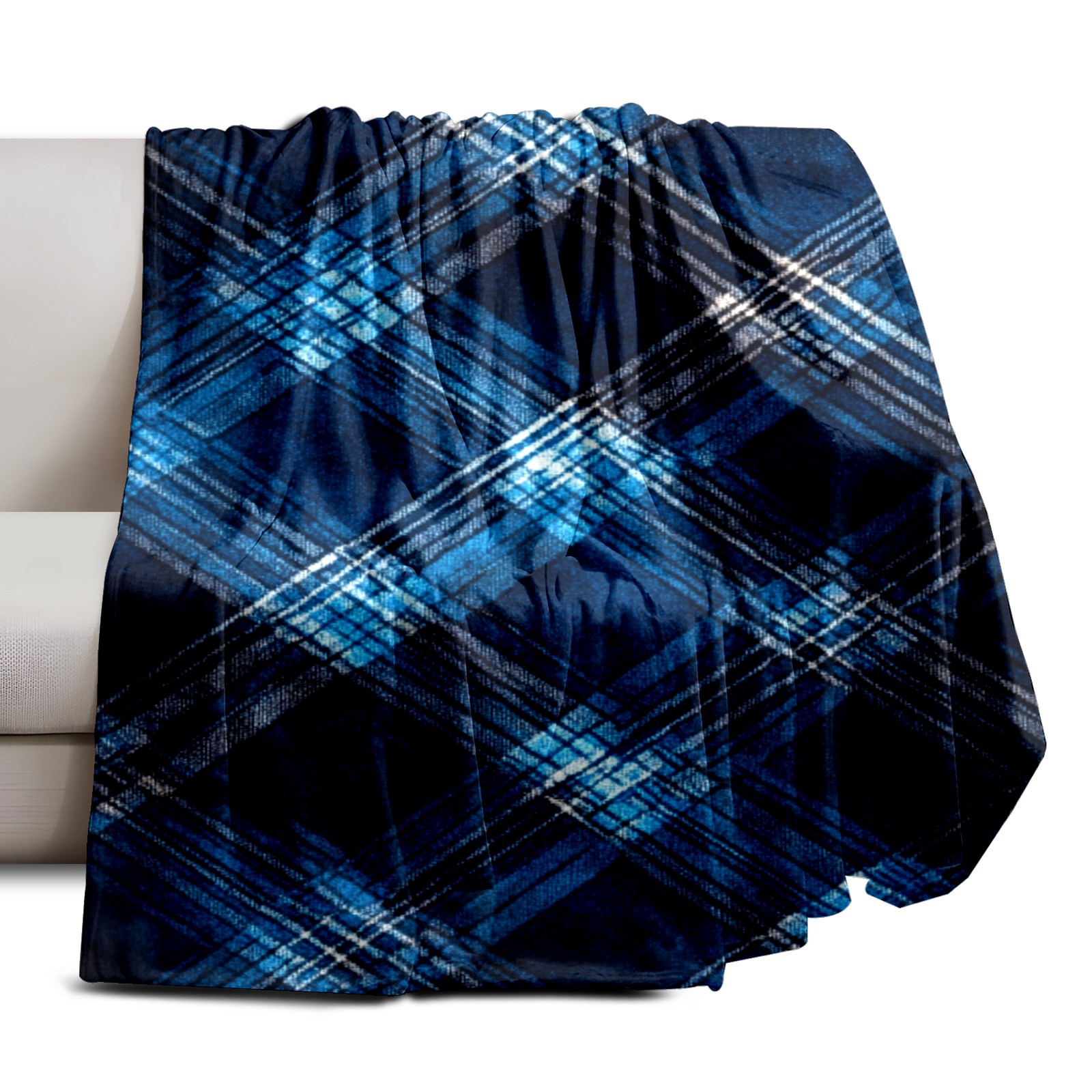 Премиальная фланелевая одеяло Dark Blue Plaid Pattern