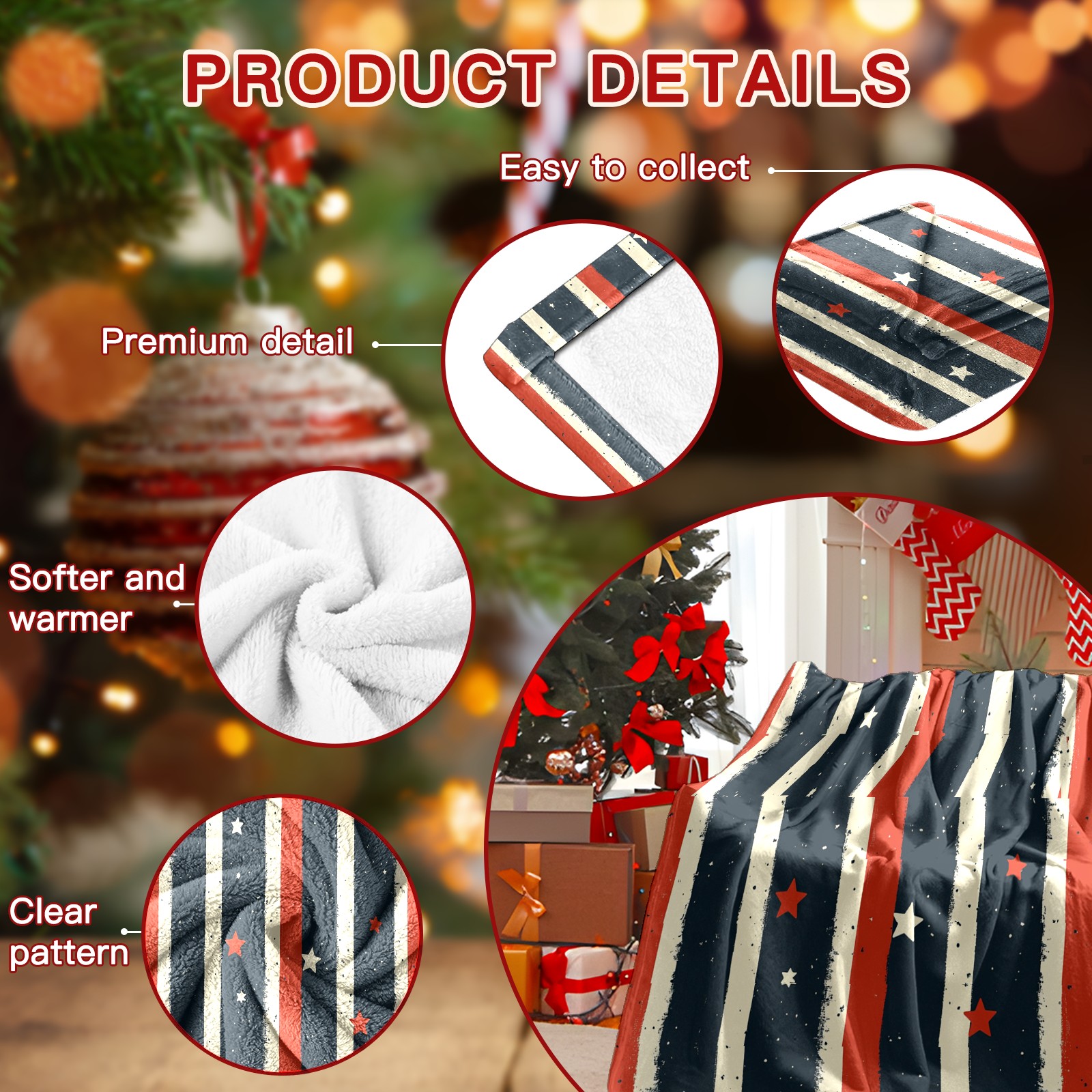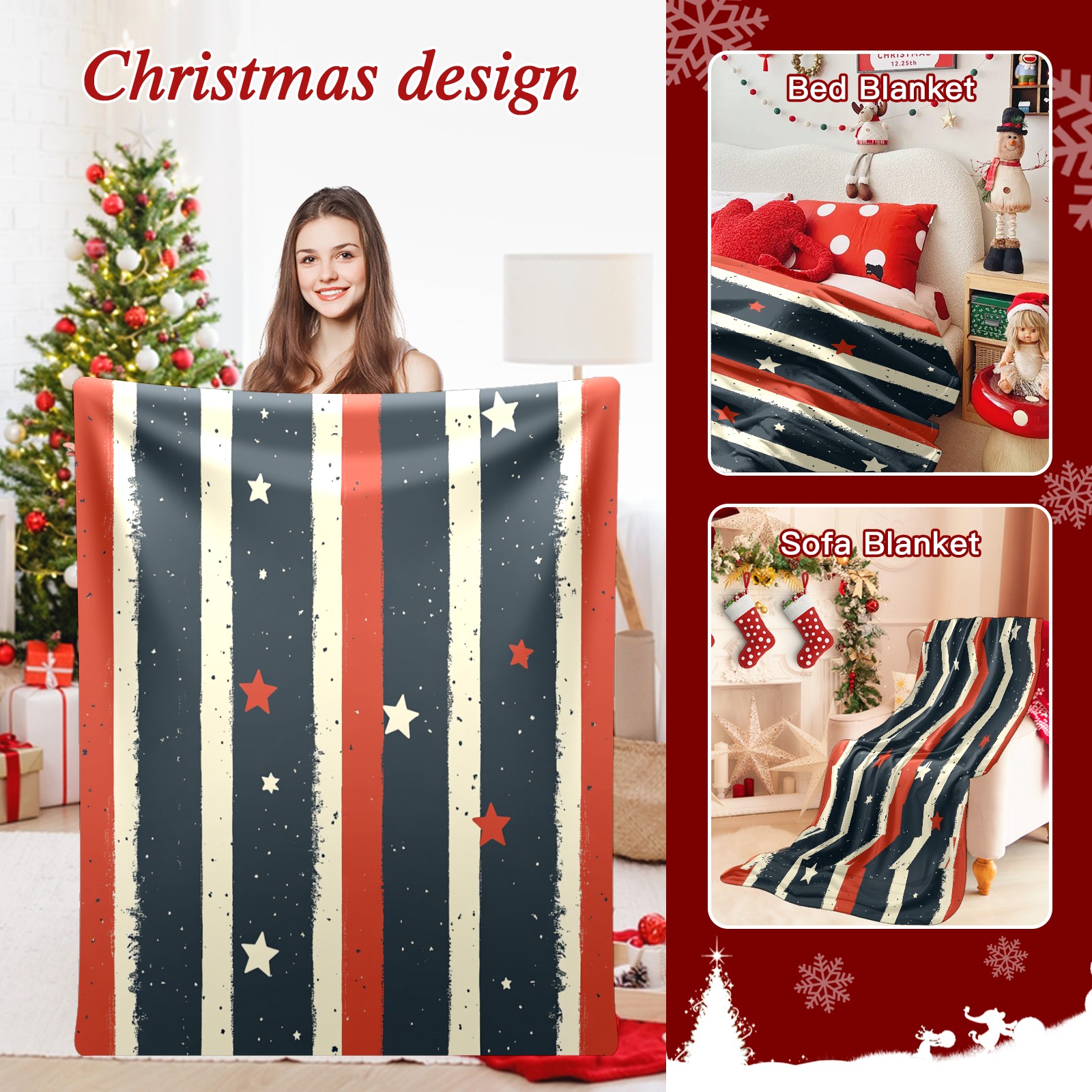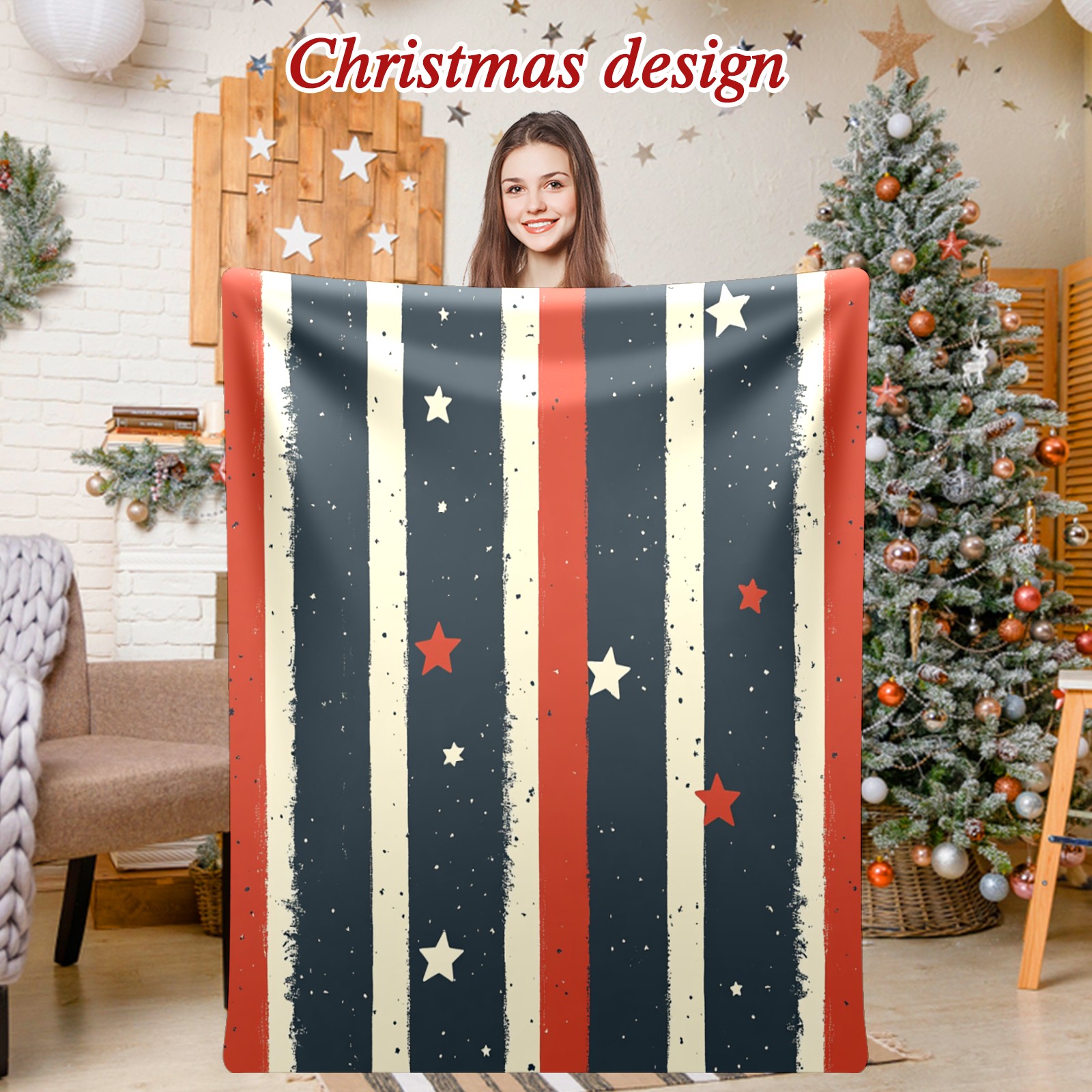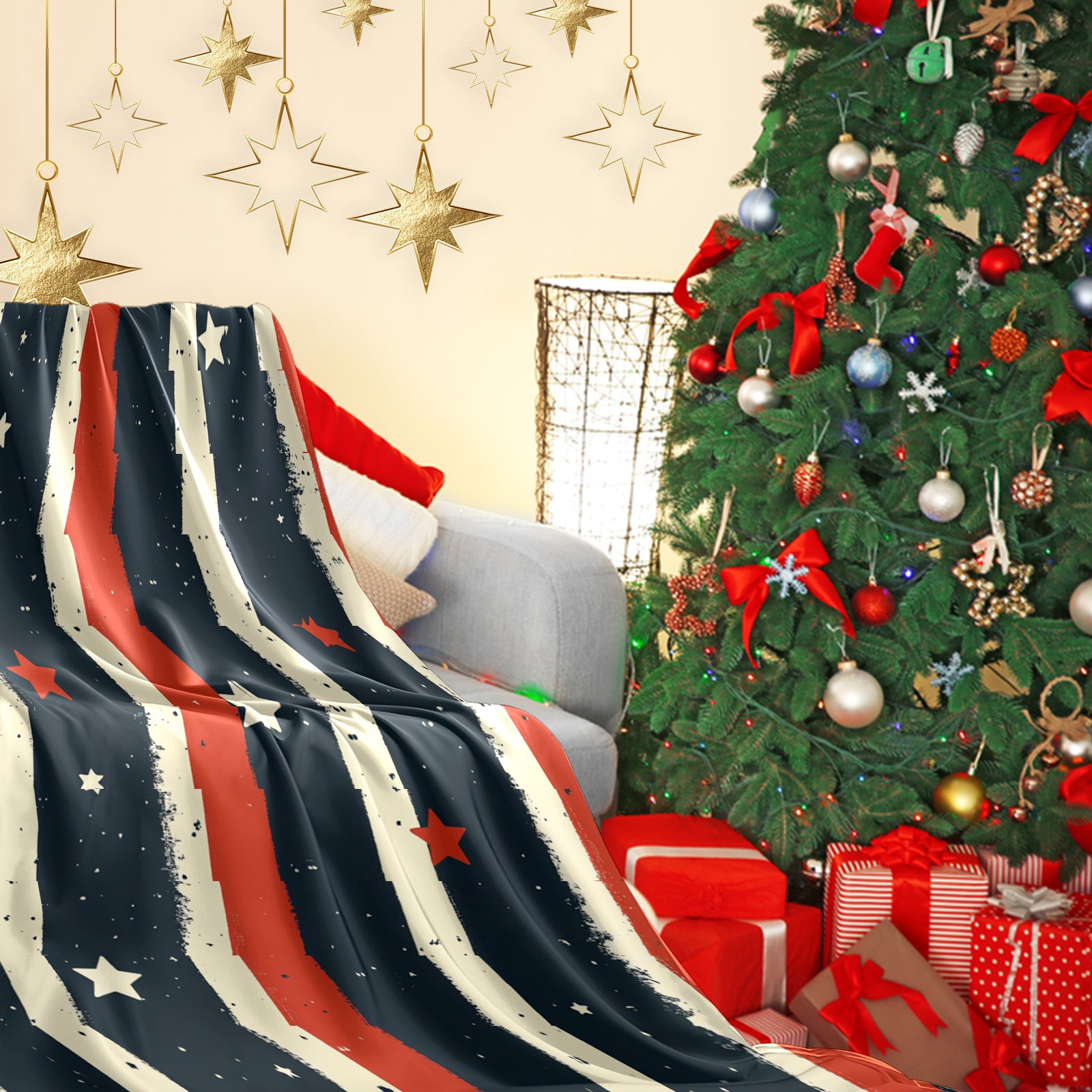 Премиальная фланелевая одеяло Star Stripe Pattern
