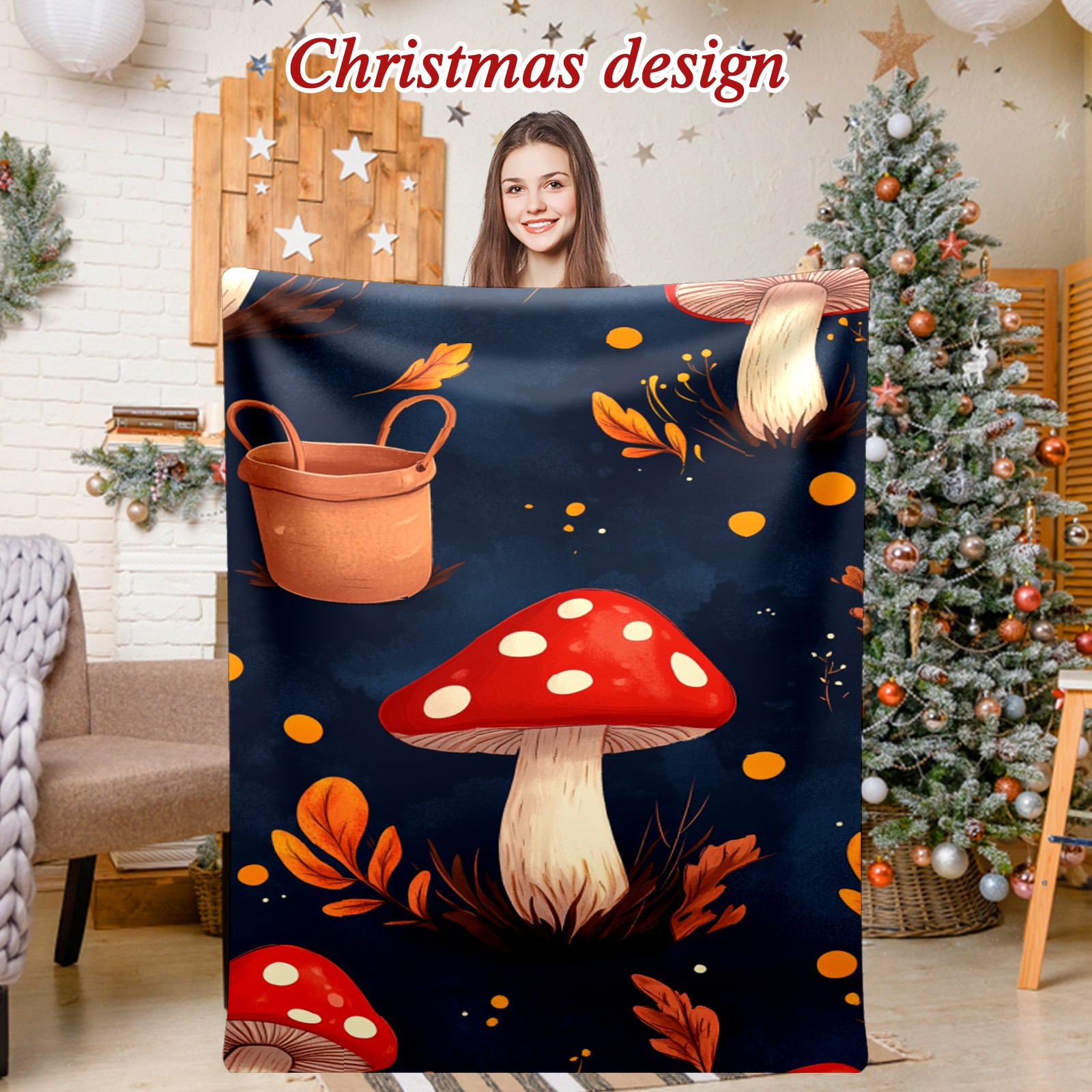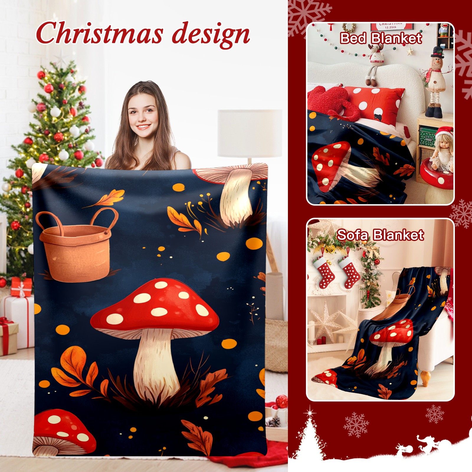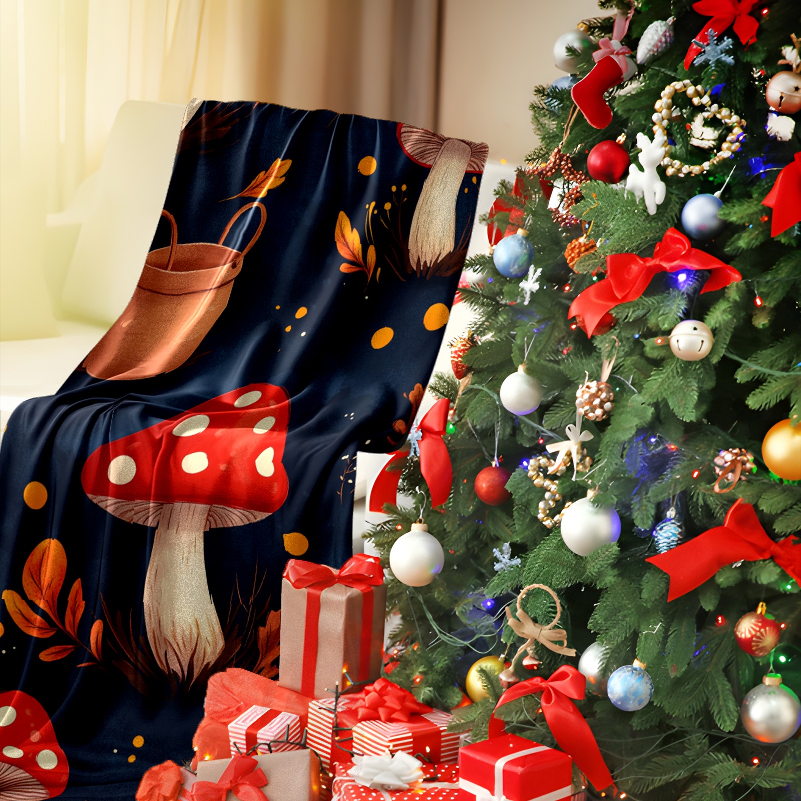 Премиальная фланелевая одеяло Red Mushroom Pattern