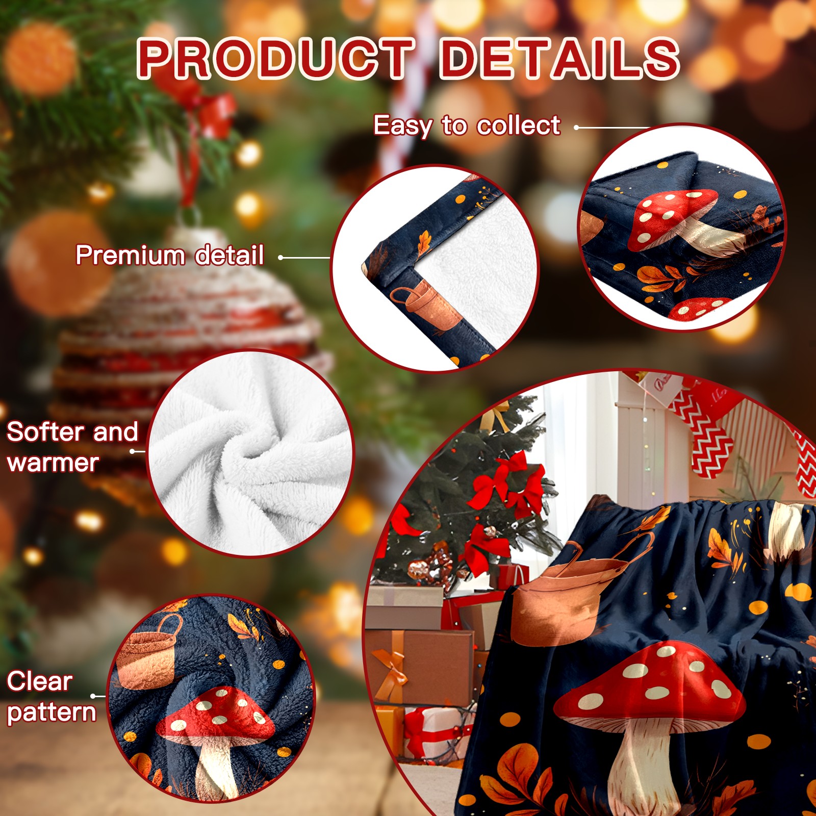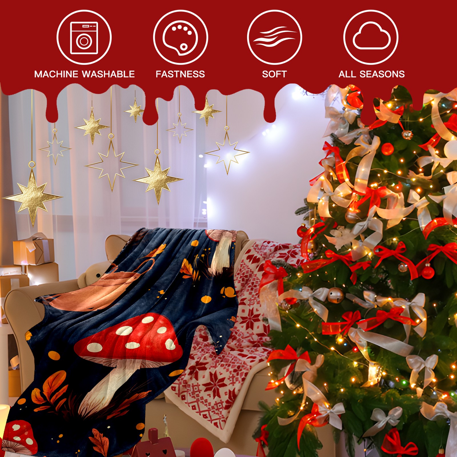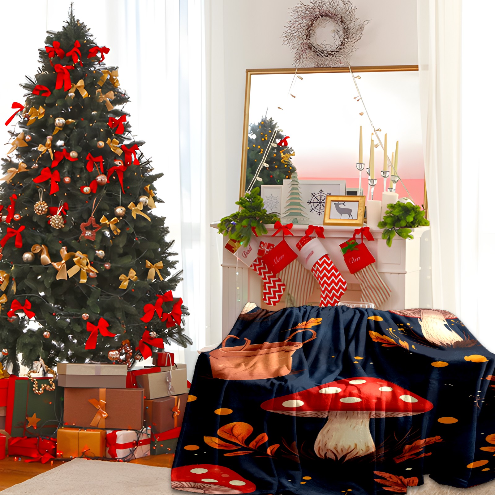 Премиальная фланелевая одеяло Red Mushroom Pattern