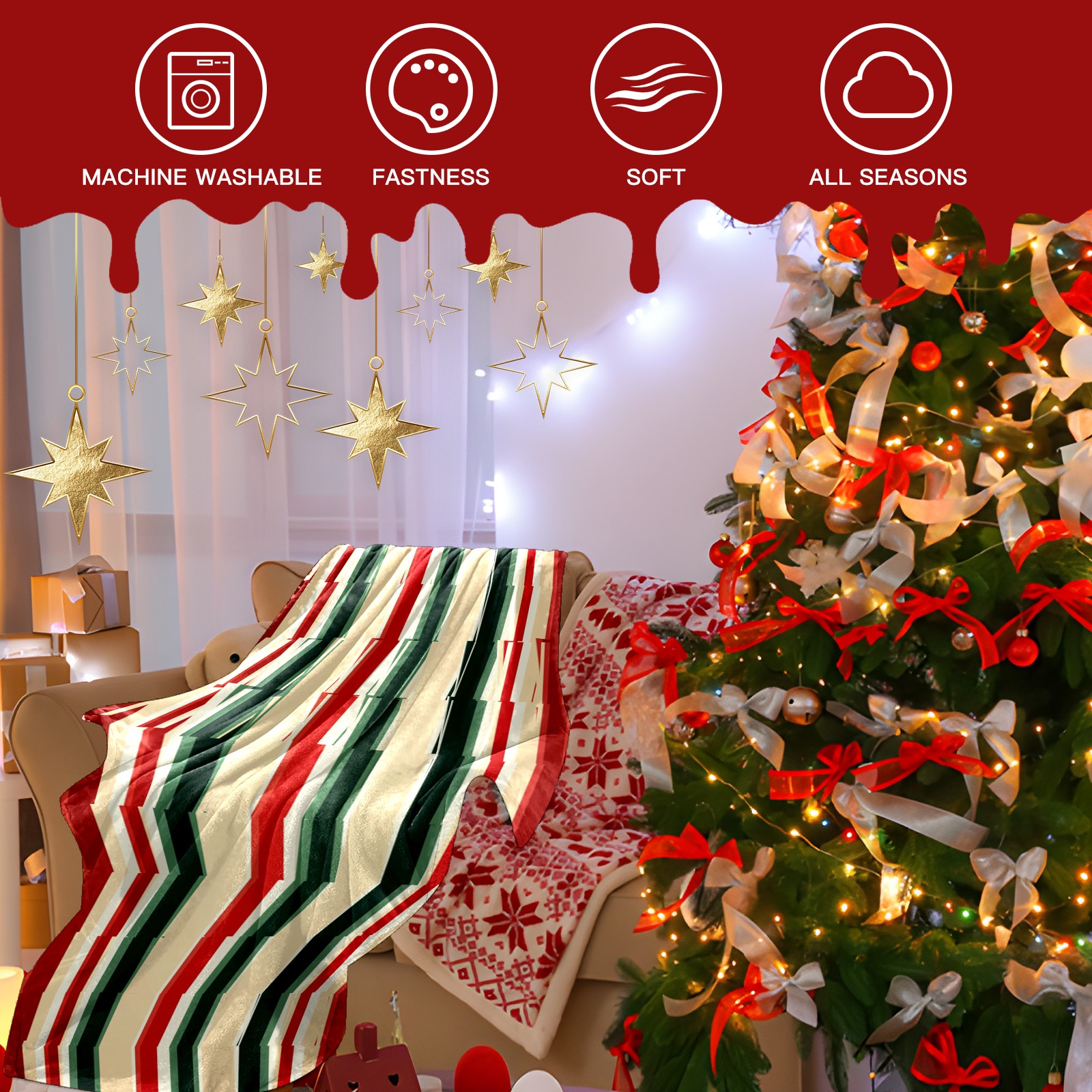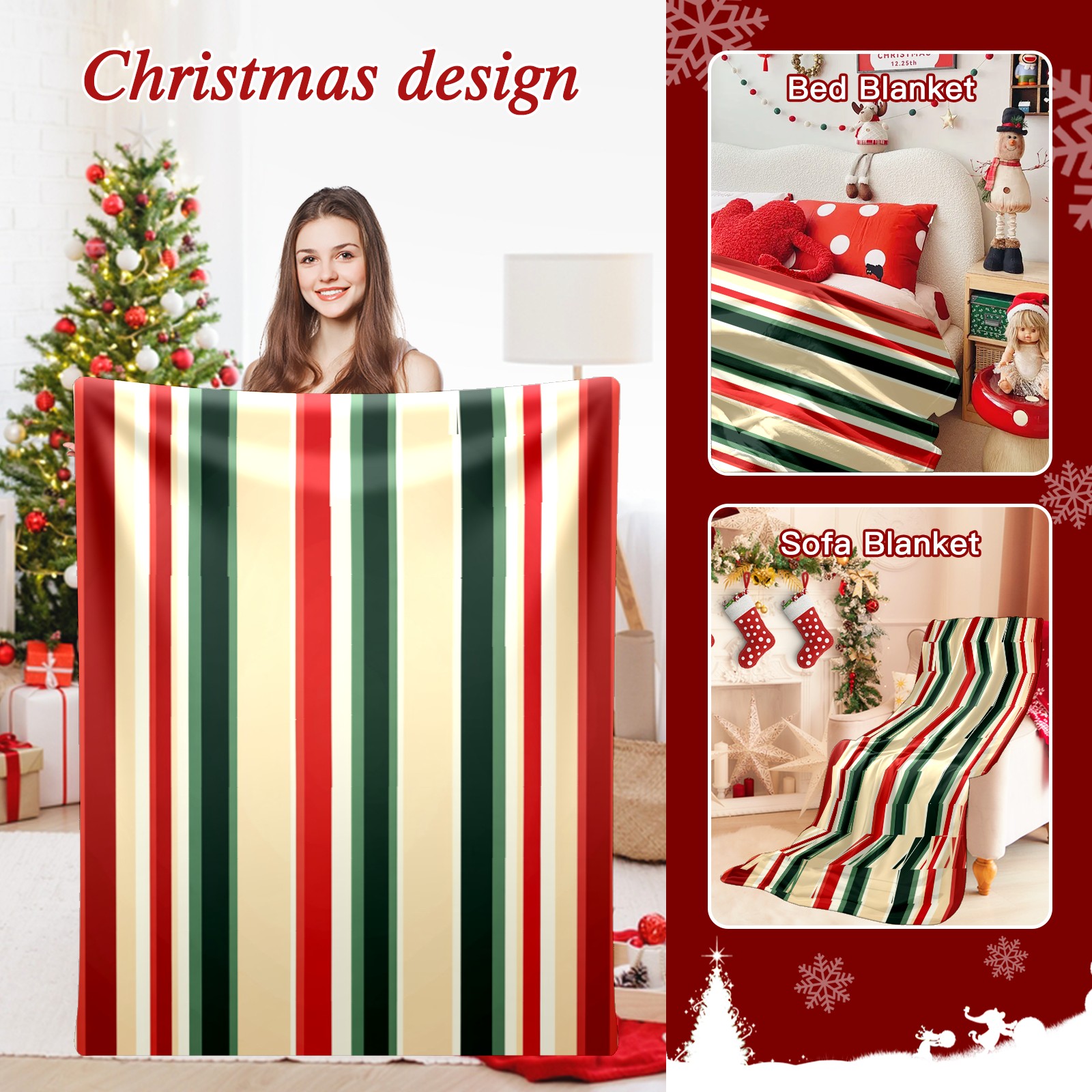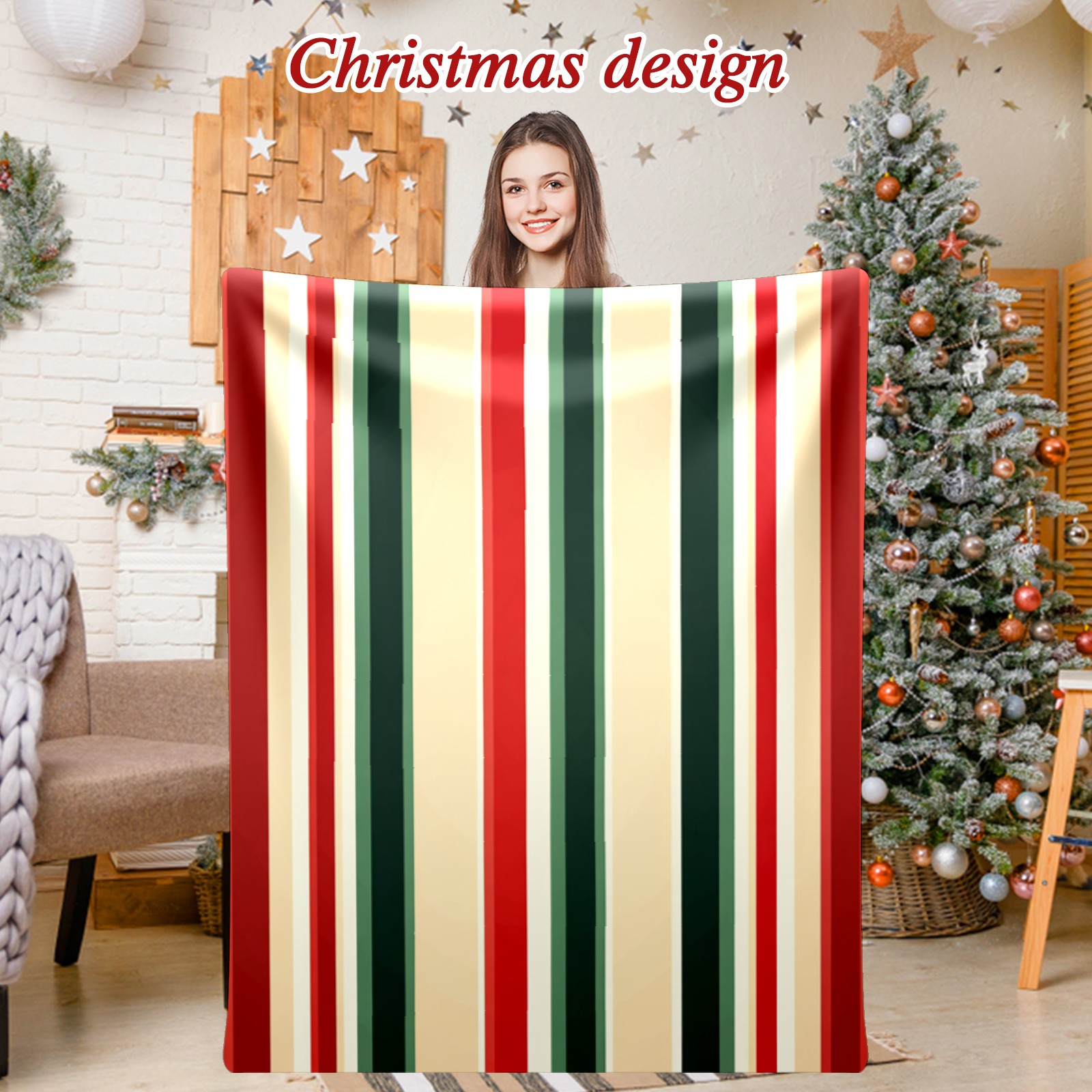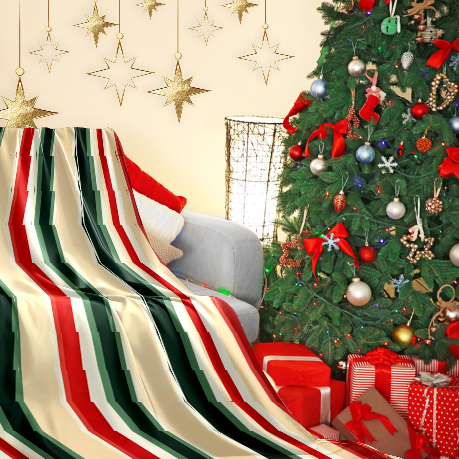 Премиальная фланелевая одеяло Red Green Striped Pattern
