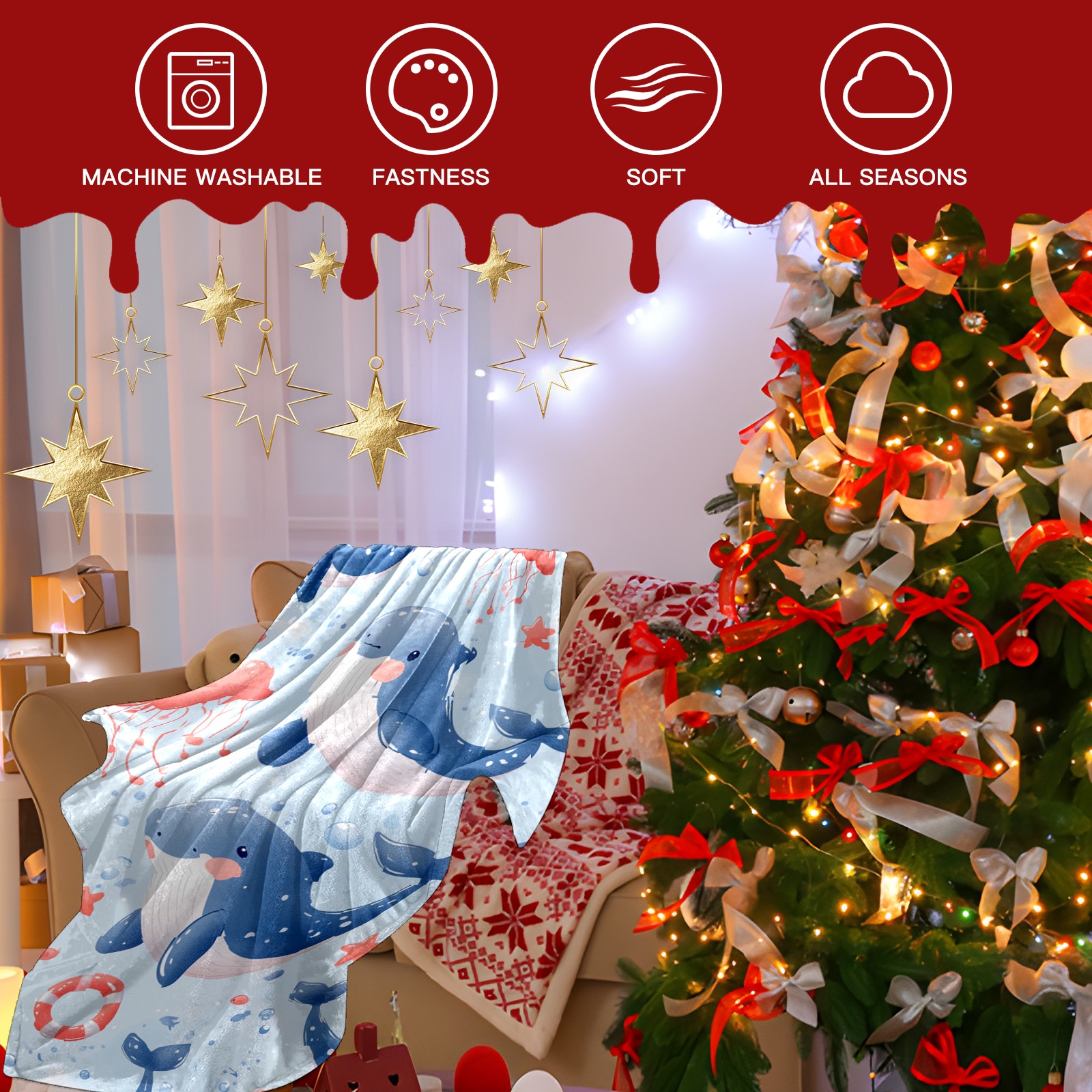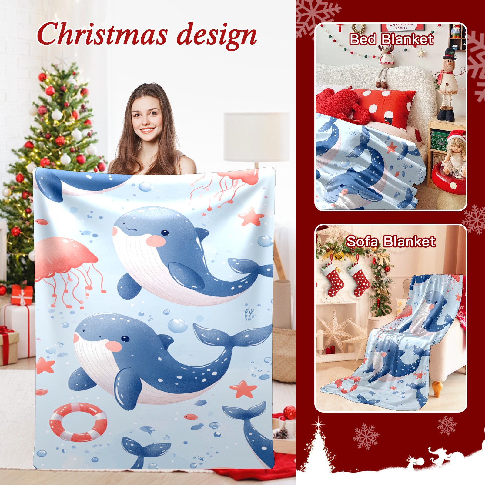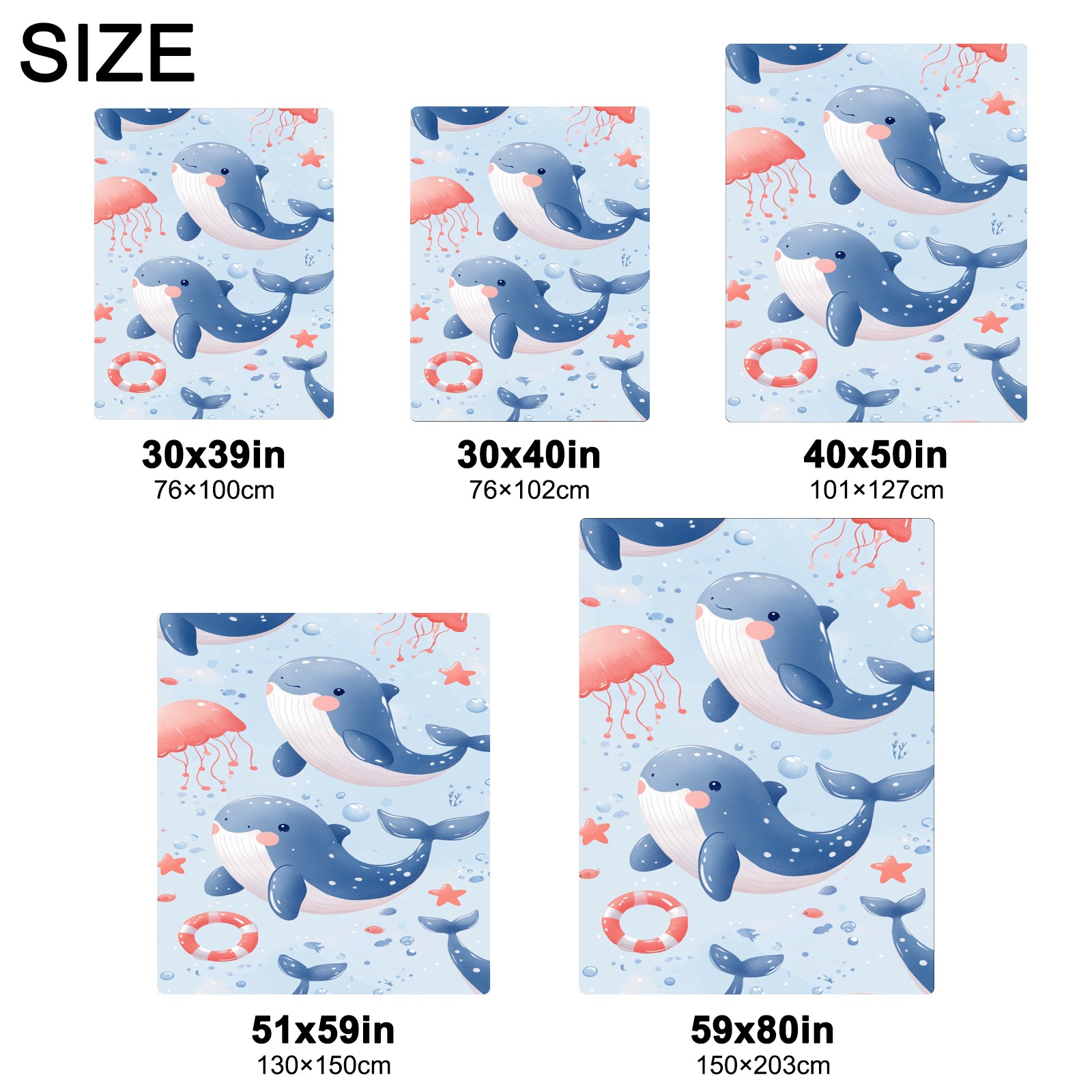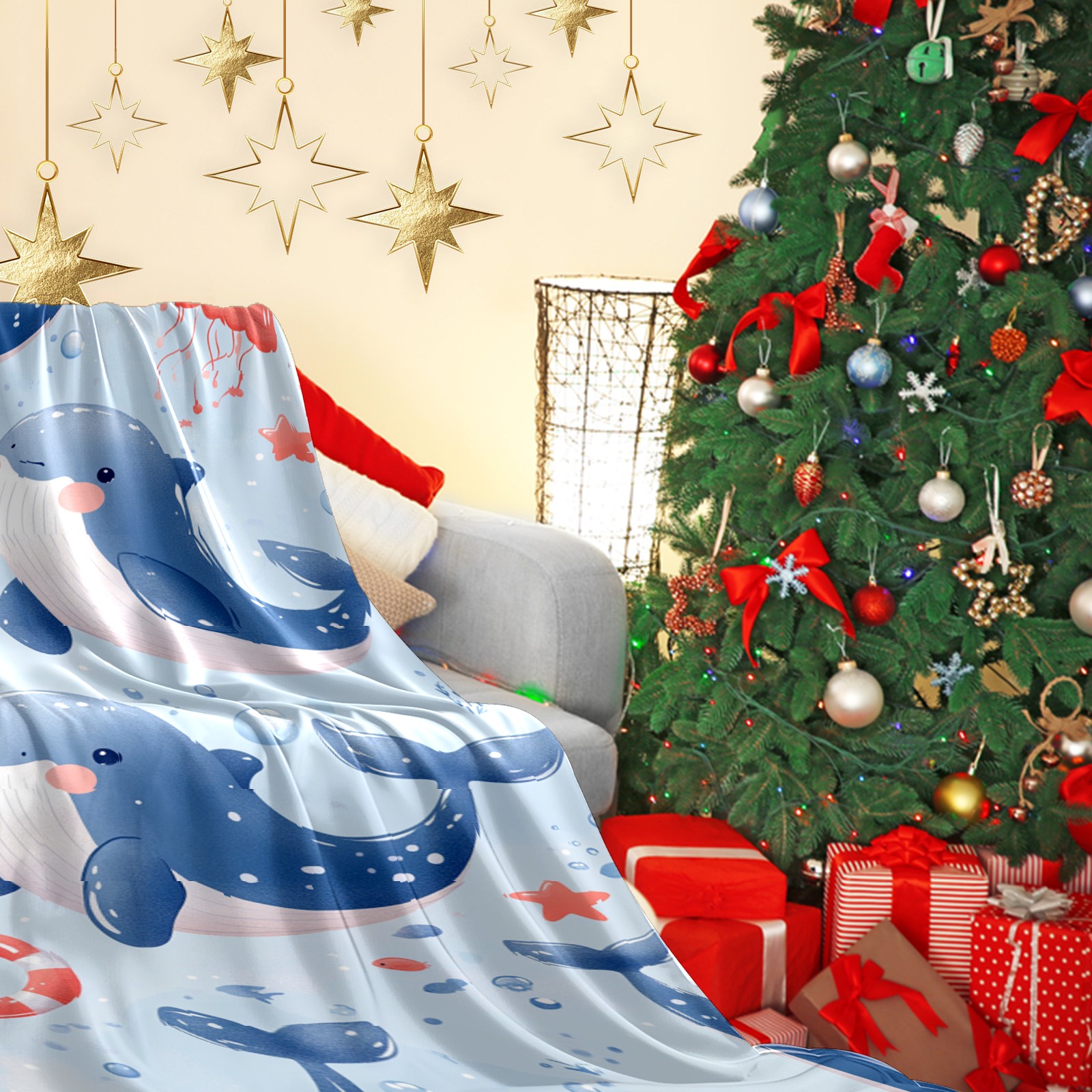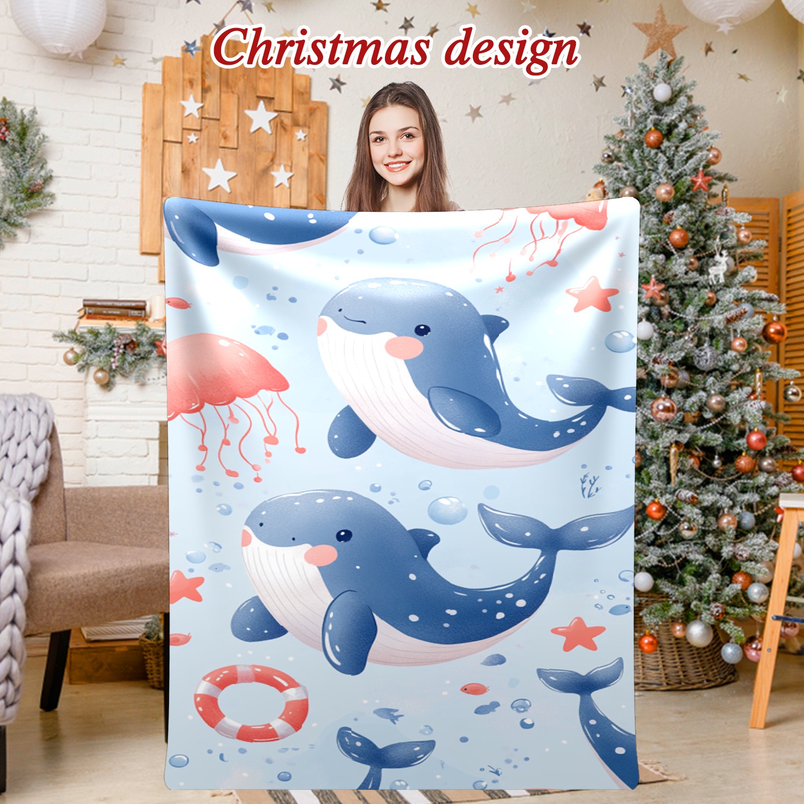 Премиальная фланелевая одеяло Cartoon Whale Pattern