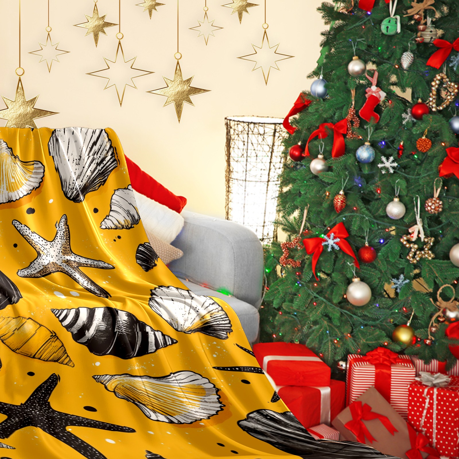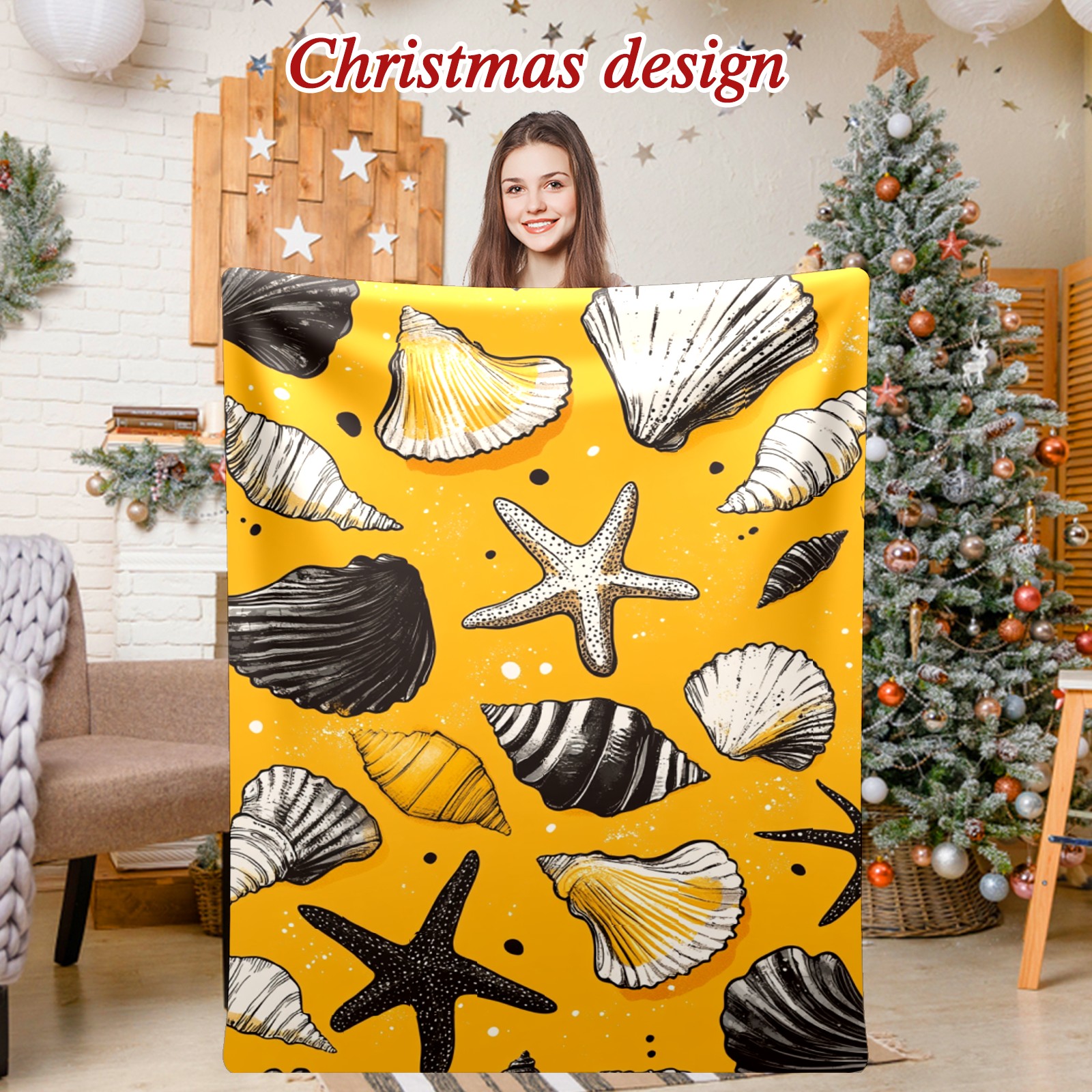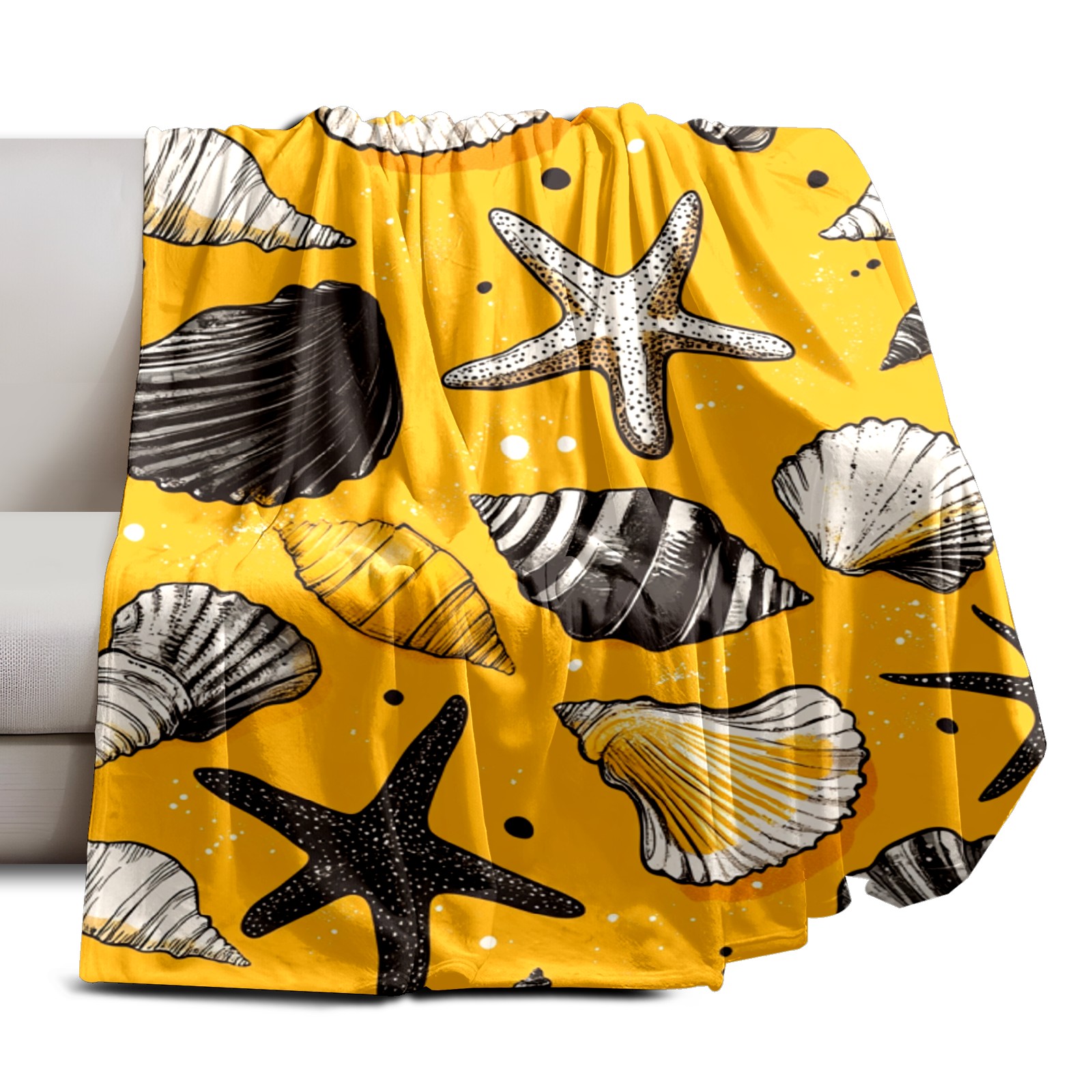Премиальная фланелевая одеяло Yellow Seashell Pattern