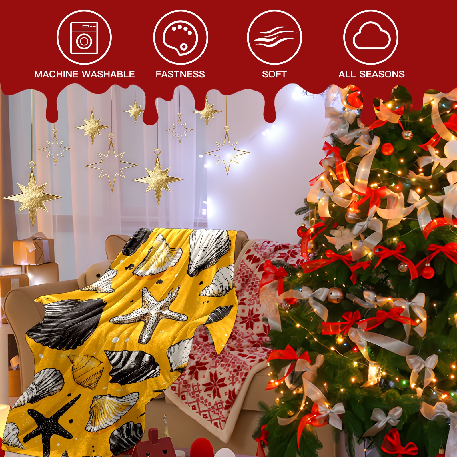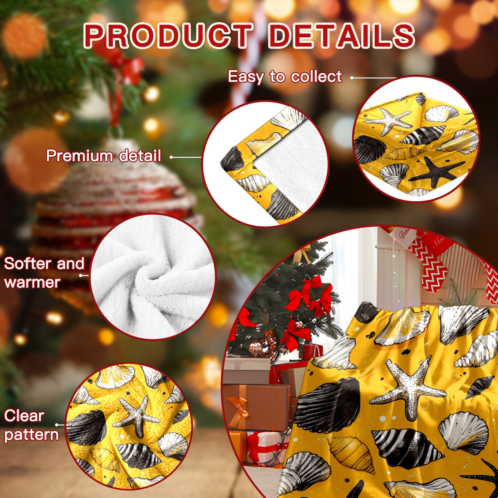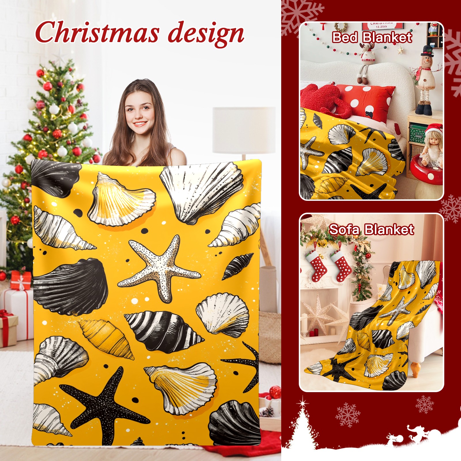Премиальная фланелевая одеяло Yellow Seashell Pattern