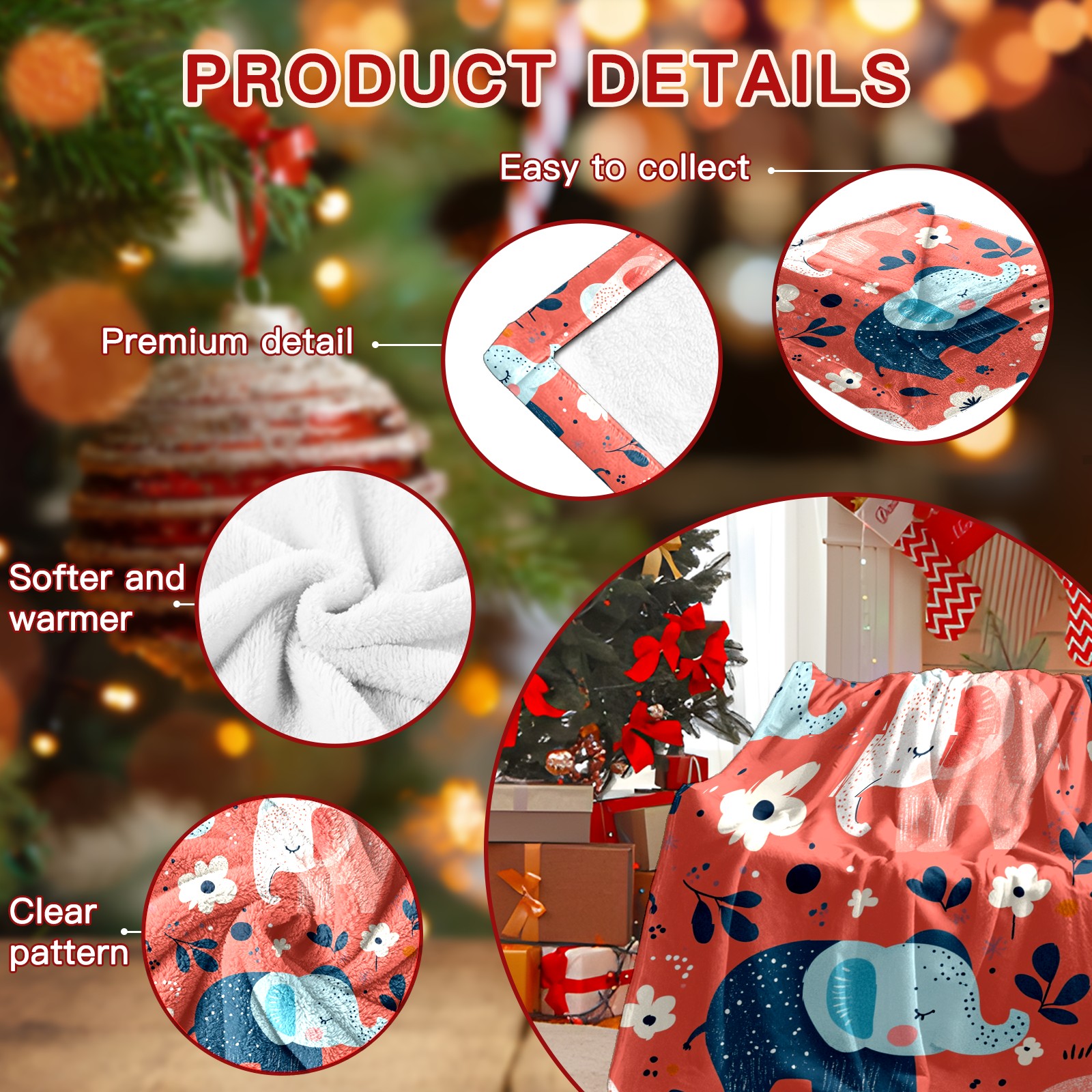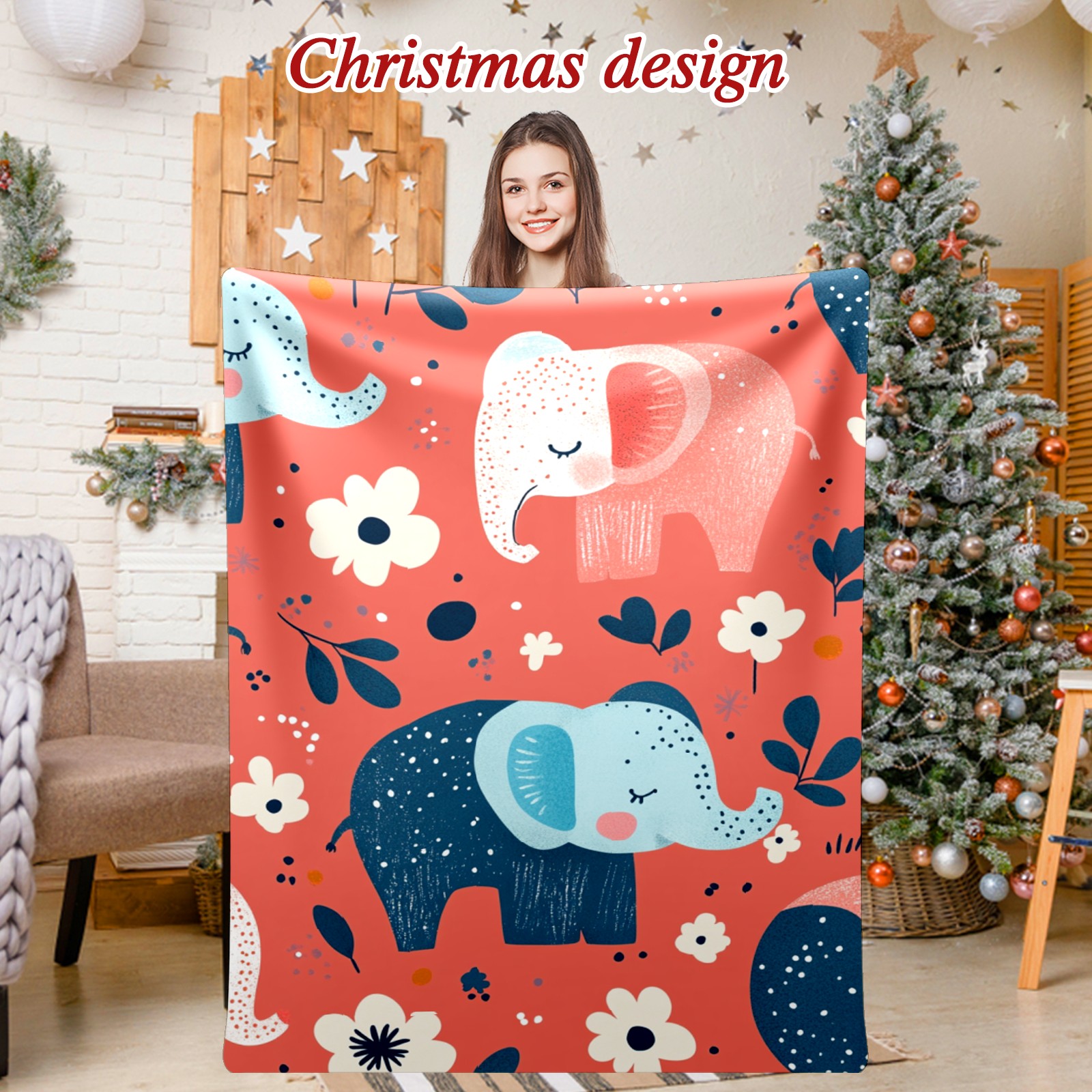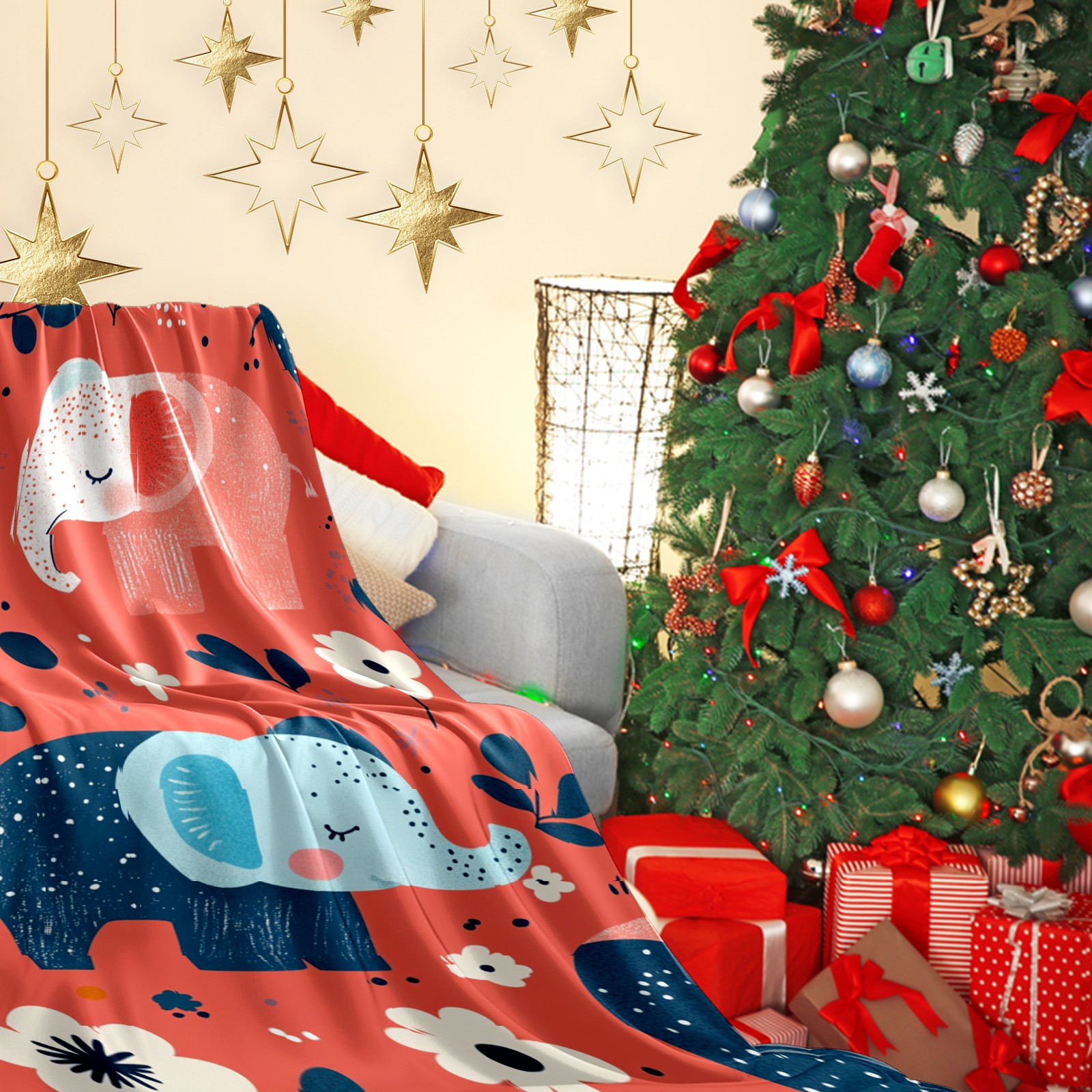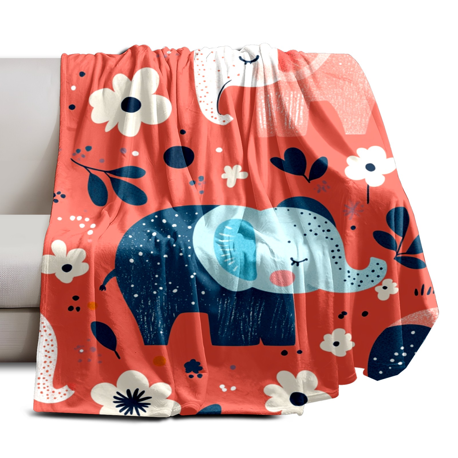 Премиальная фланелевая одеяло Cartoon Elephant Pattern