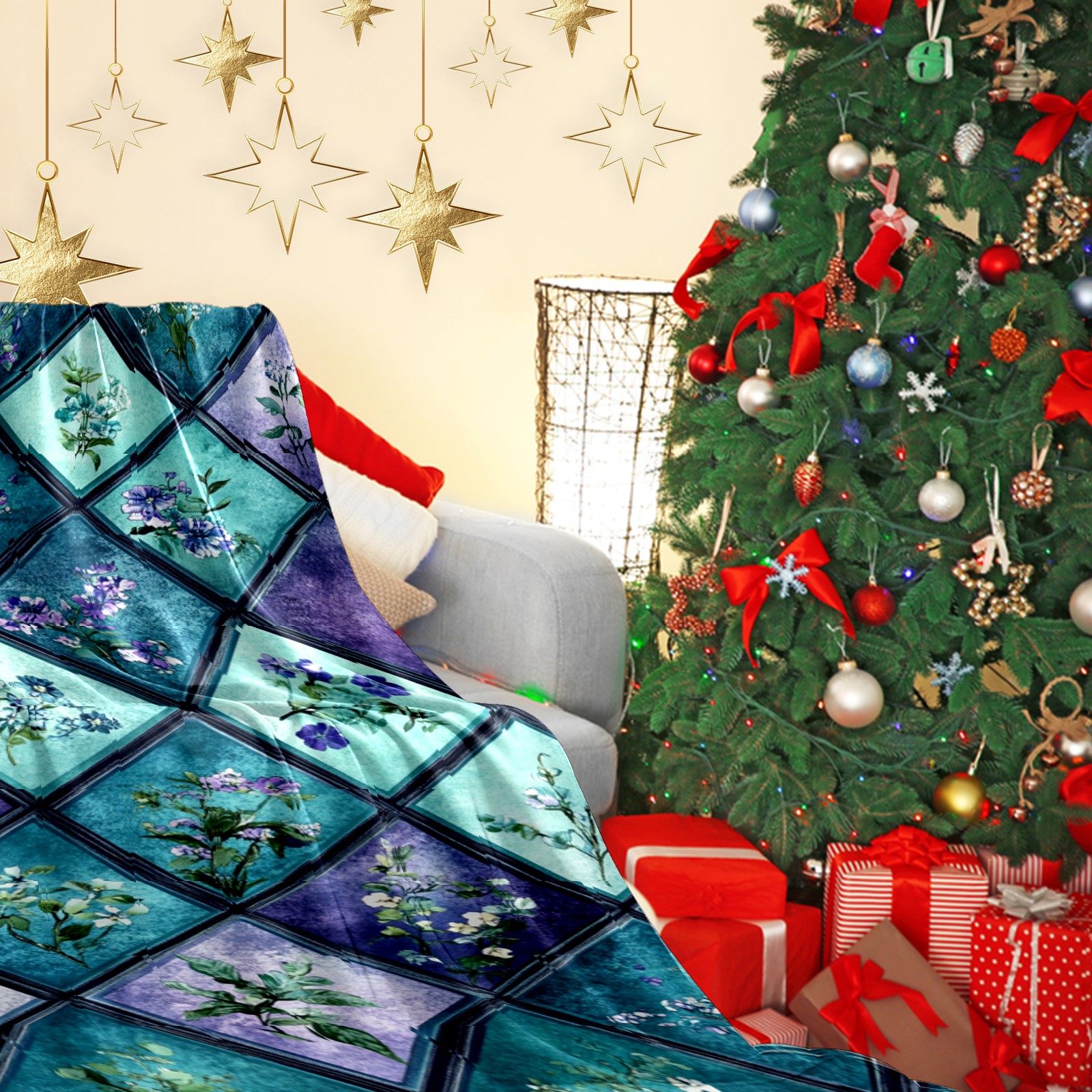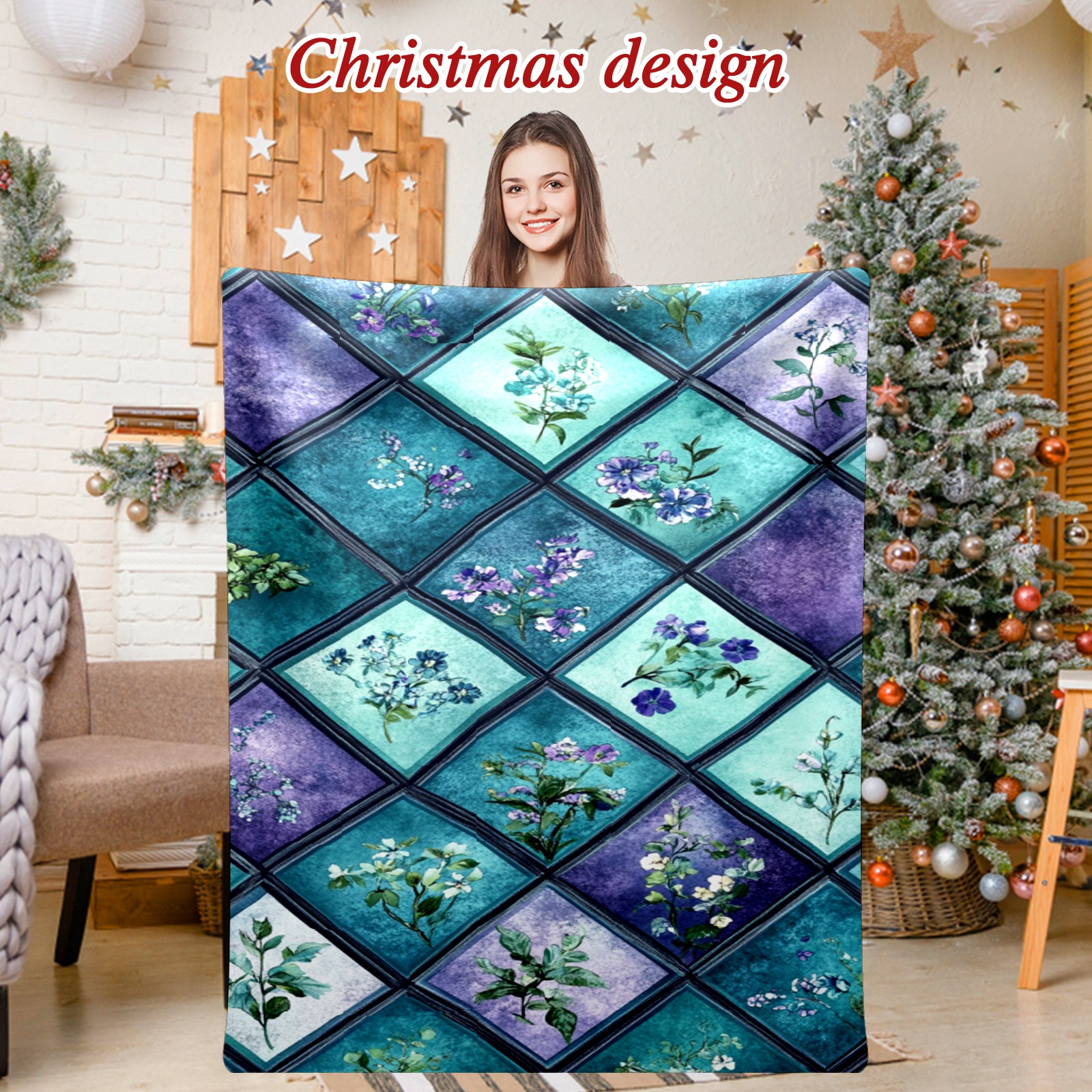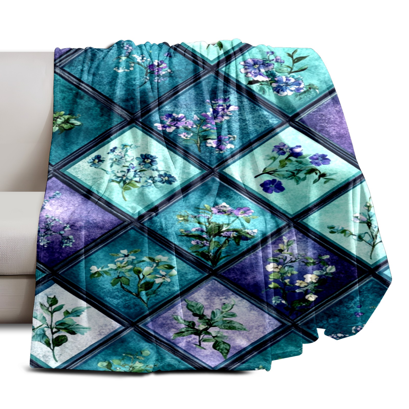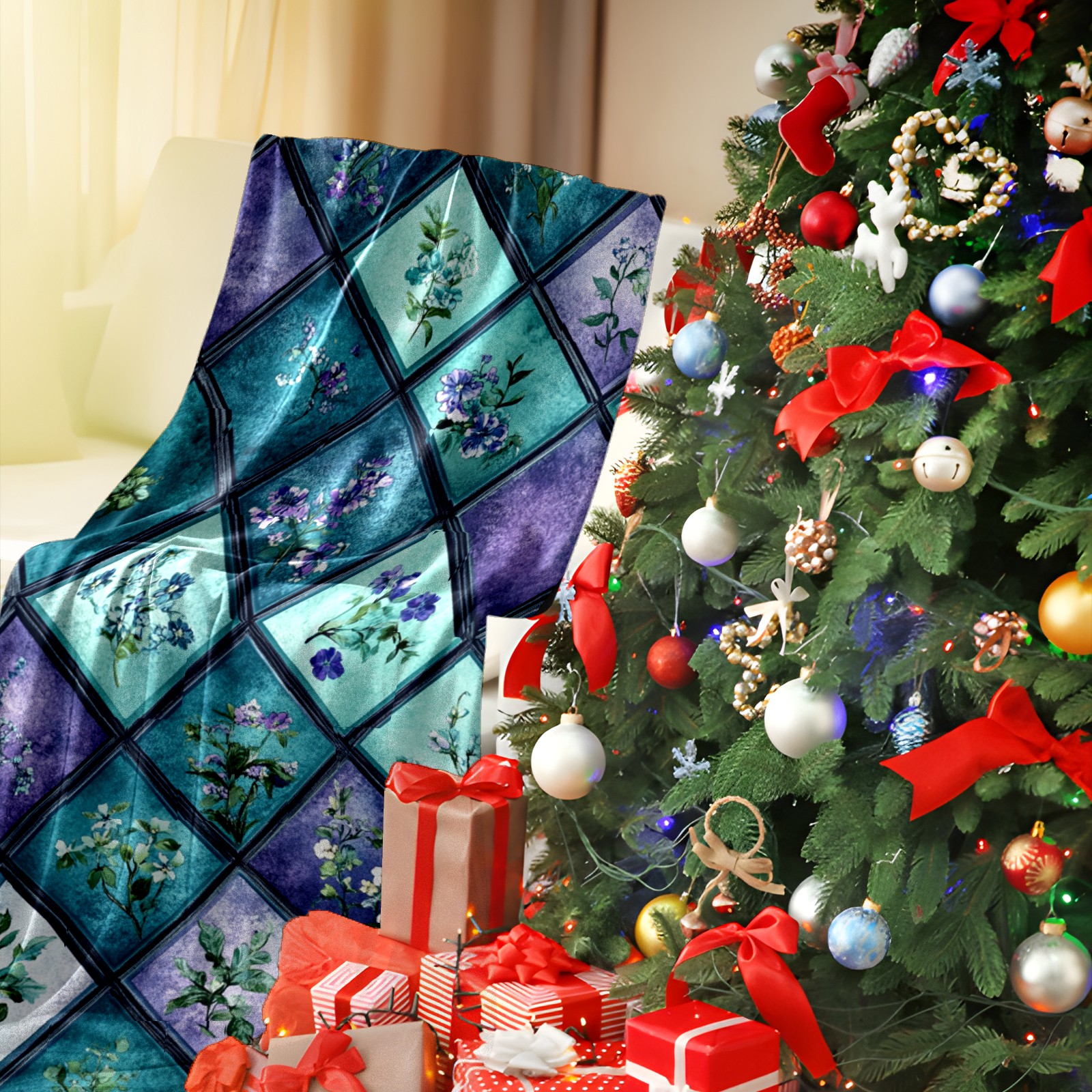 Премиальная фланелевая одеяло Checkered Floral Pattern