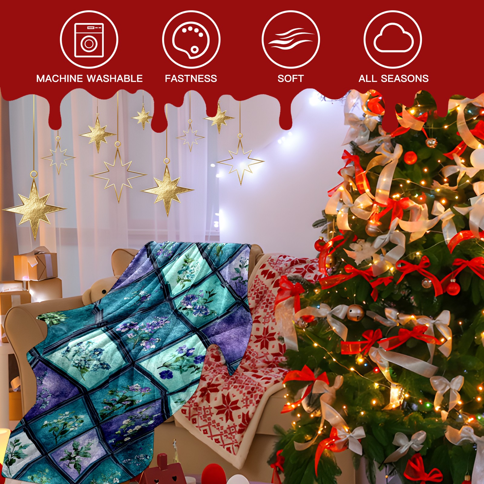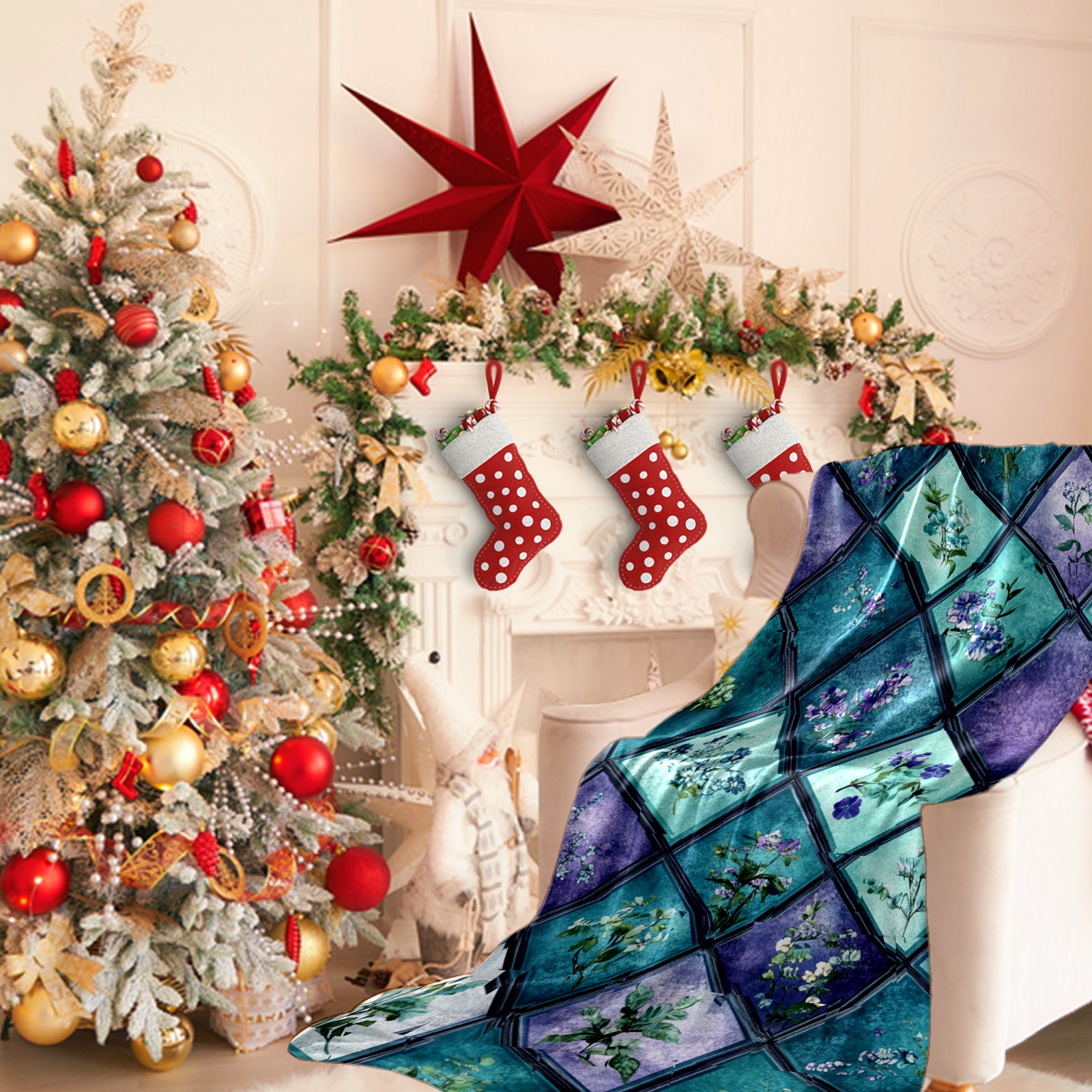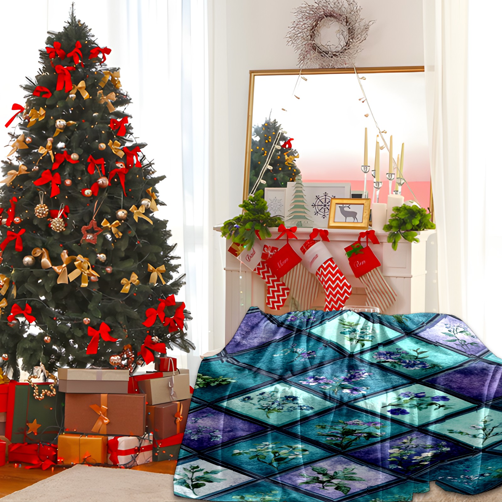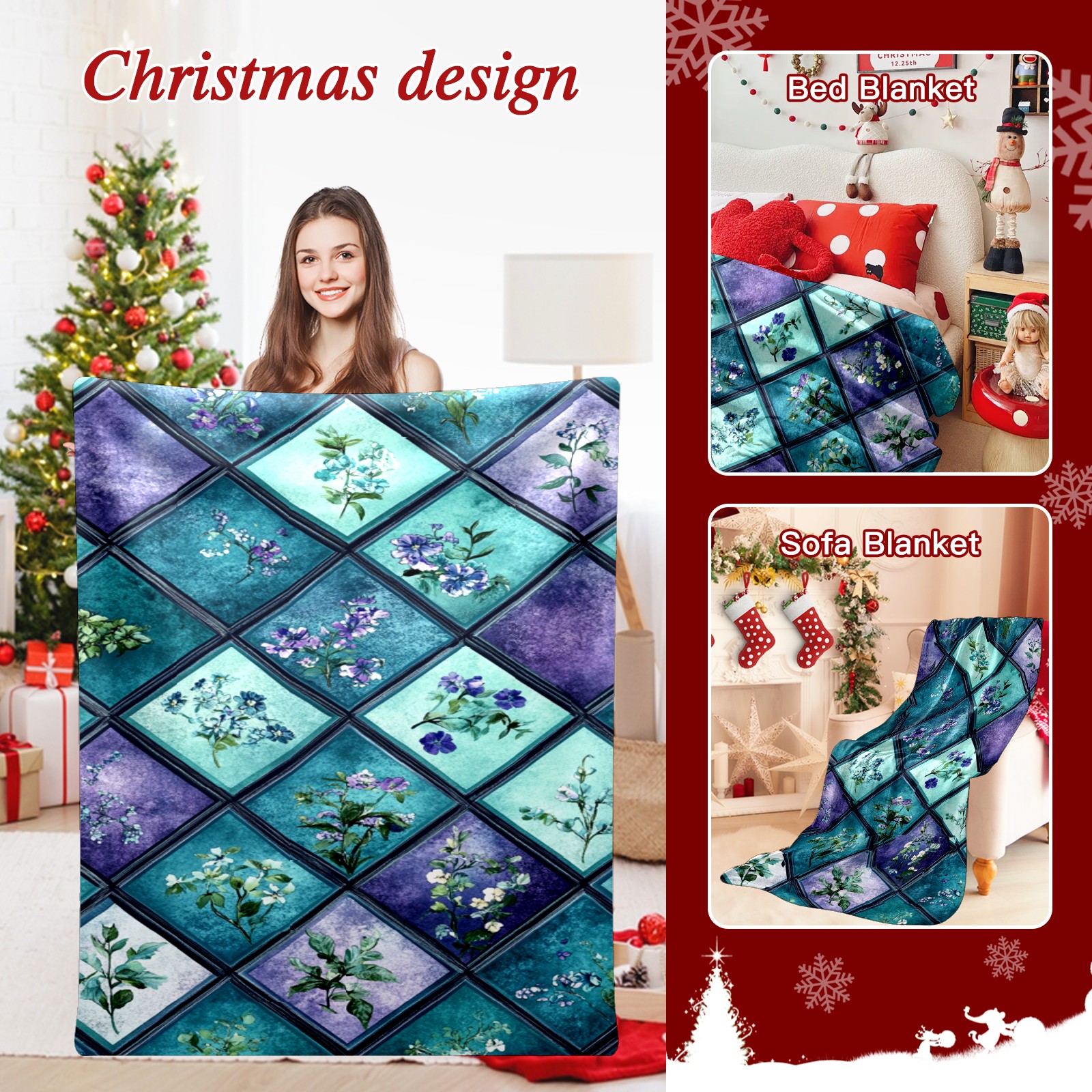 Премиальная фланелевая одеяло Checkered Floral Pattern