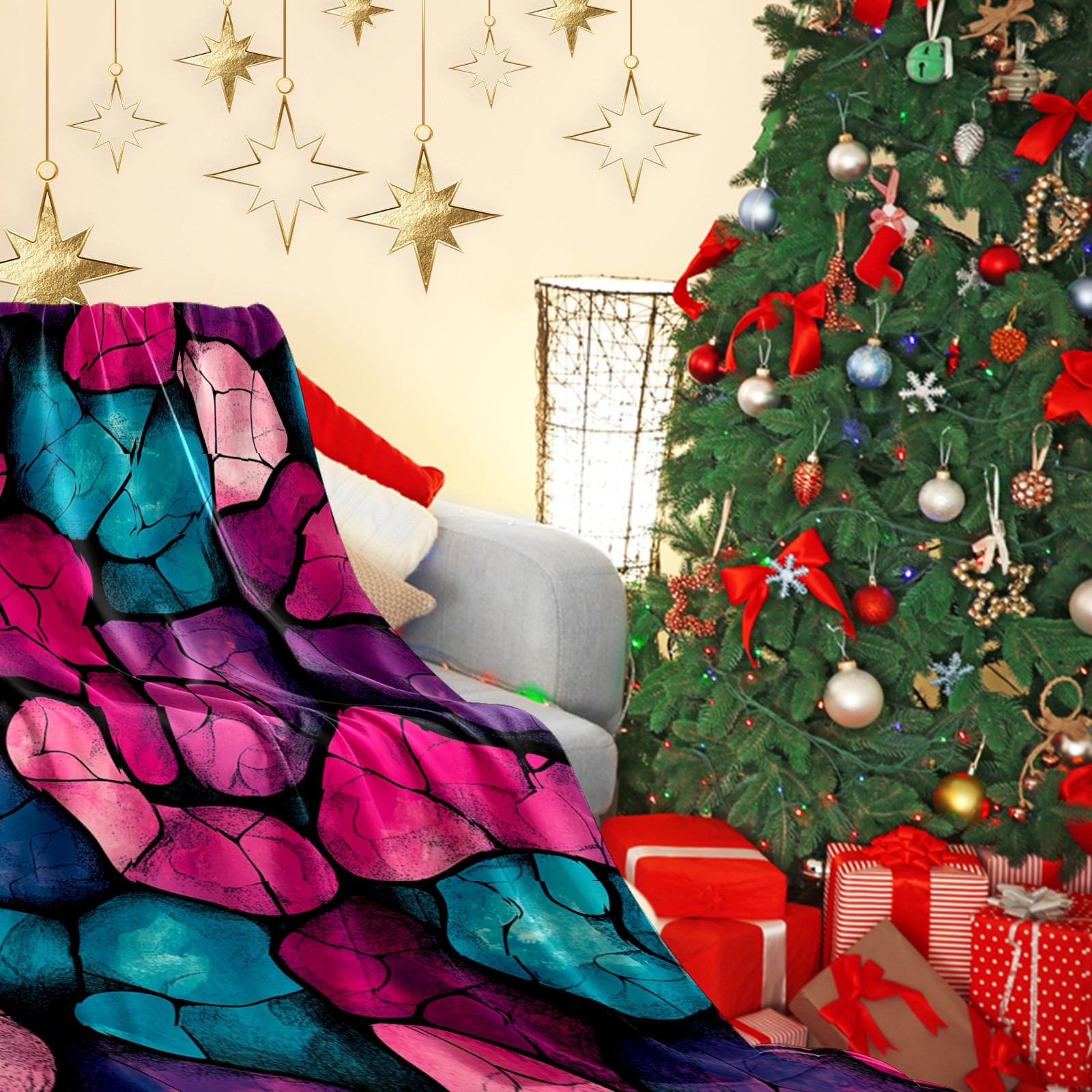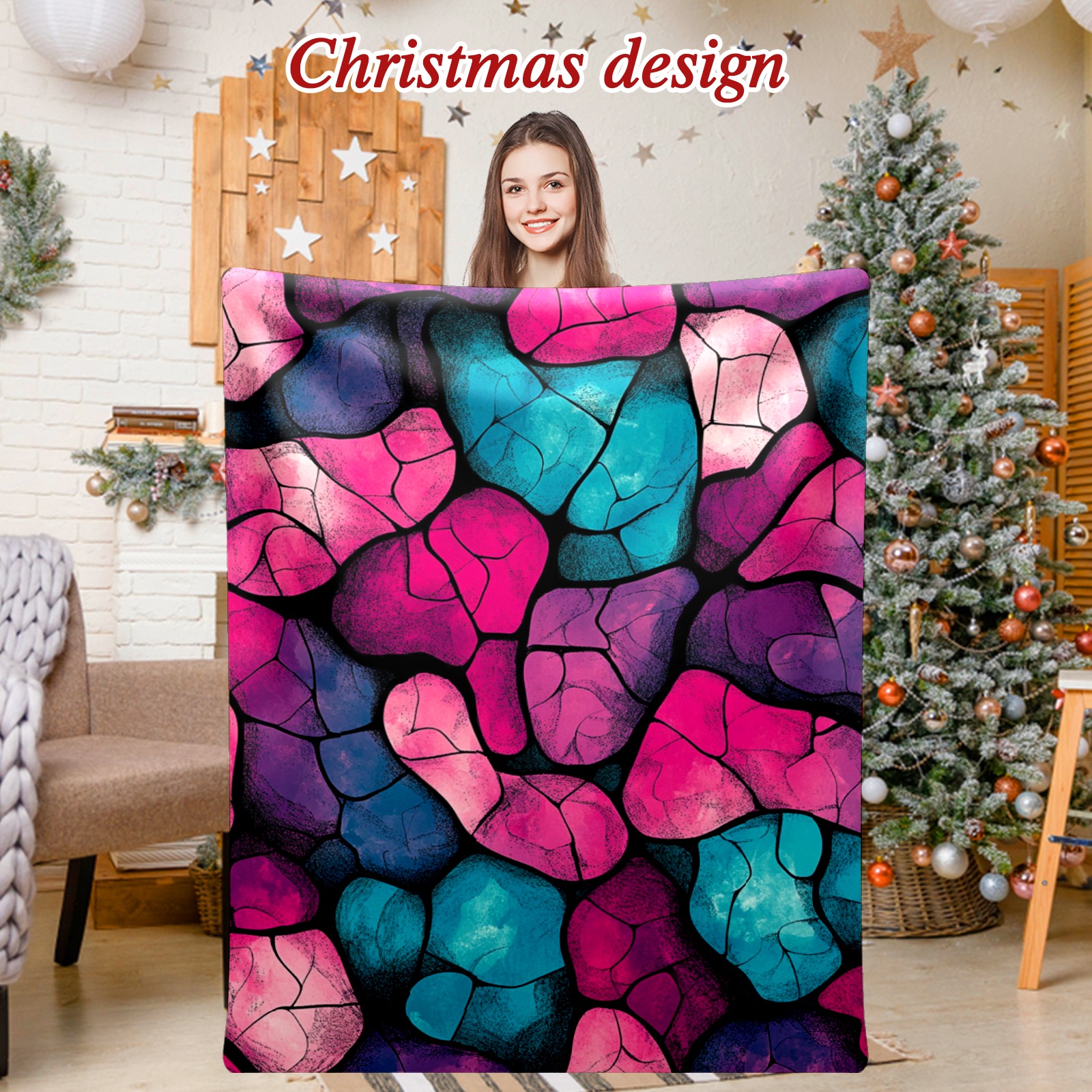 Премиальная фланелевая одеяло Purple Stone Pattern