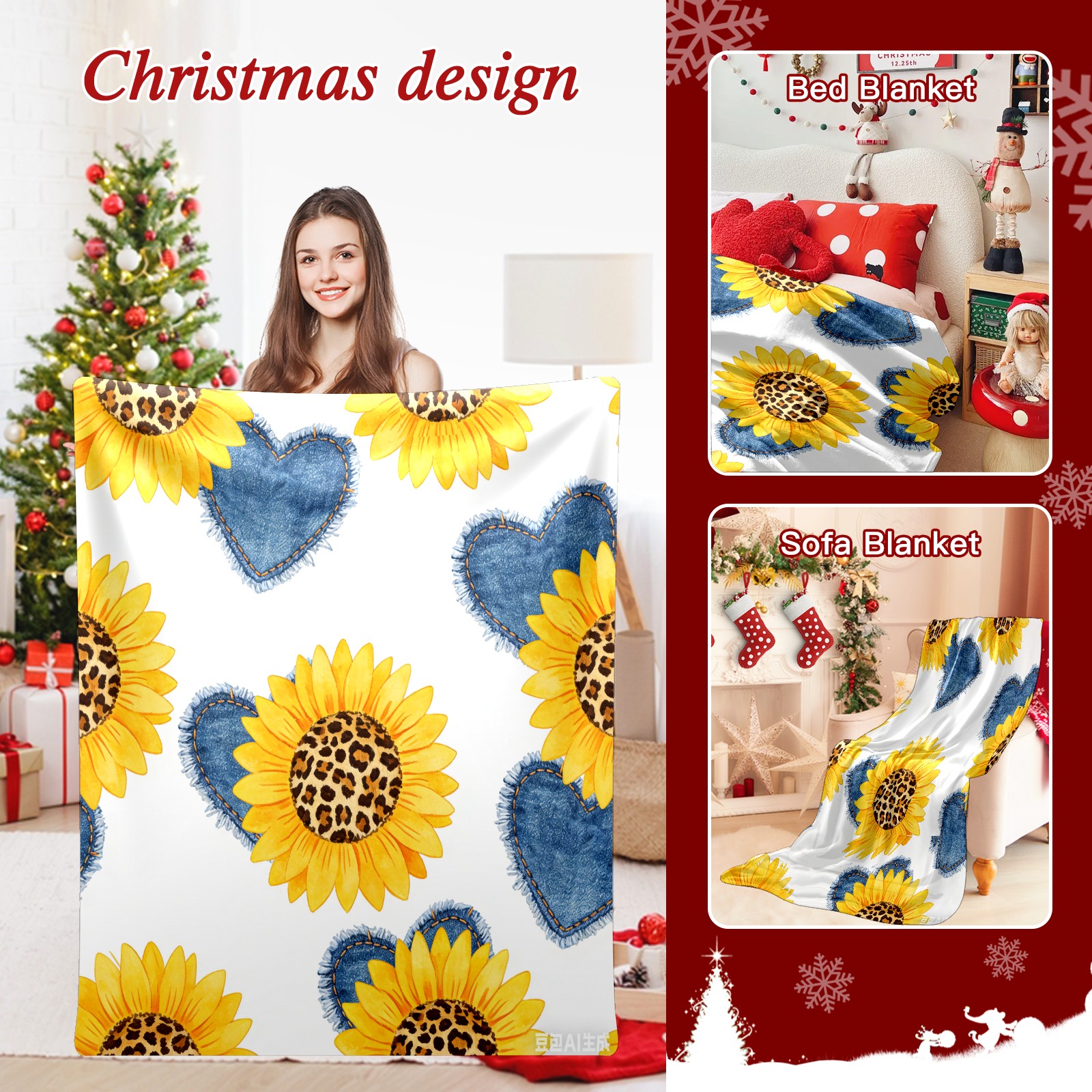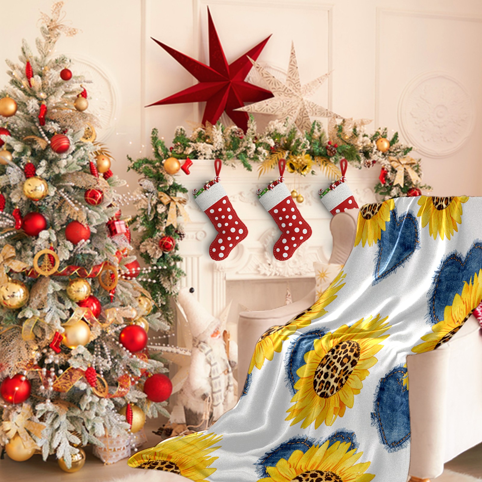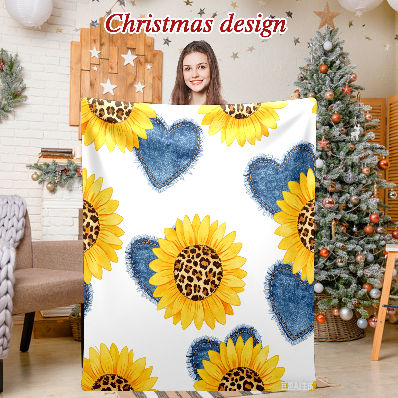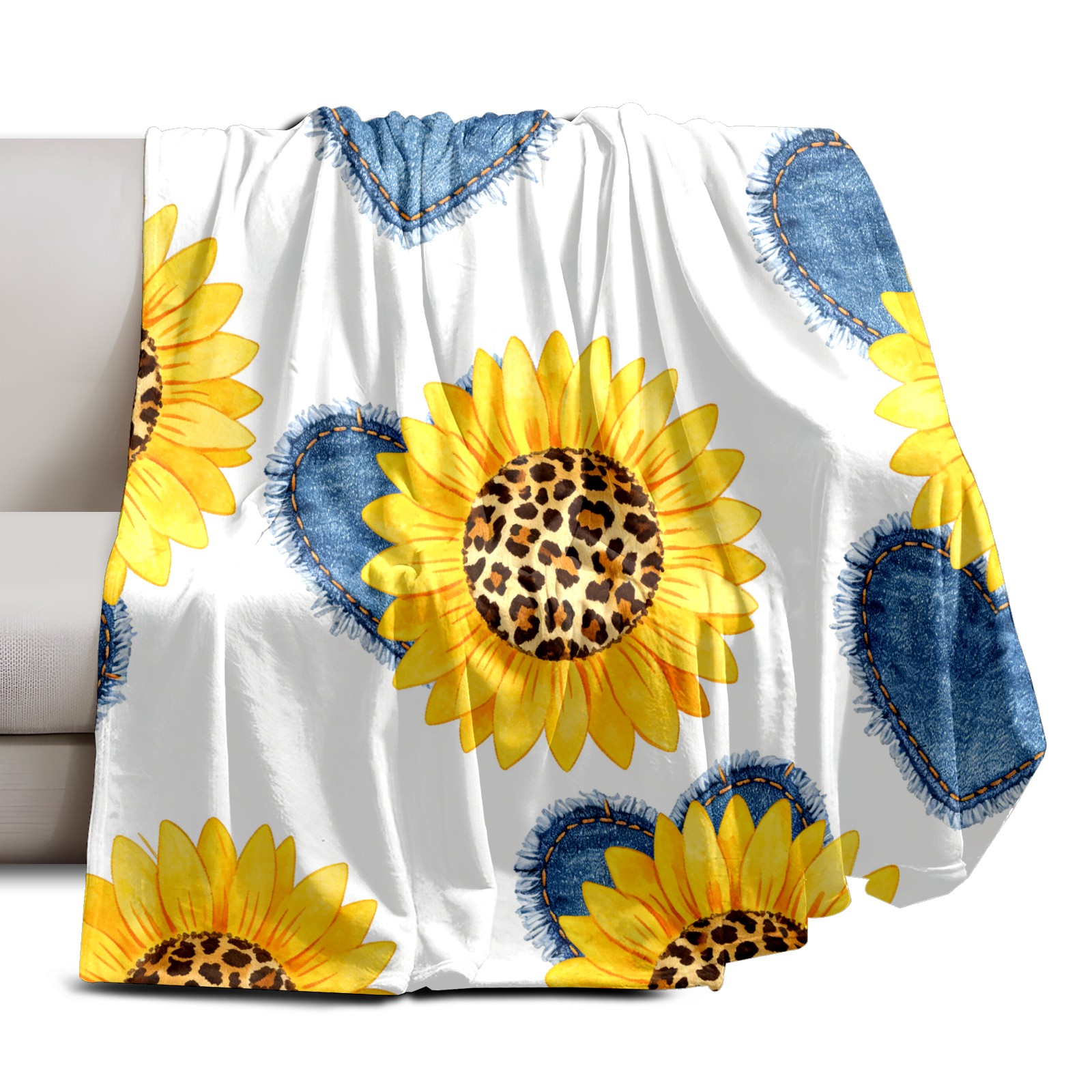 Премиальная фланелевая одеяло Sunflower Cowboy Heart