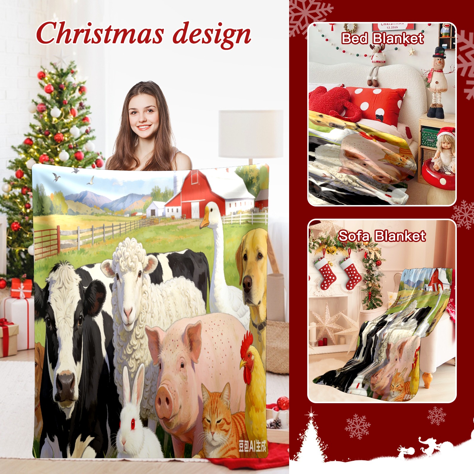 Премиальная фланелевая одеяло Farm Animal Collection 2