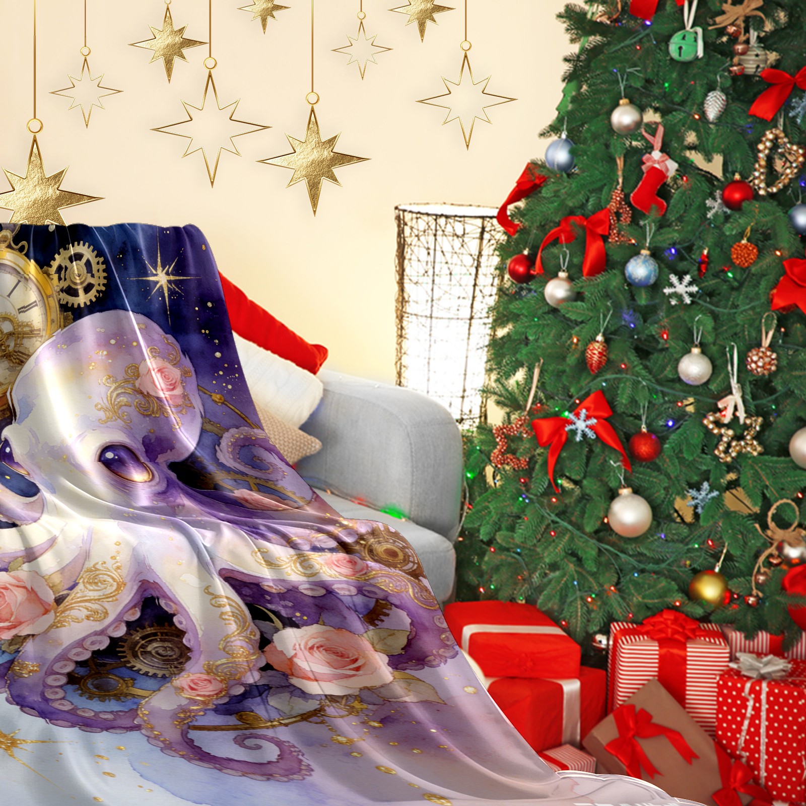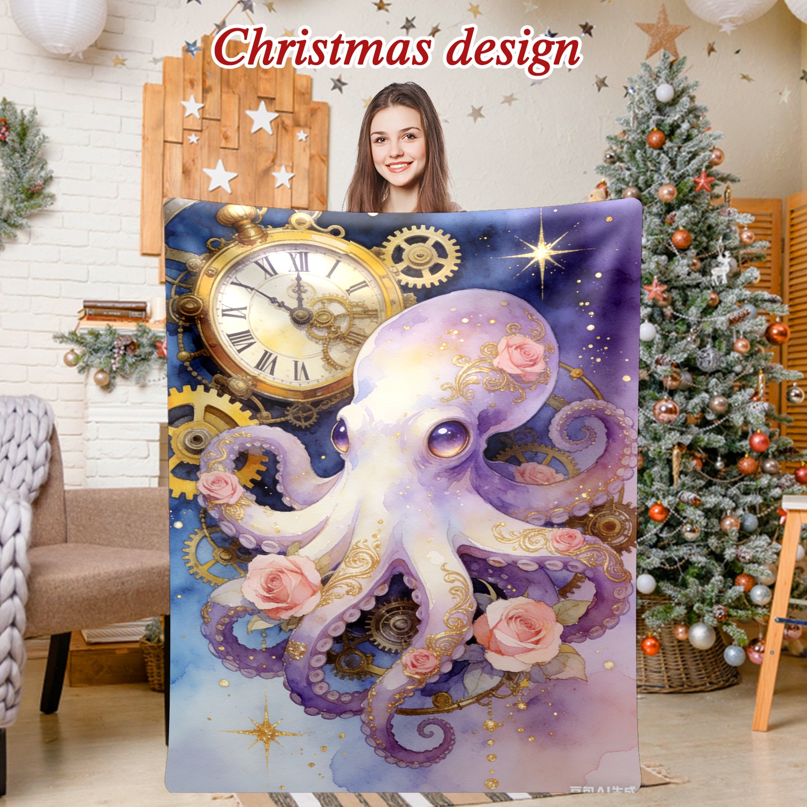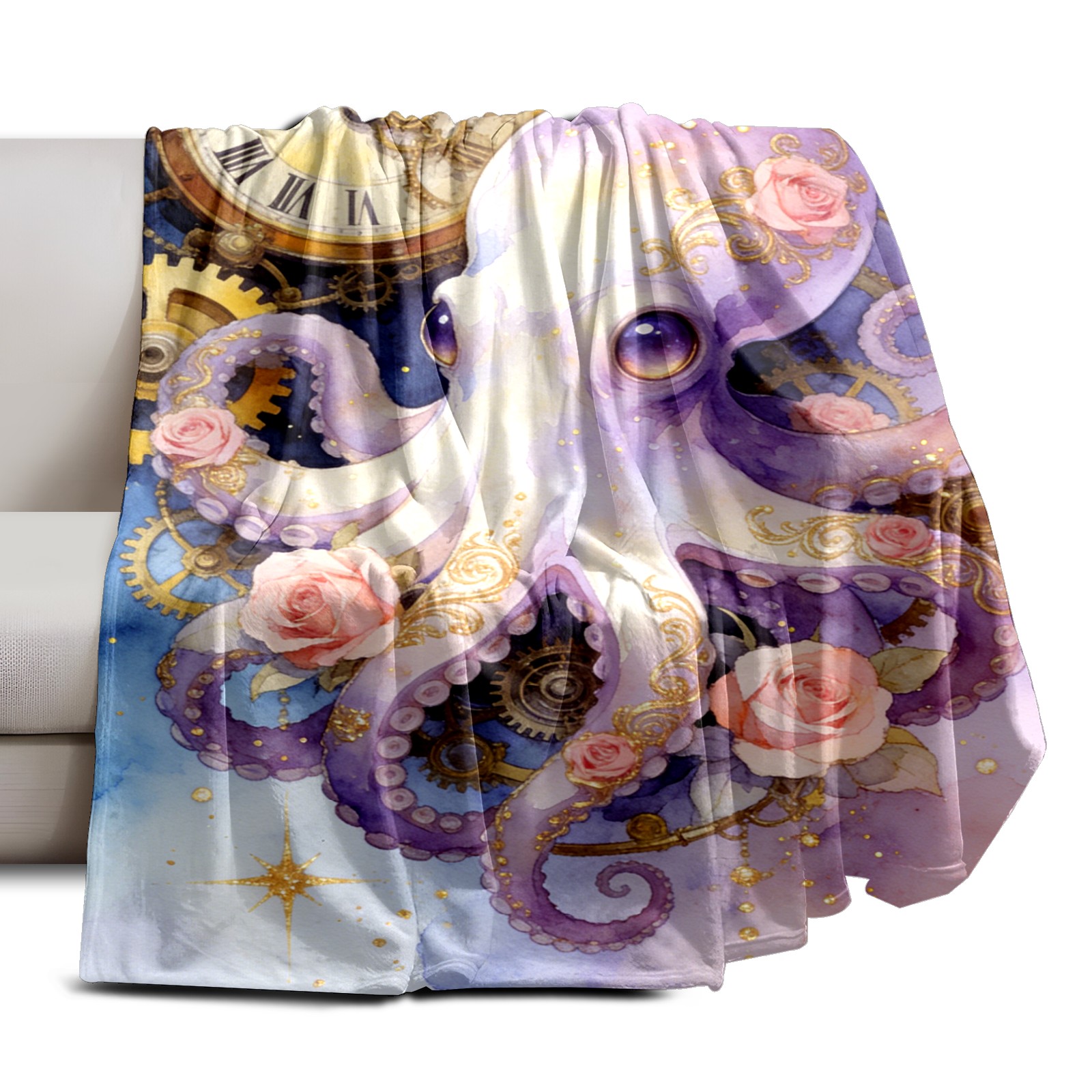Премиальная фланелевая одеяло Steampunk Octopus