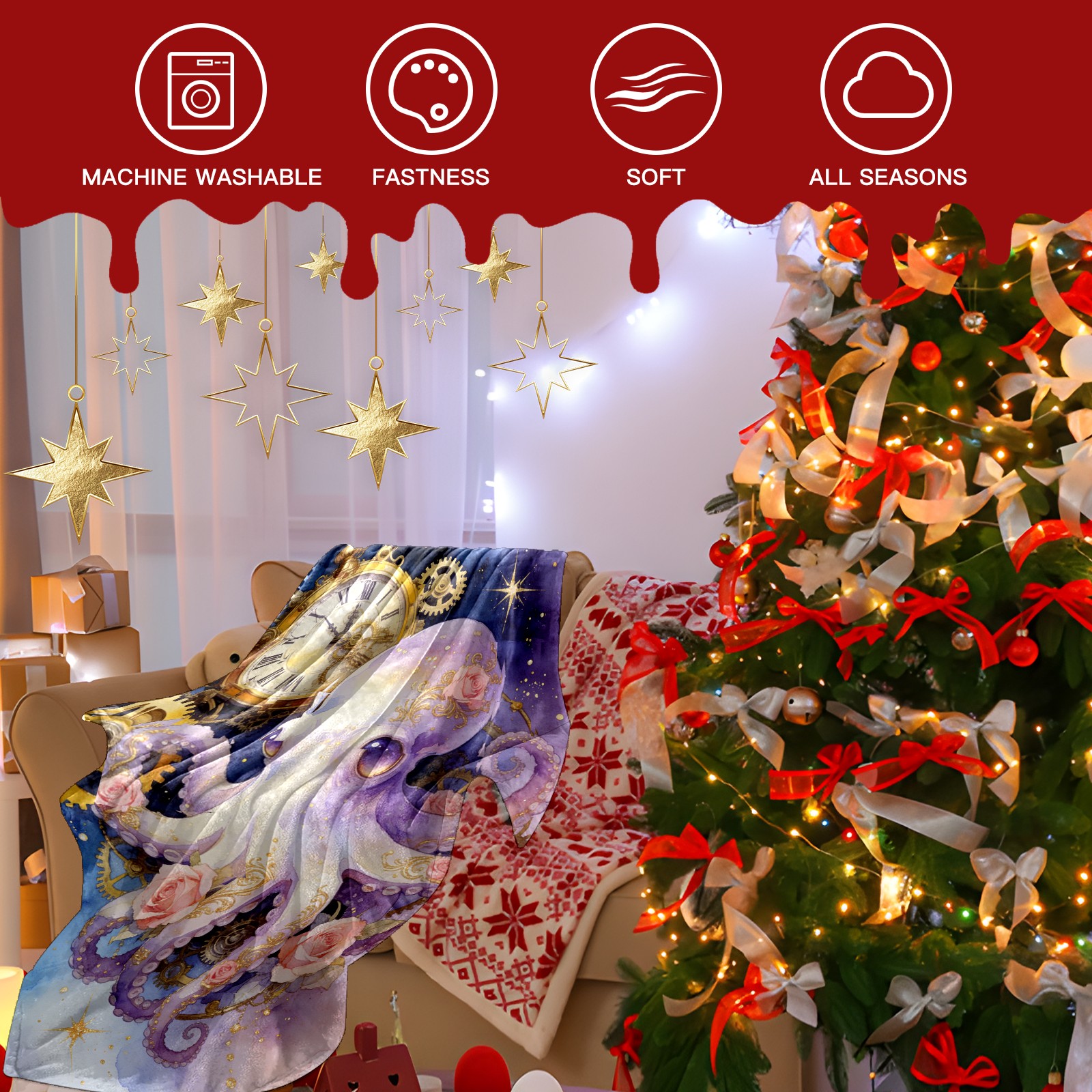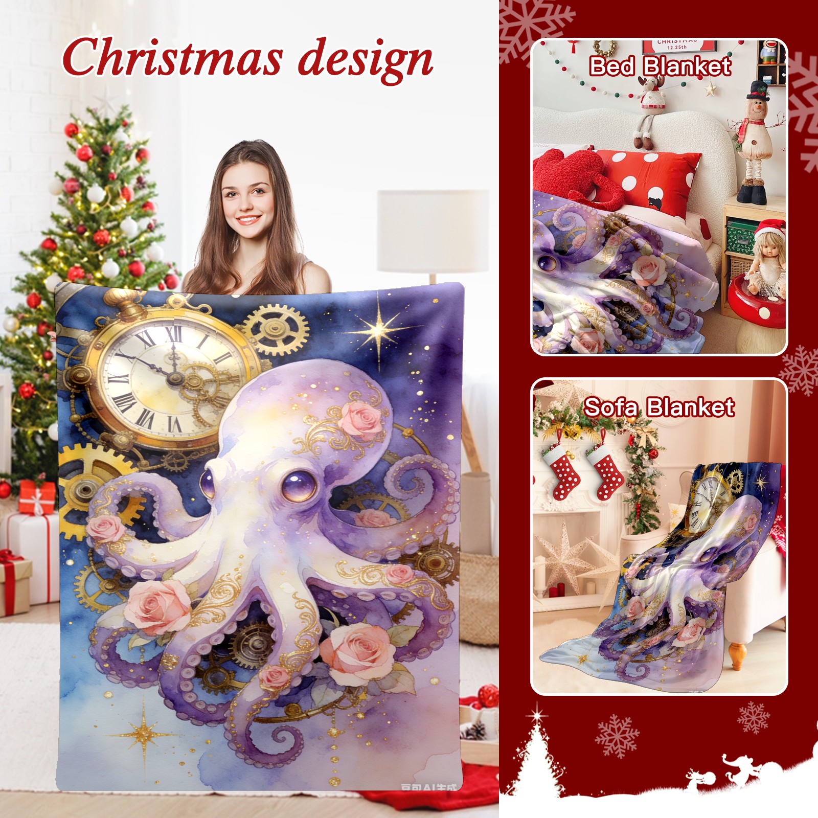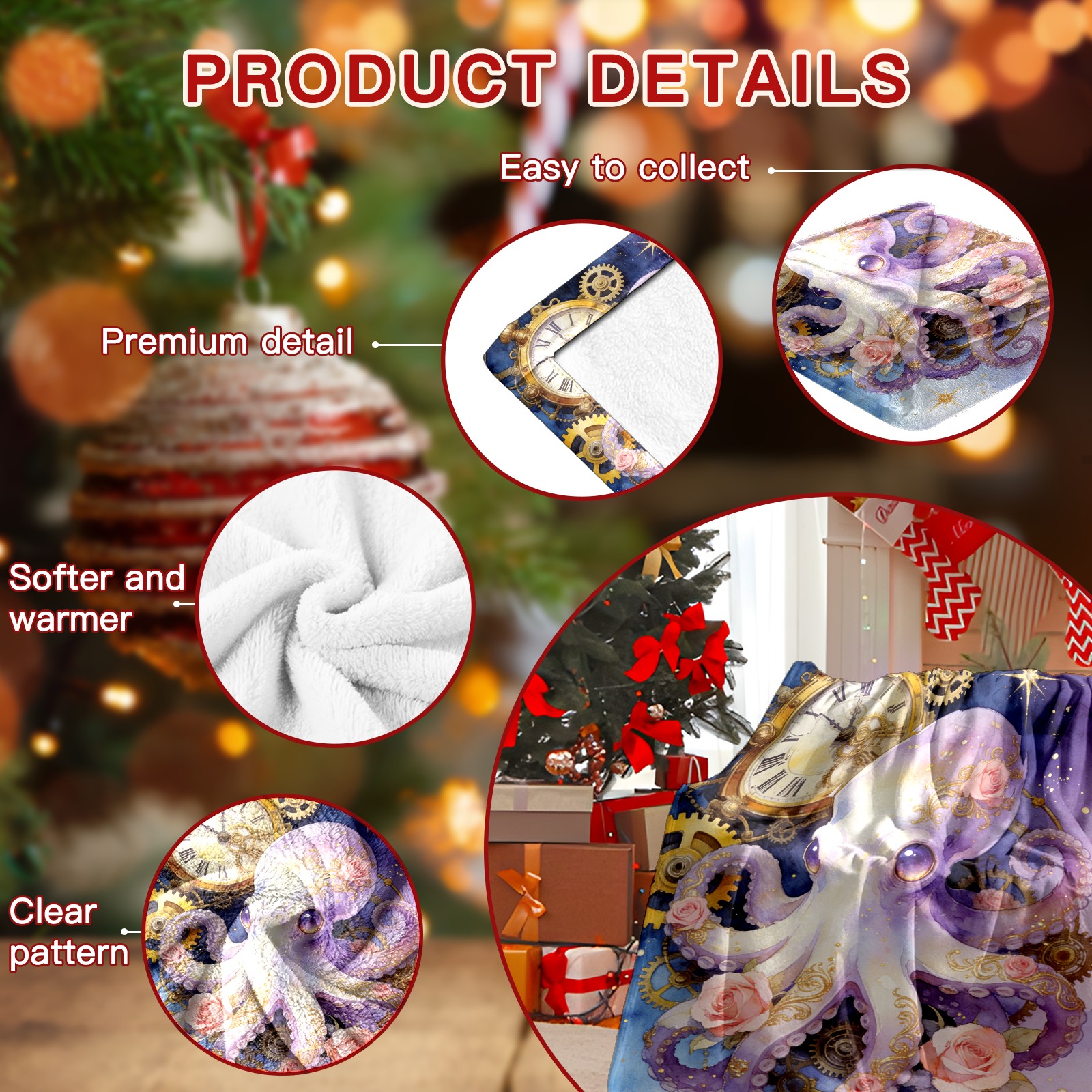 Премиальная фланелевая одеяло Steampunk Octopus