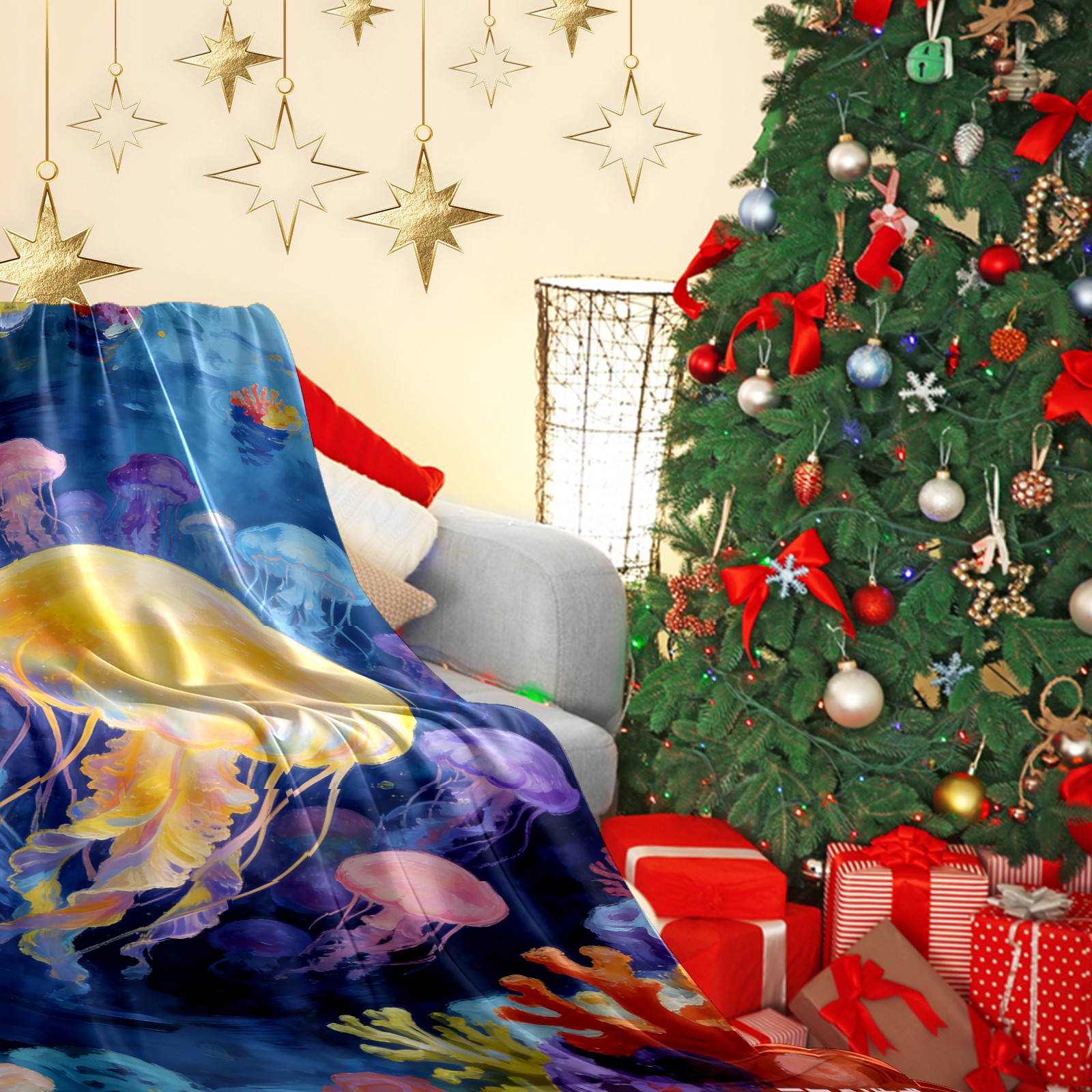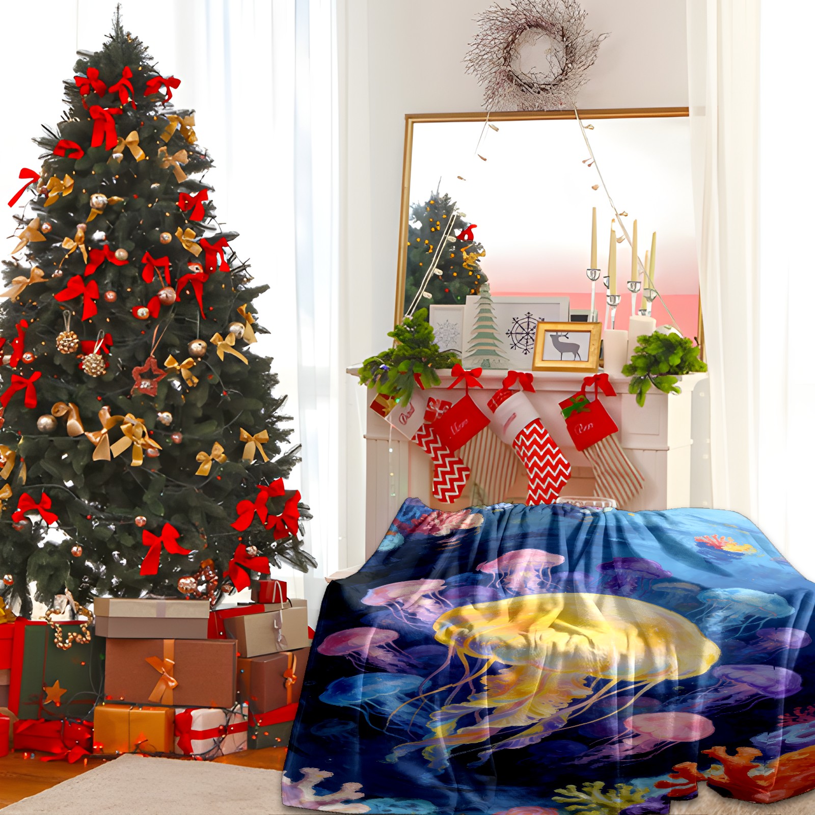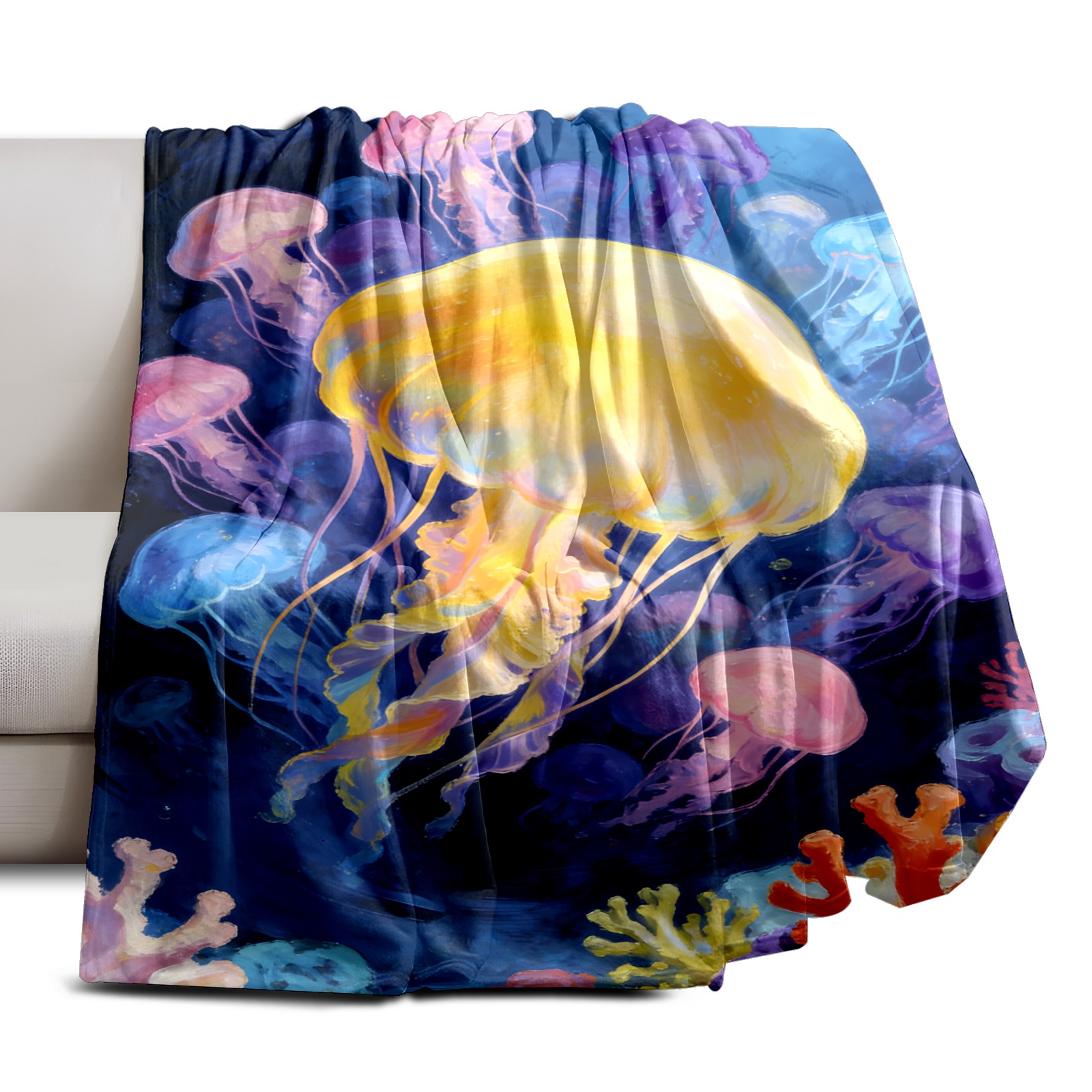 Премиальная фланелевая одеяло Dreamy Rainbow Jellyfish 1