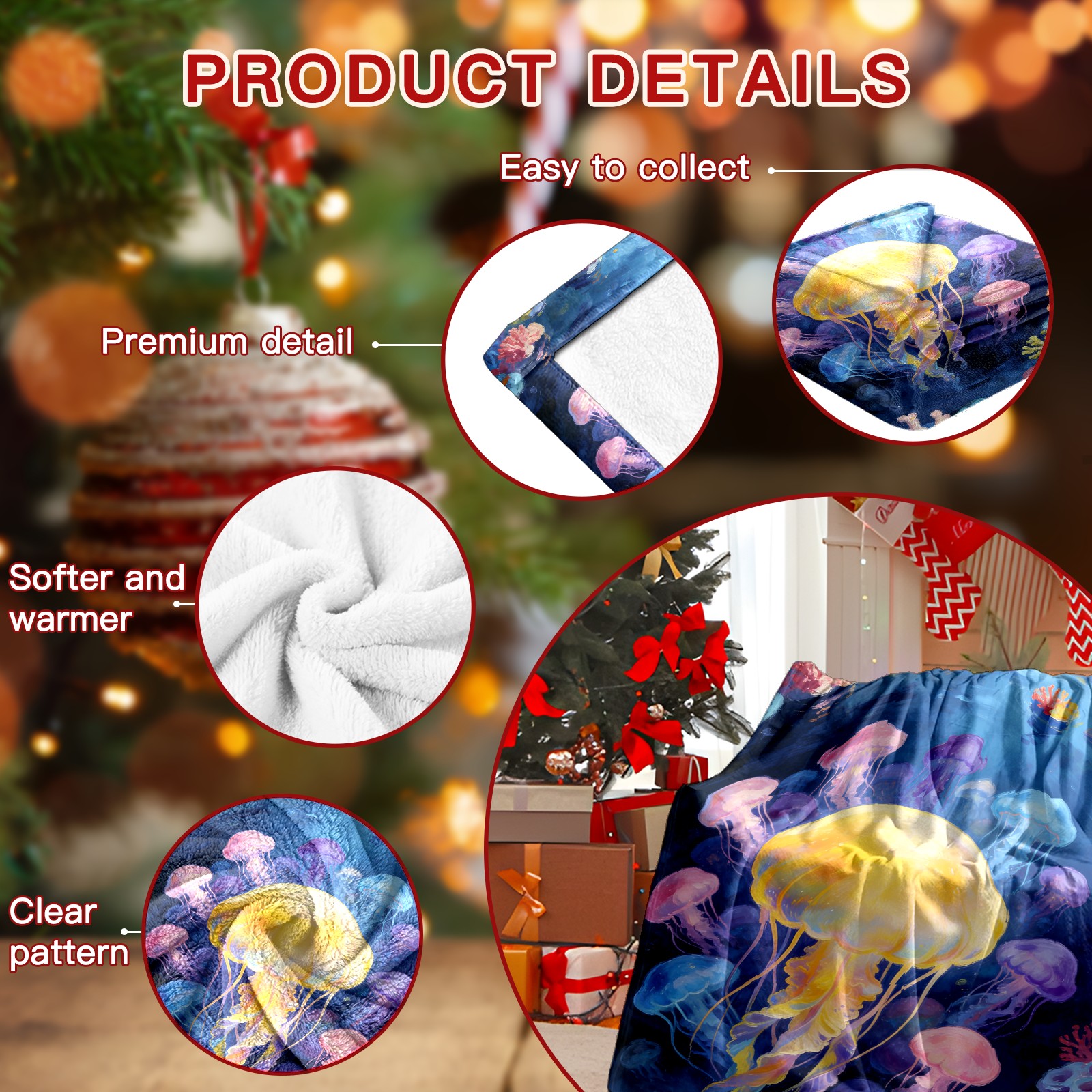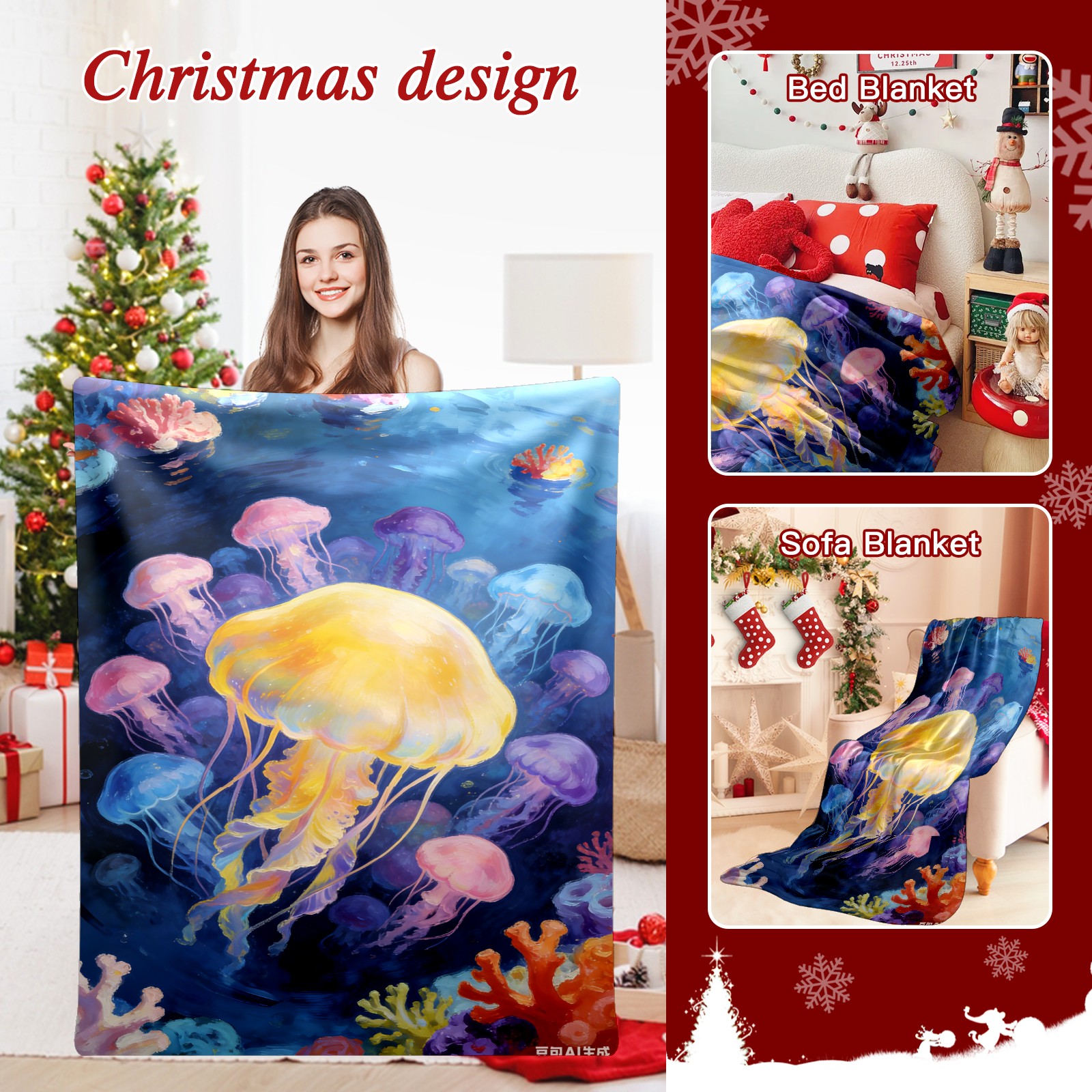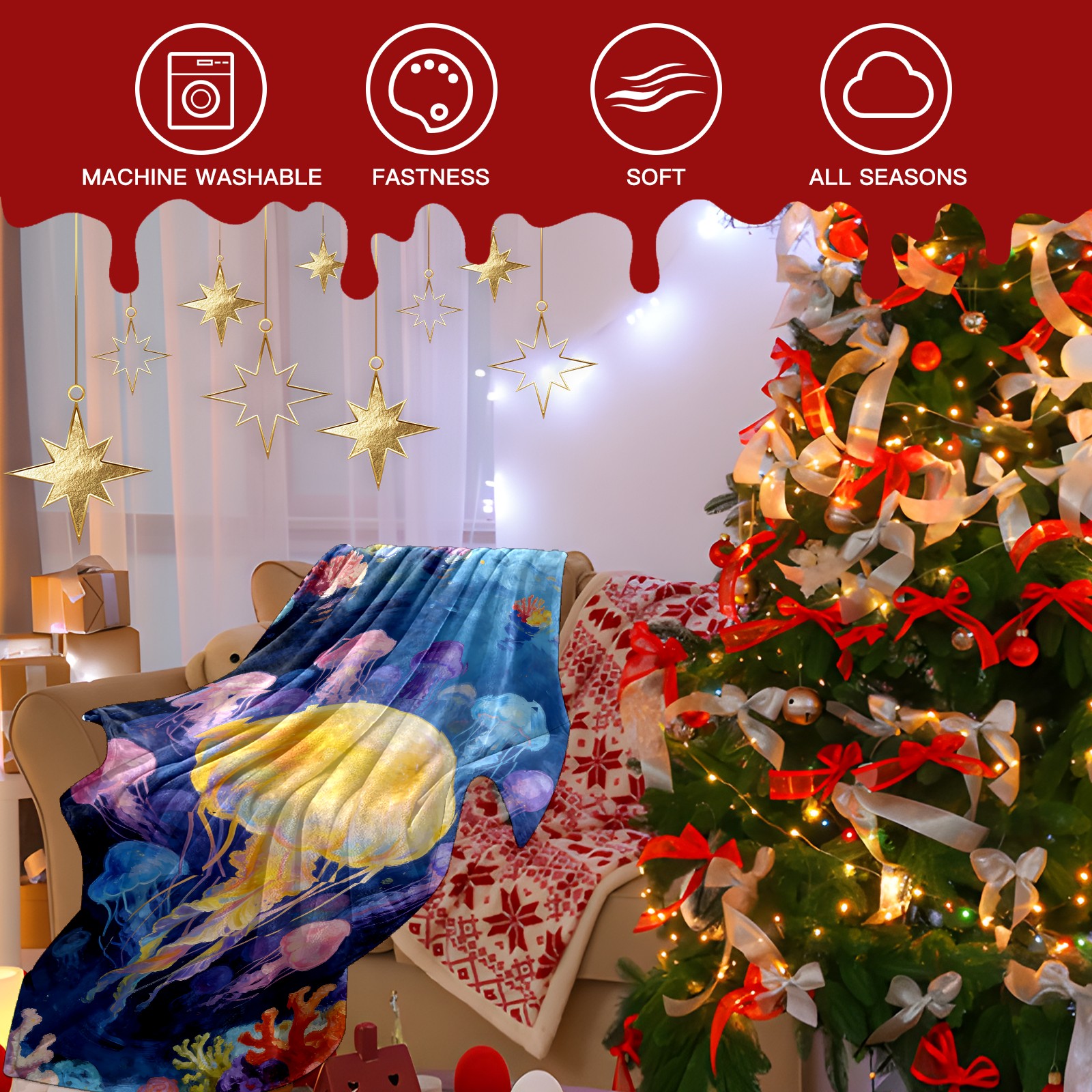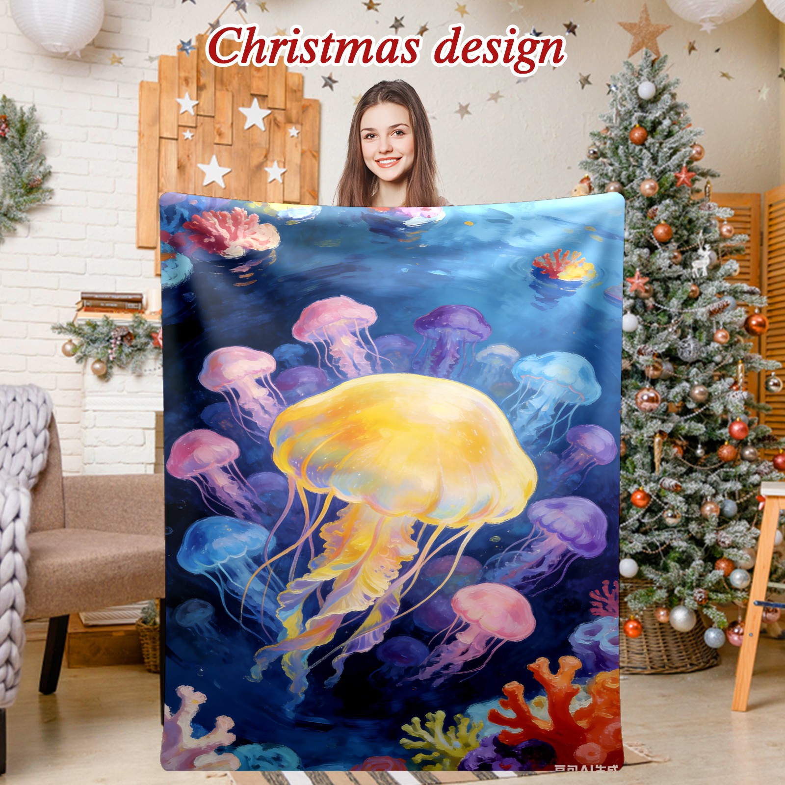 Премиальная фланелевая одеяло Dreamy Rainbow Jellyfish 1
