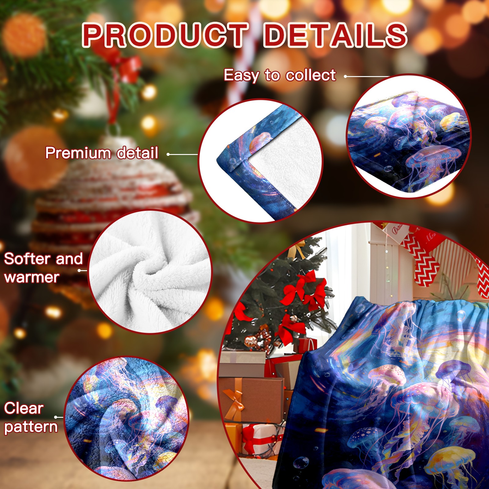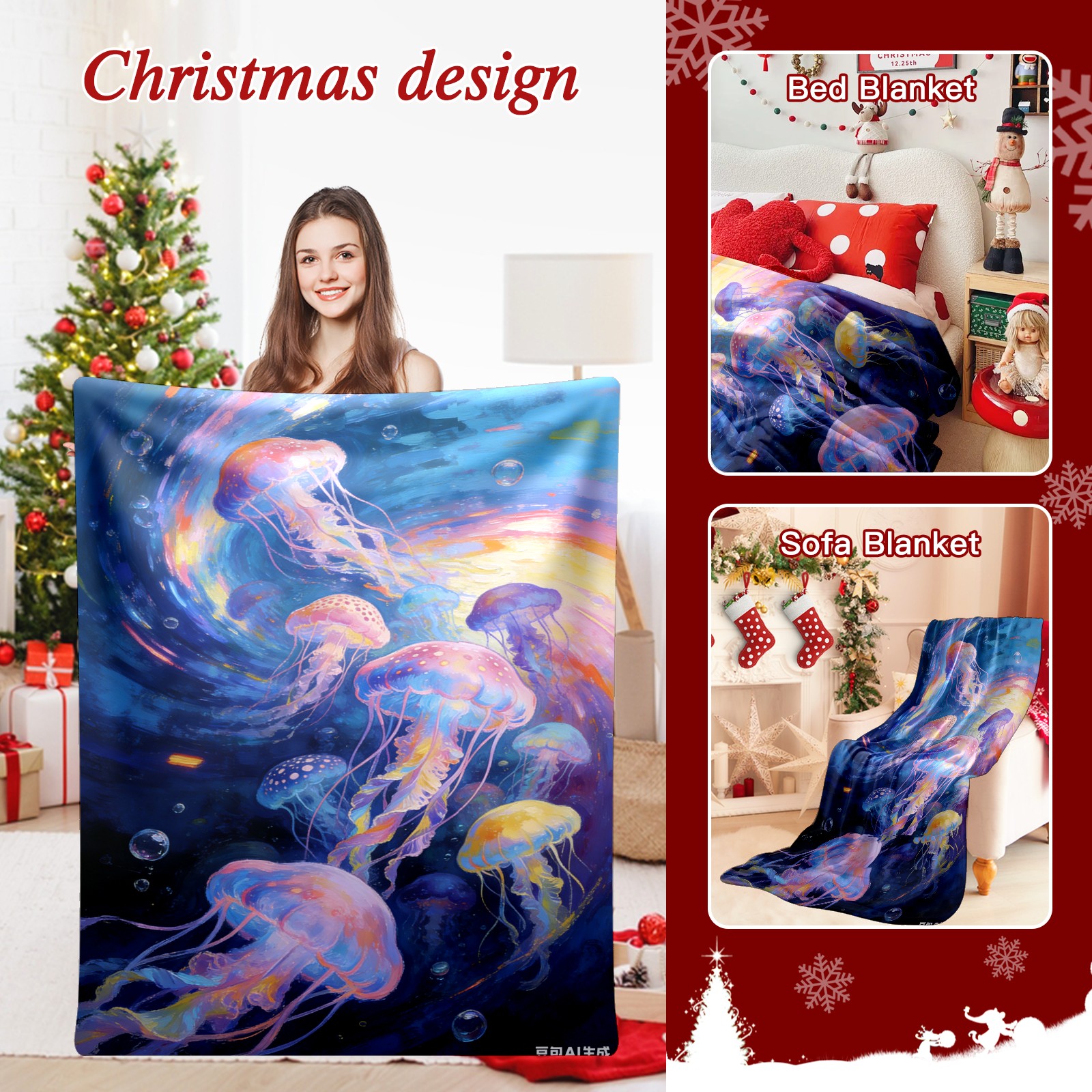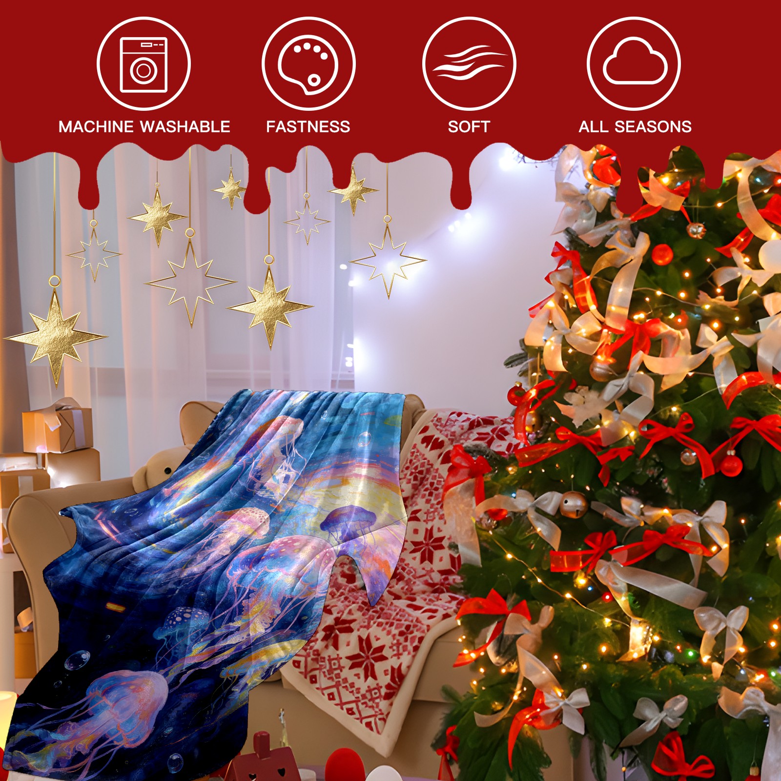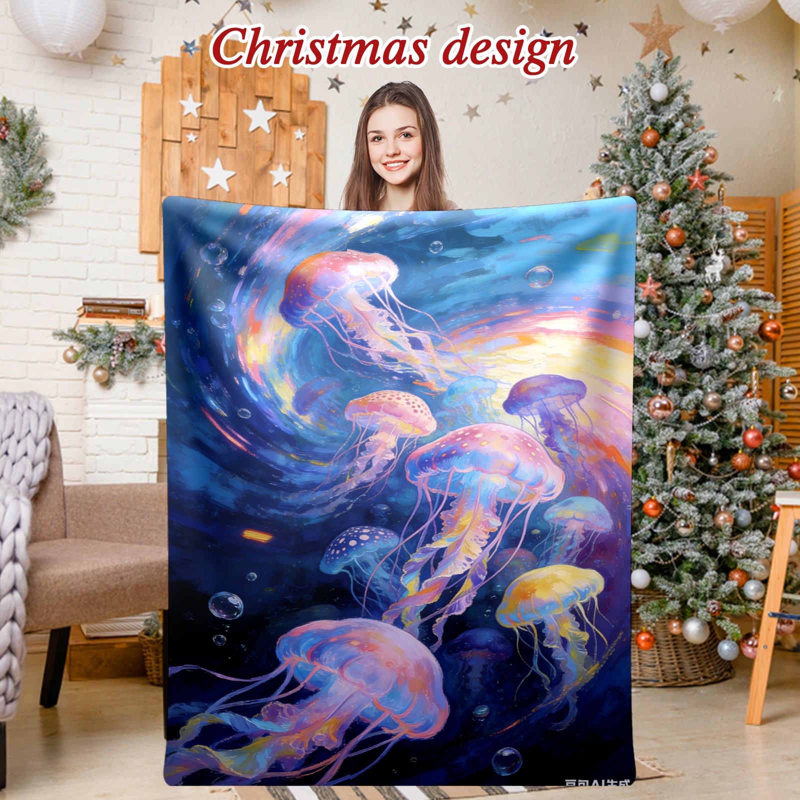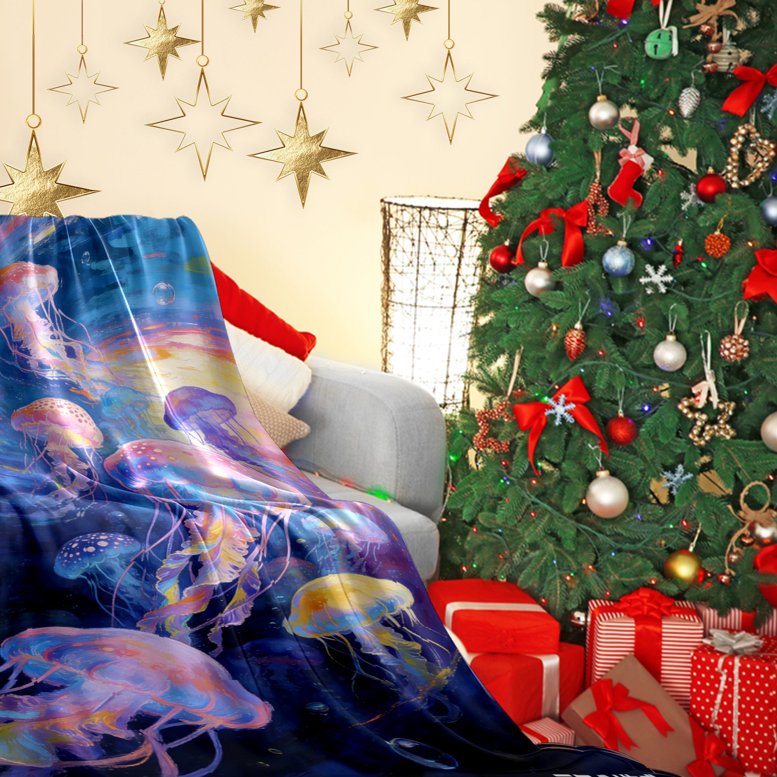 Премиальная фланелевая одеяло Dreamy Rainbow Jellyfish 3
