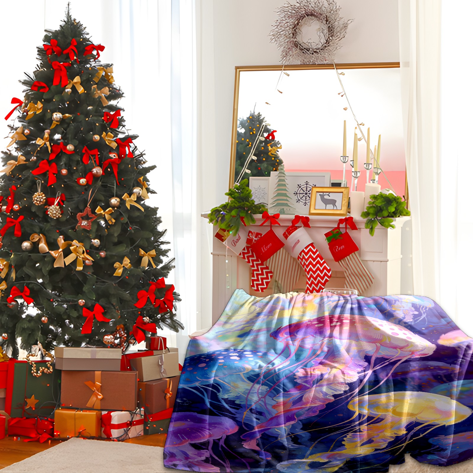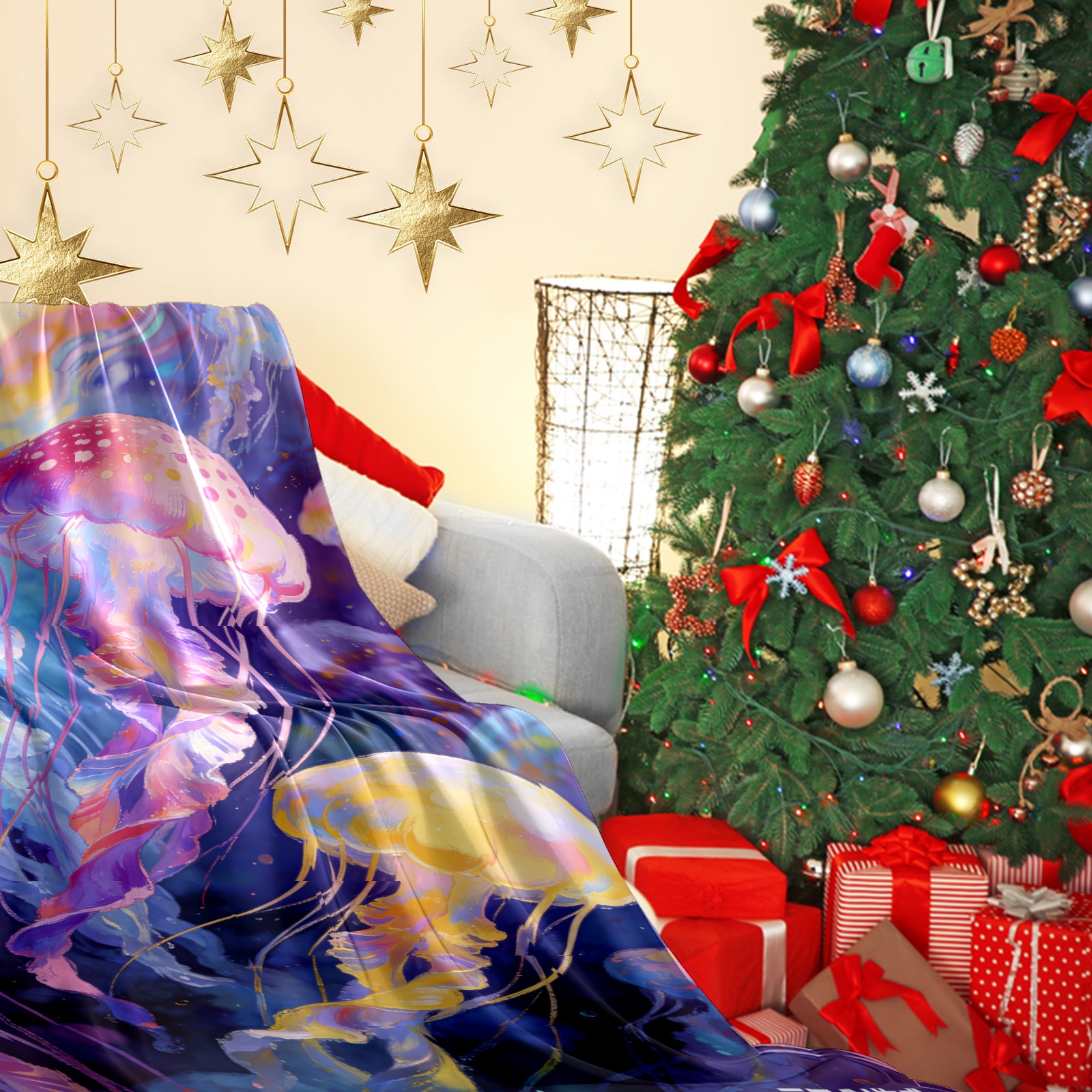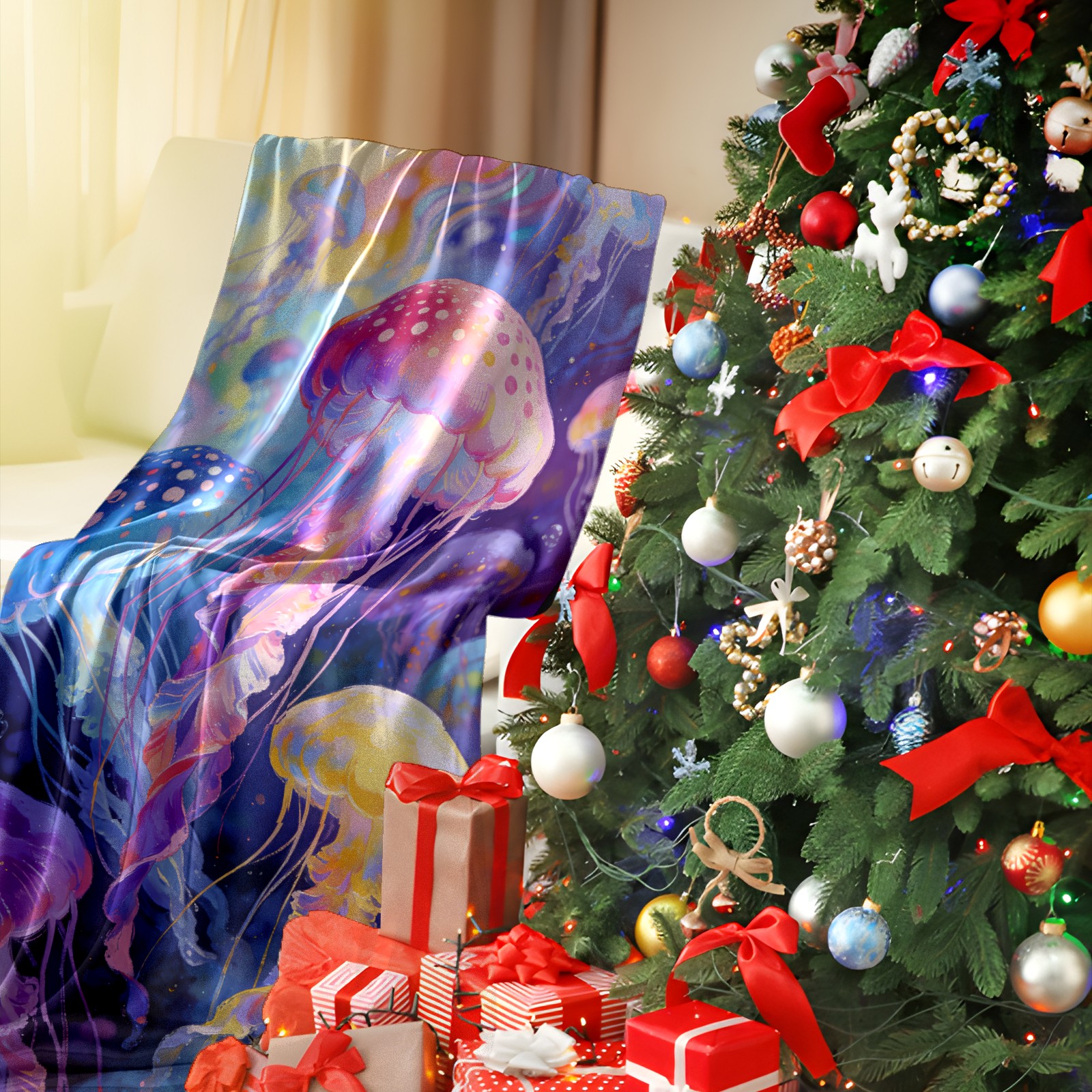 Премиальная фланелевая одеяло Dreamy Rainbow Jellyfish 4