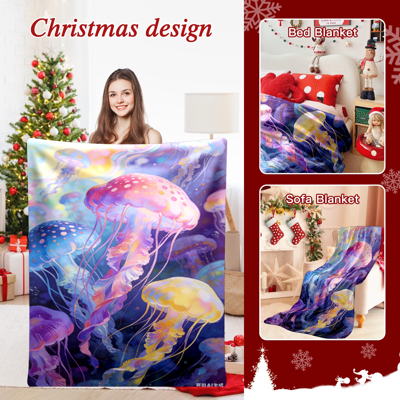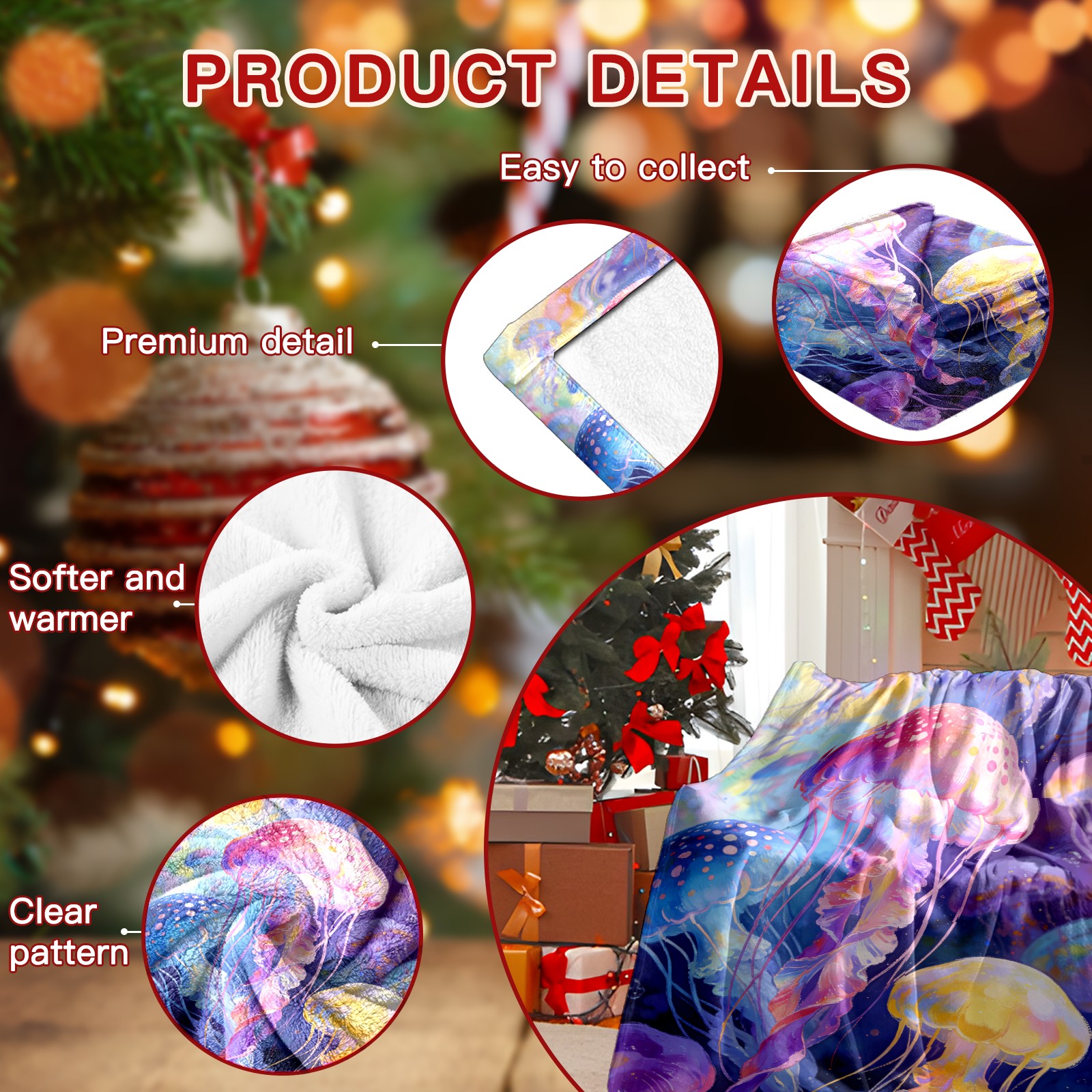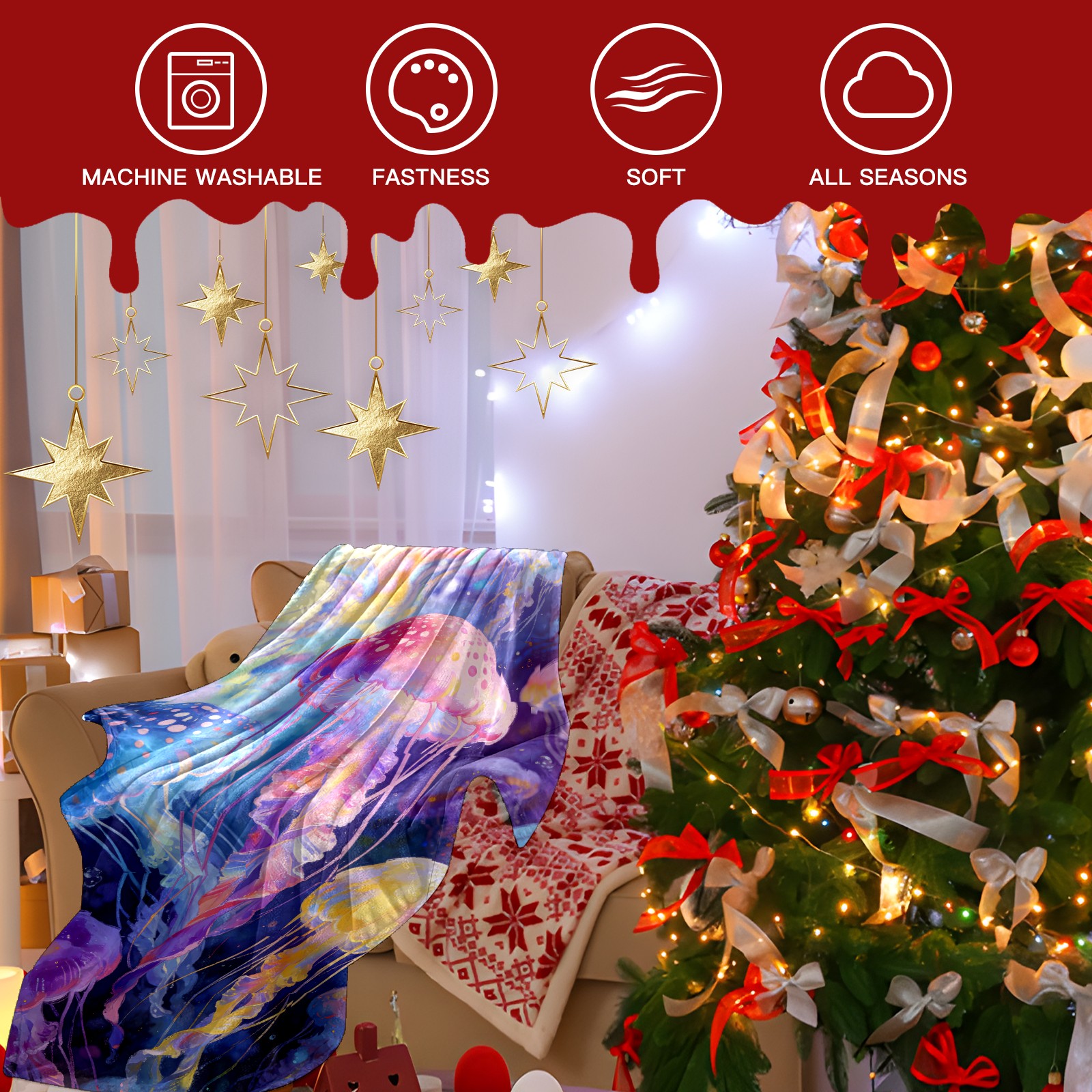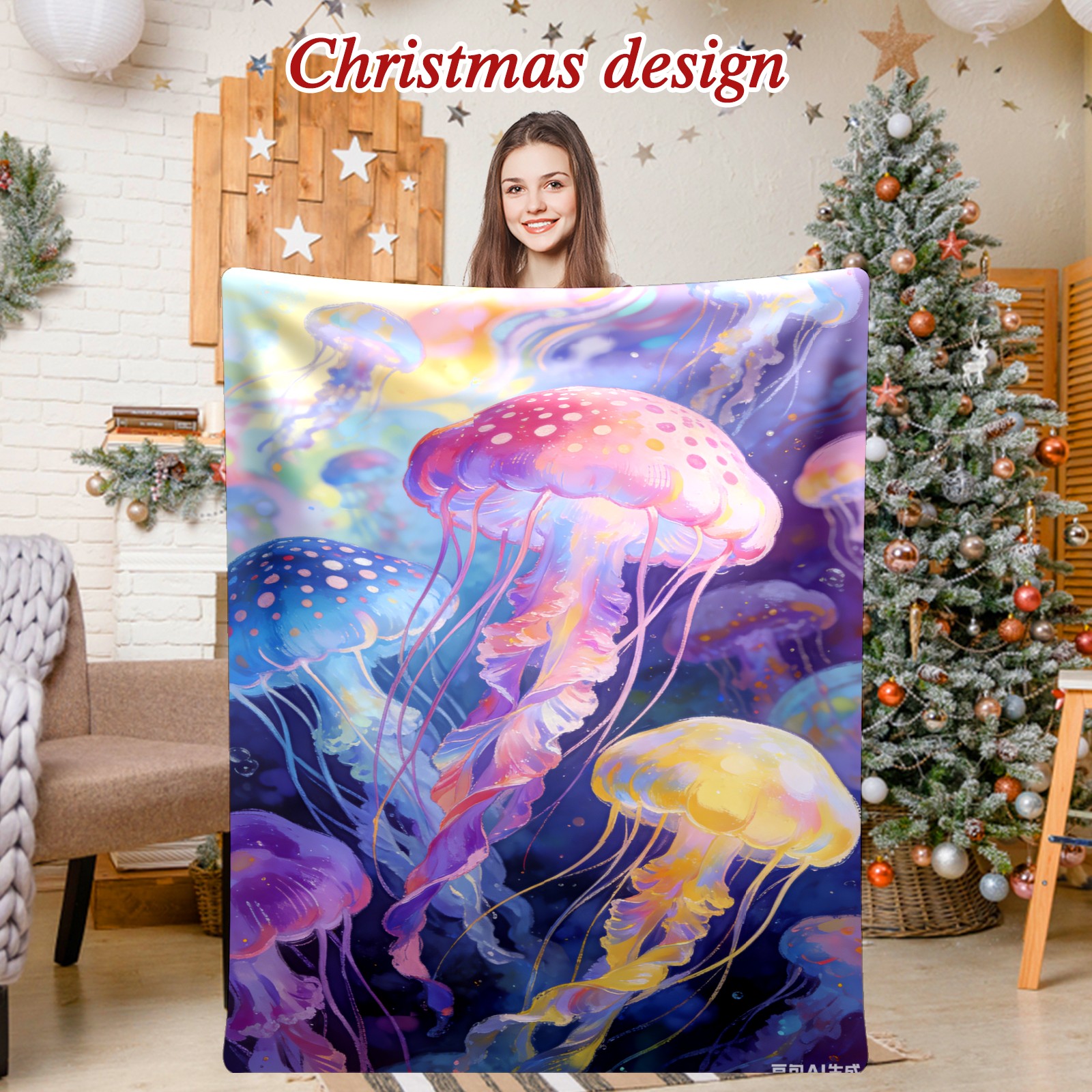Премиальная фланелевая одеяло Dreamy Rainbow Jellyfish 4