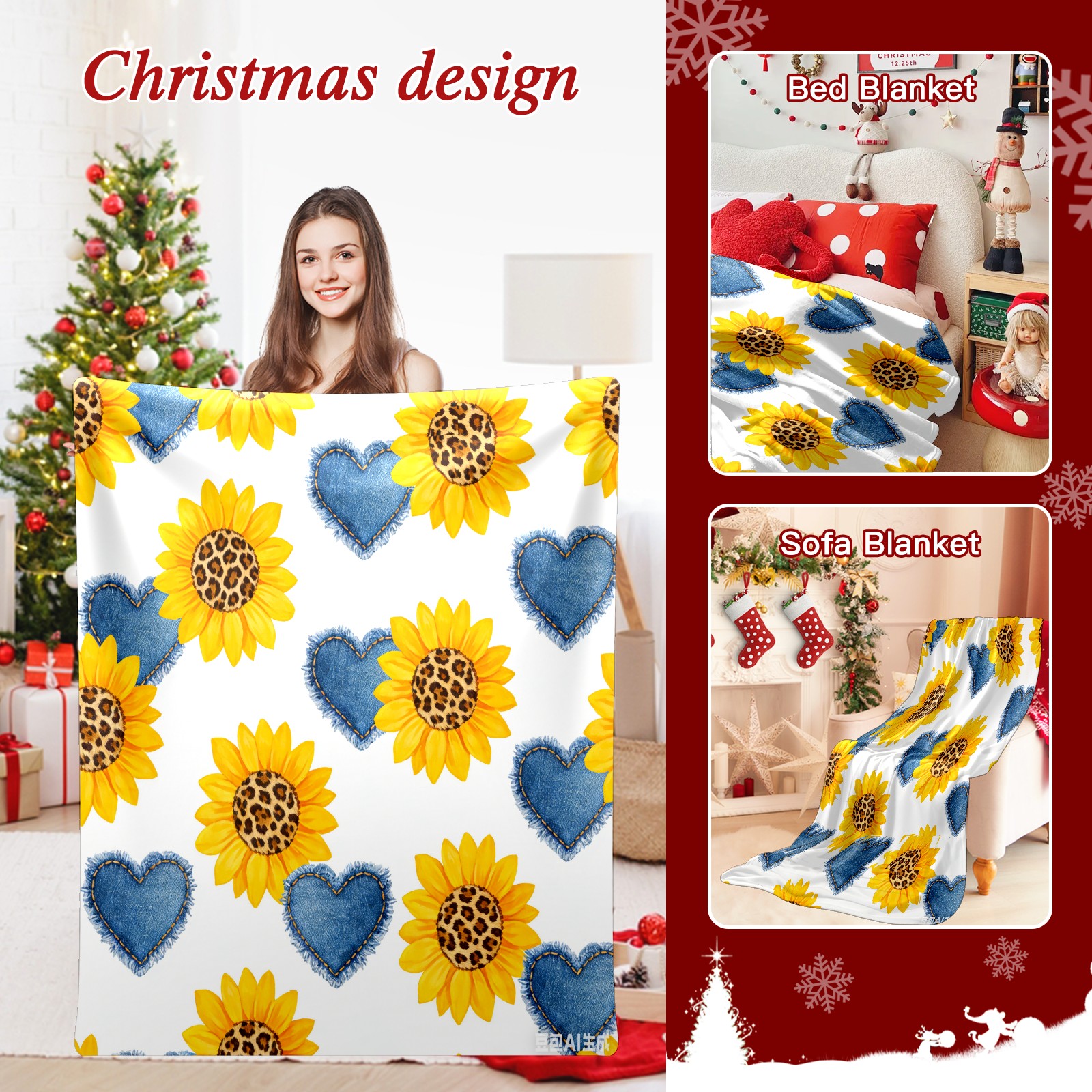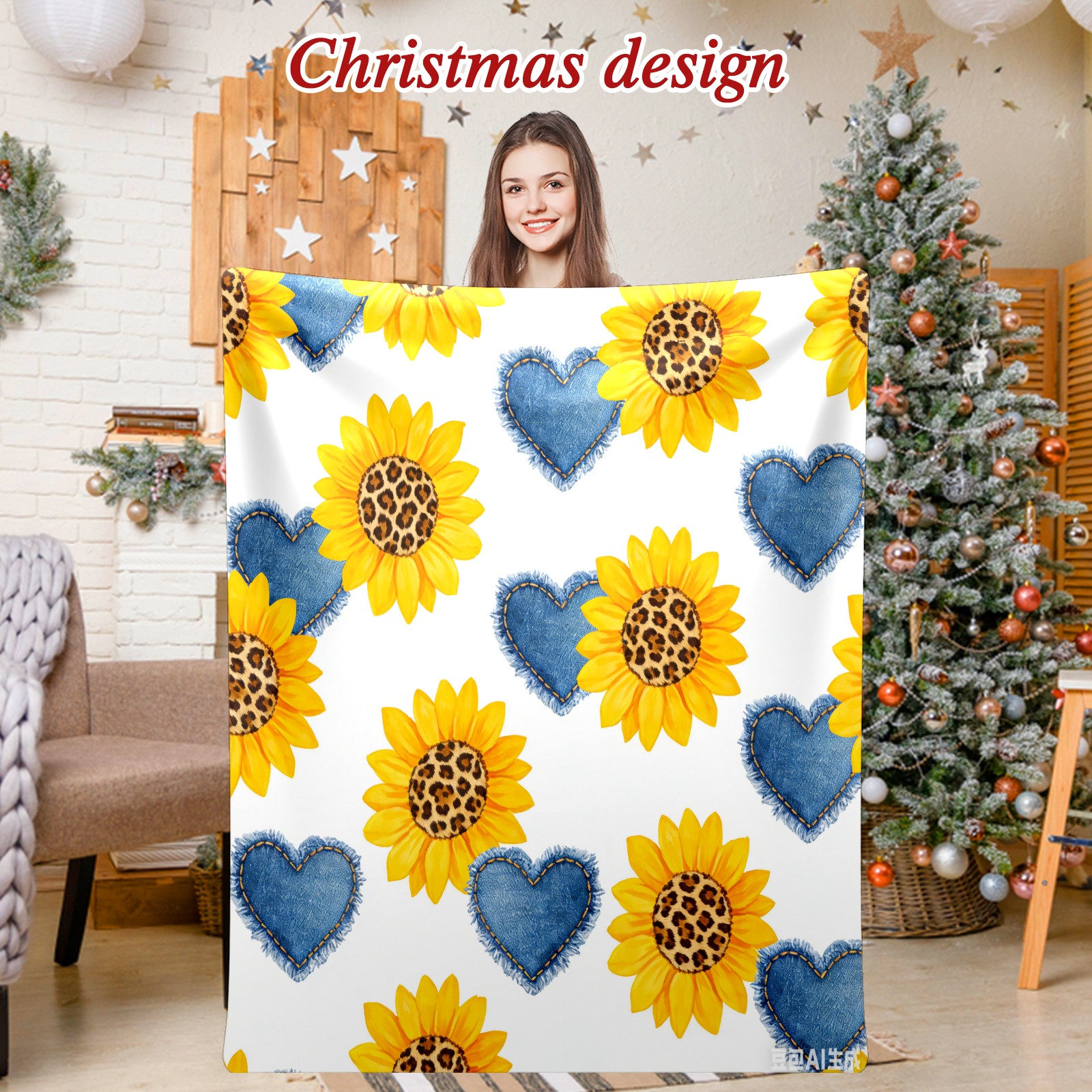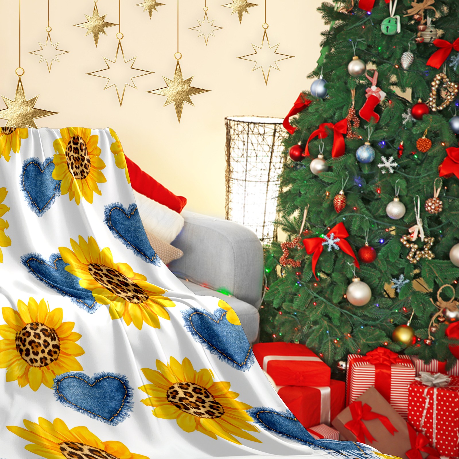 Премиальная фланелевая одеяло Sunflower Cowboy Heart 1