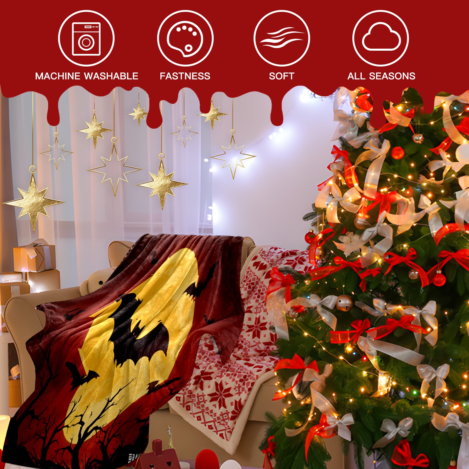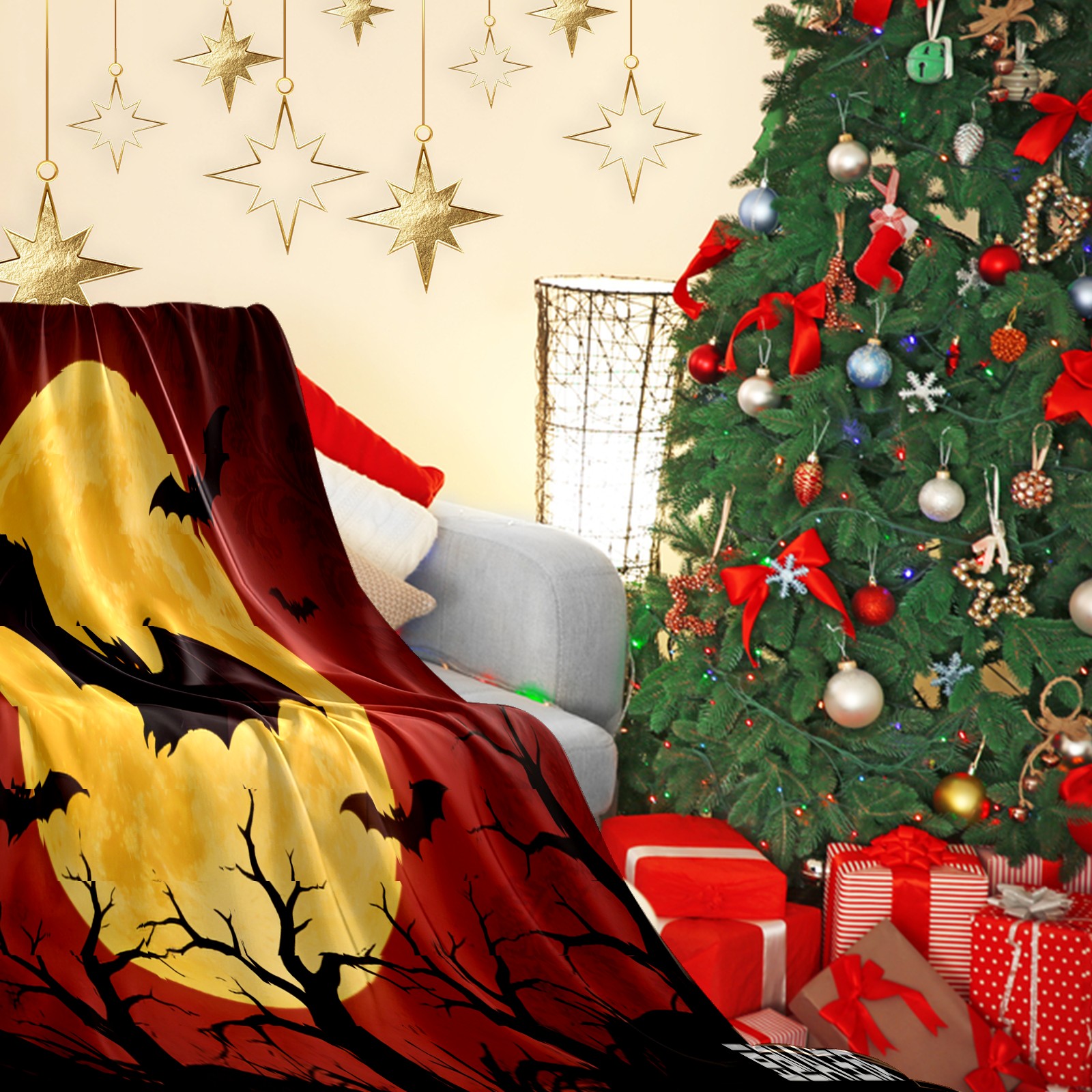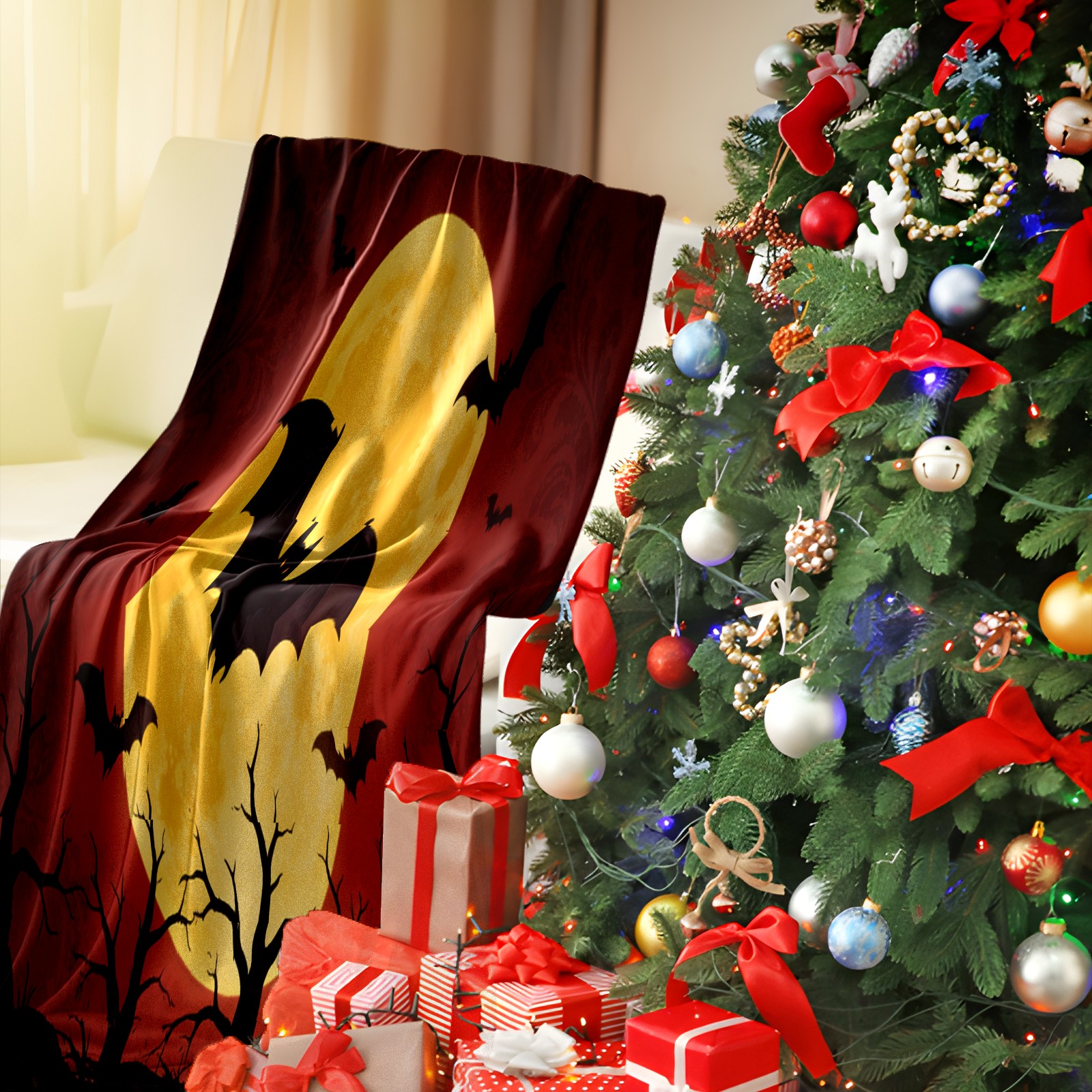 Премиальная фланелевая одеяло Halloween Bats