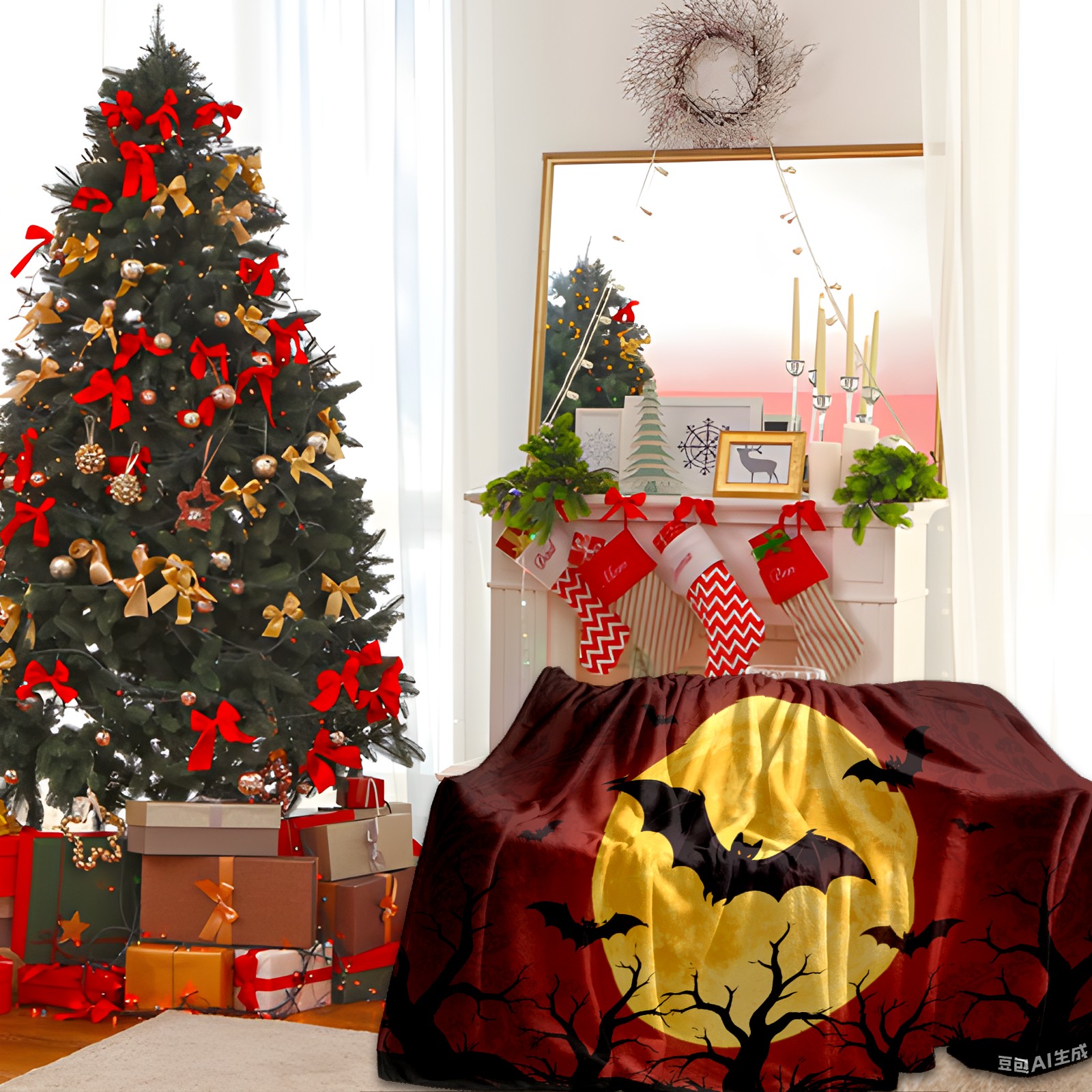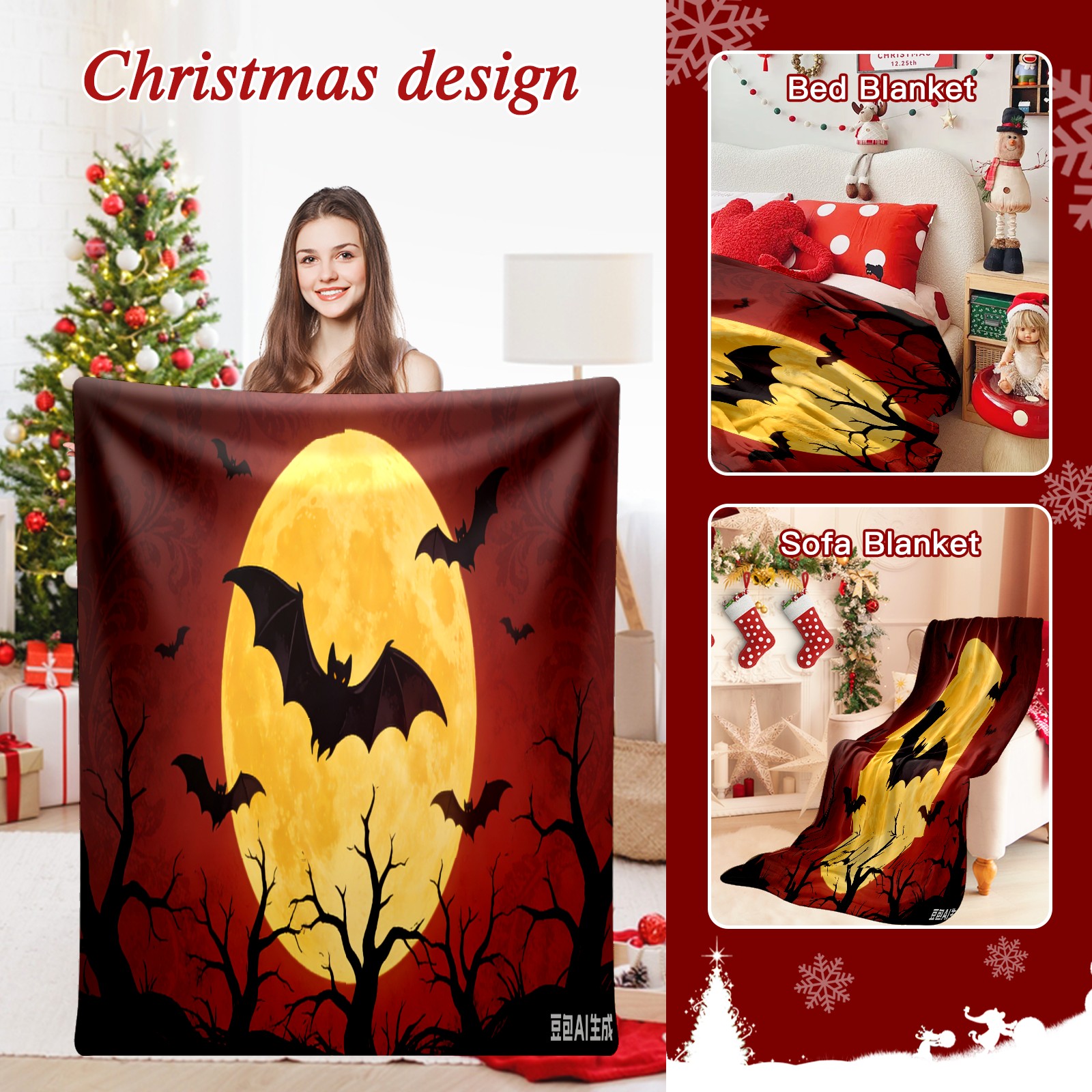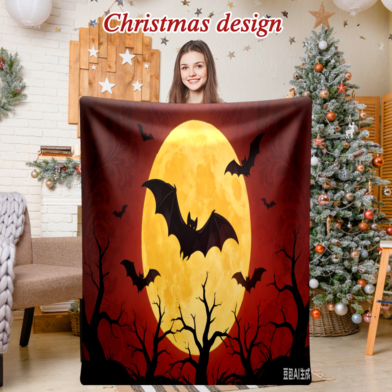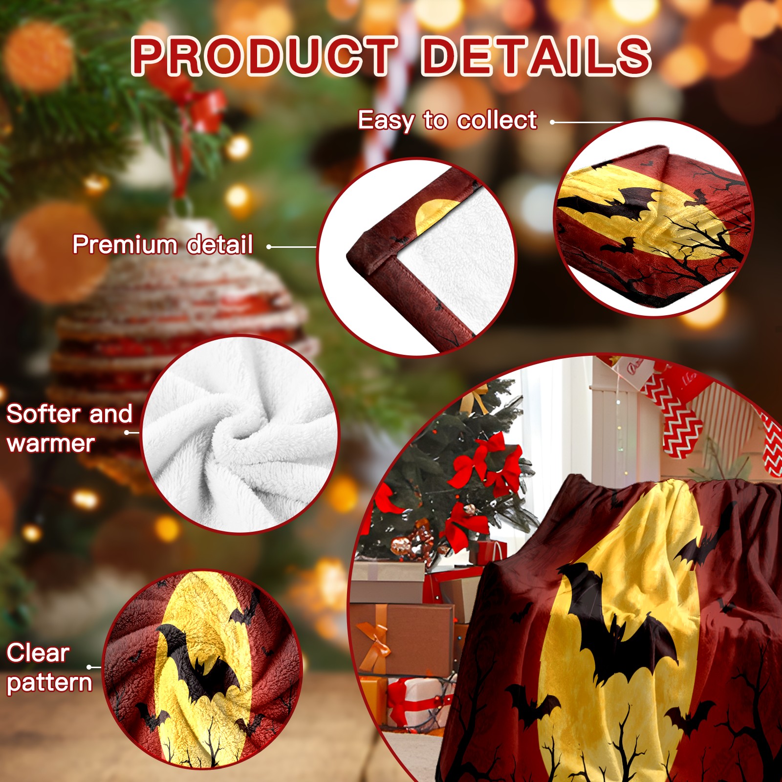 Премиальная фланелевая одеяло Halloween Bats