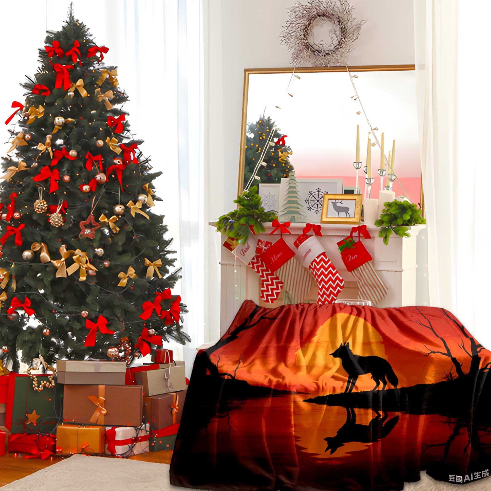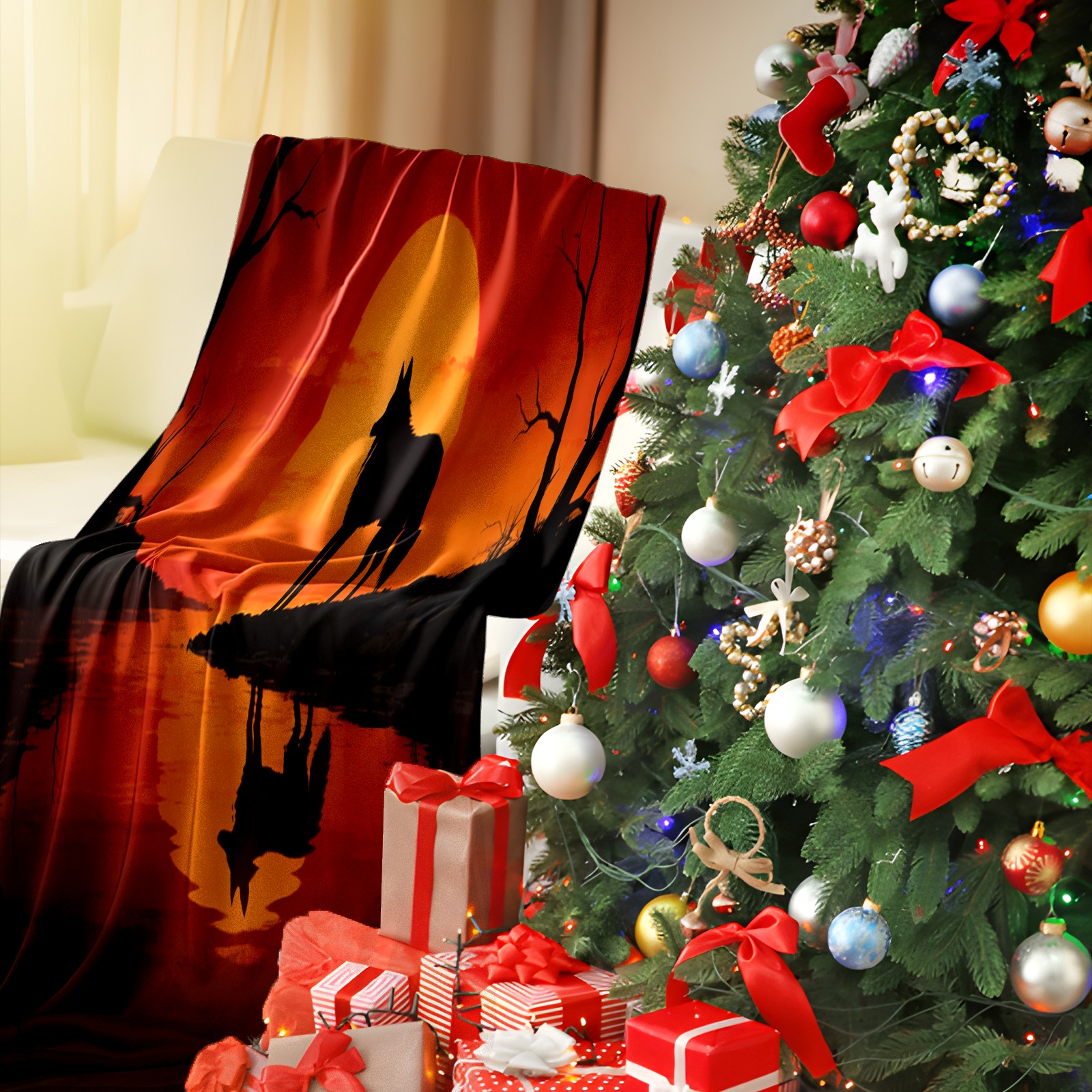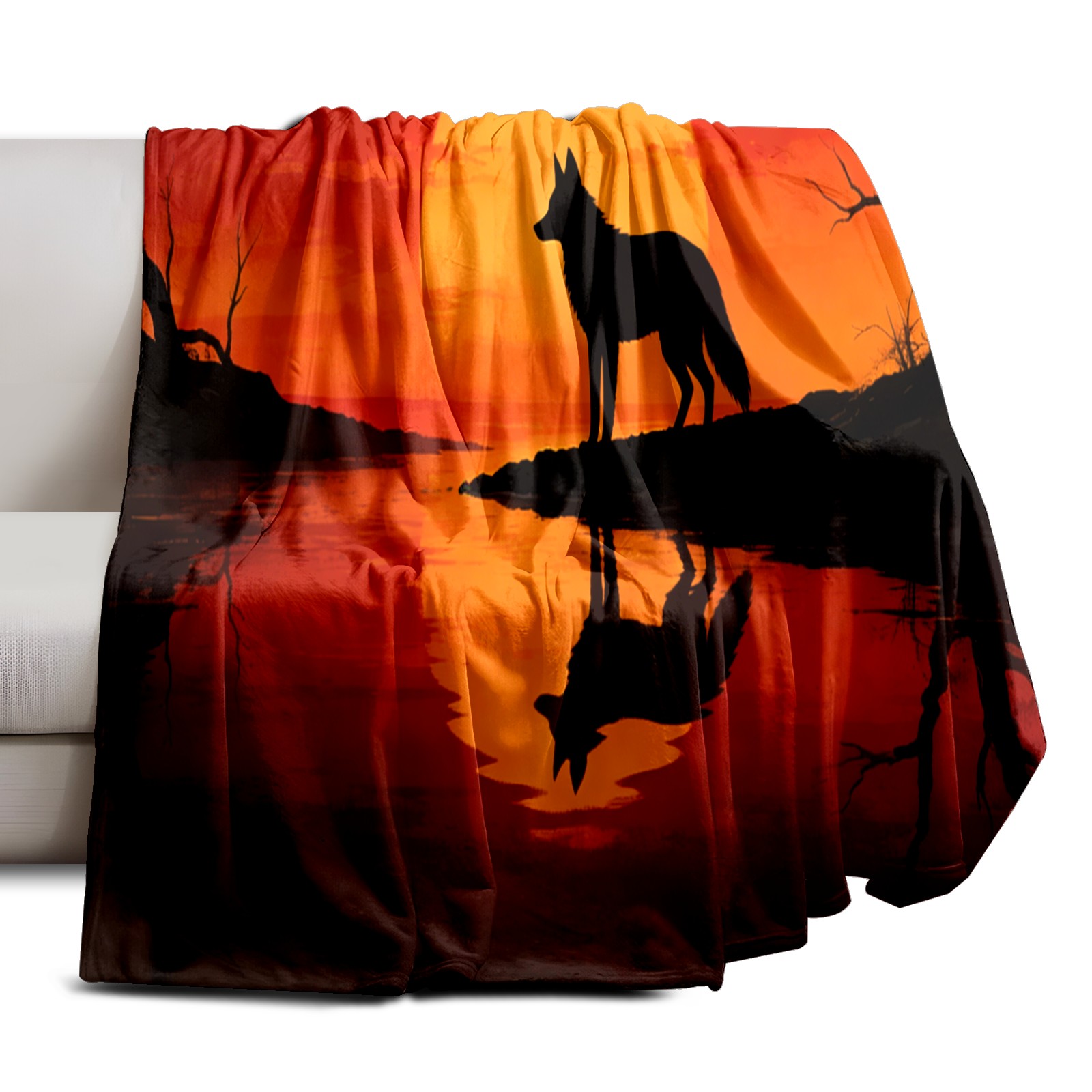 Премиальная фланелевая одеяло Sunset Wolf