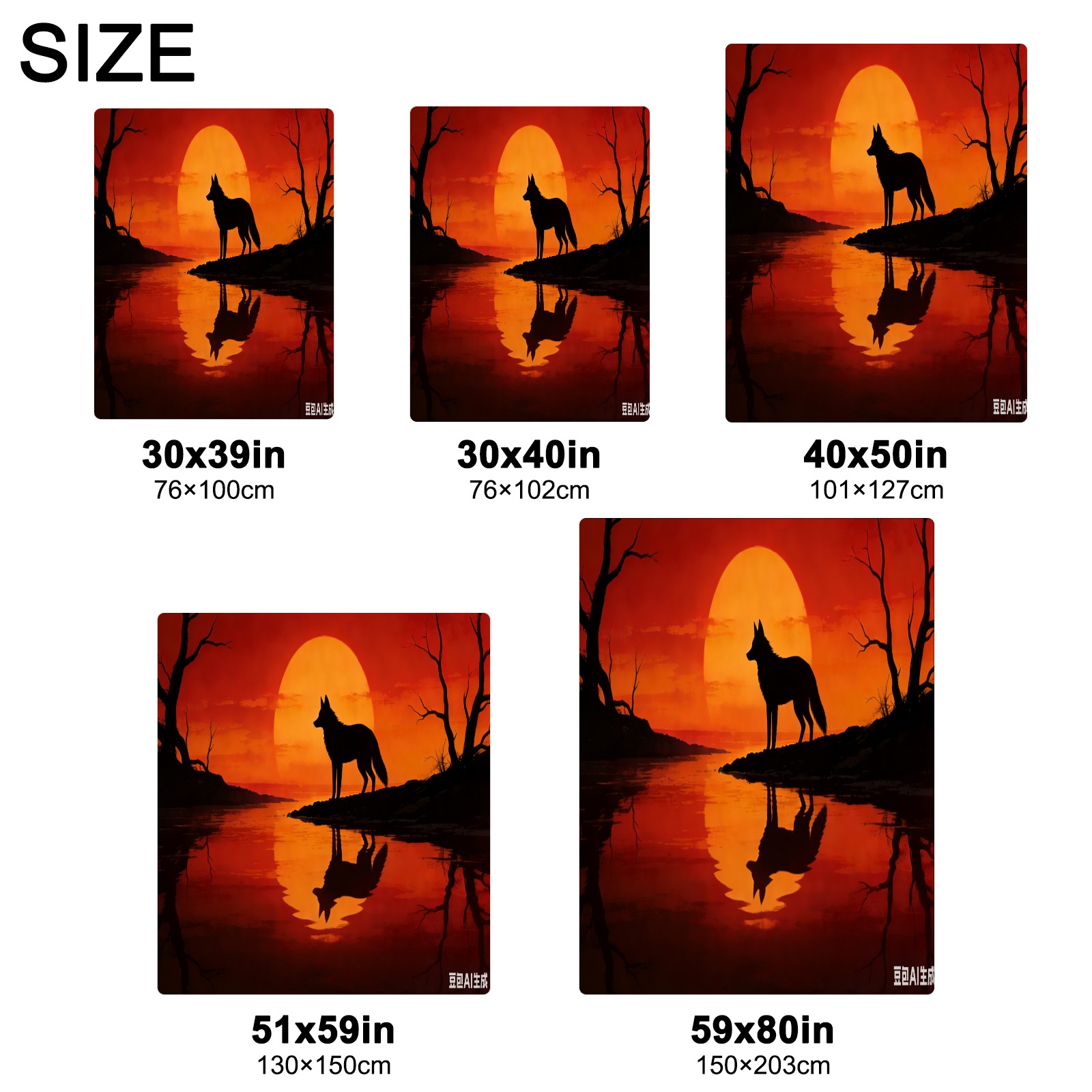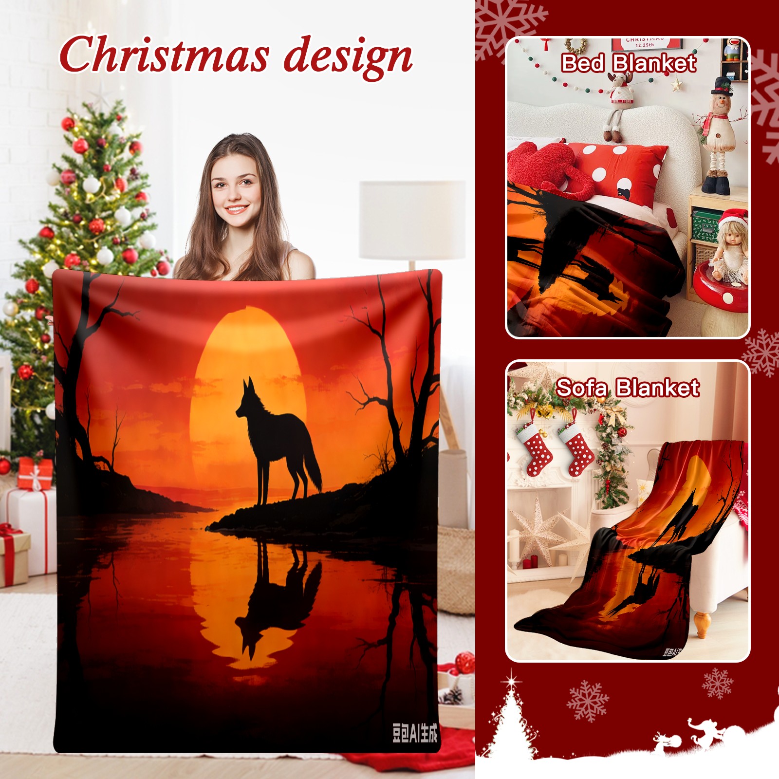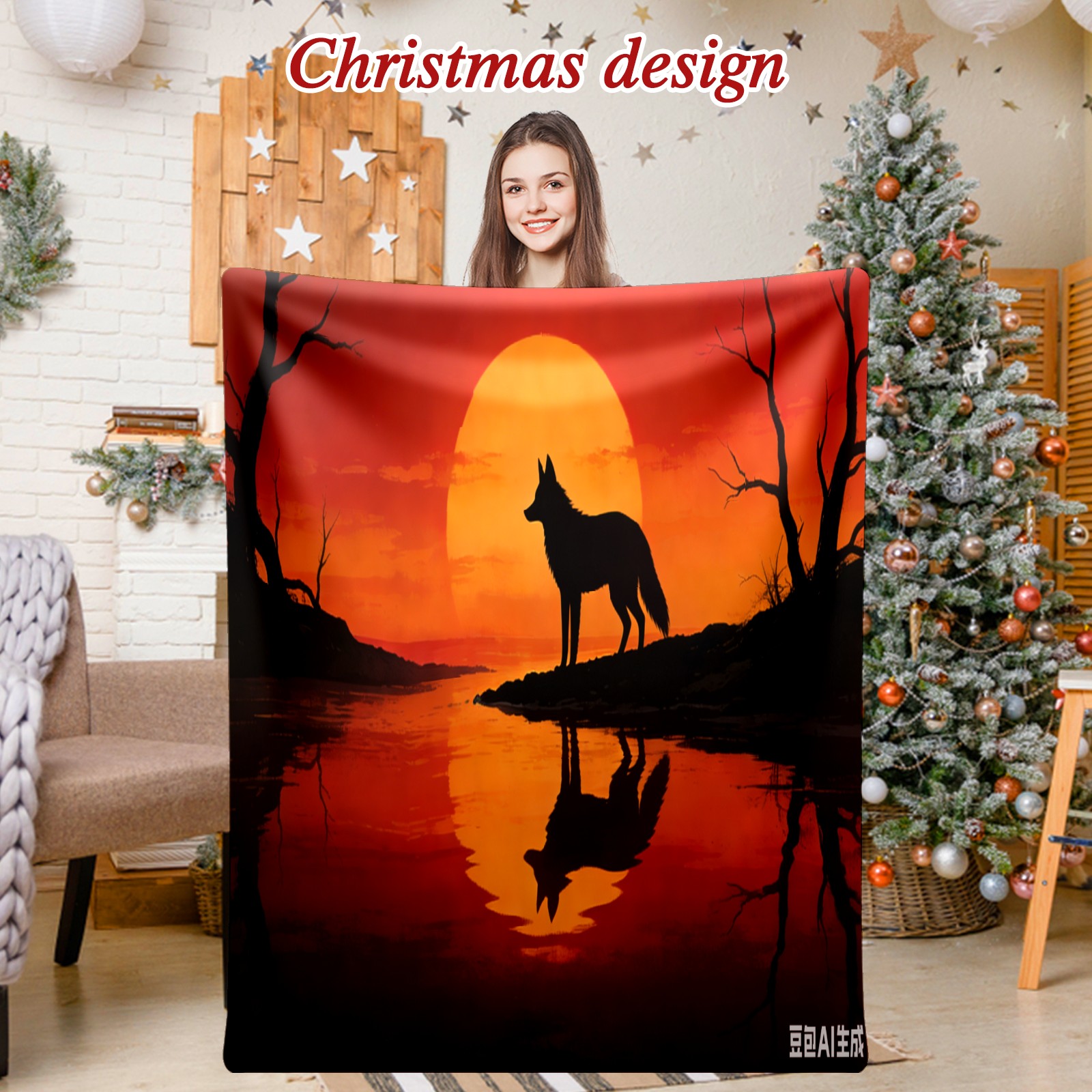 Премиальная фланелевая одеяло Sunset Wolf