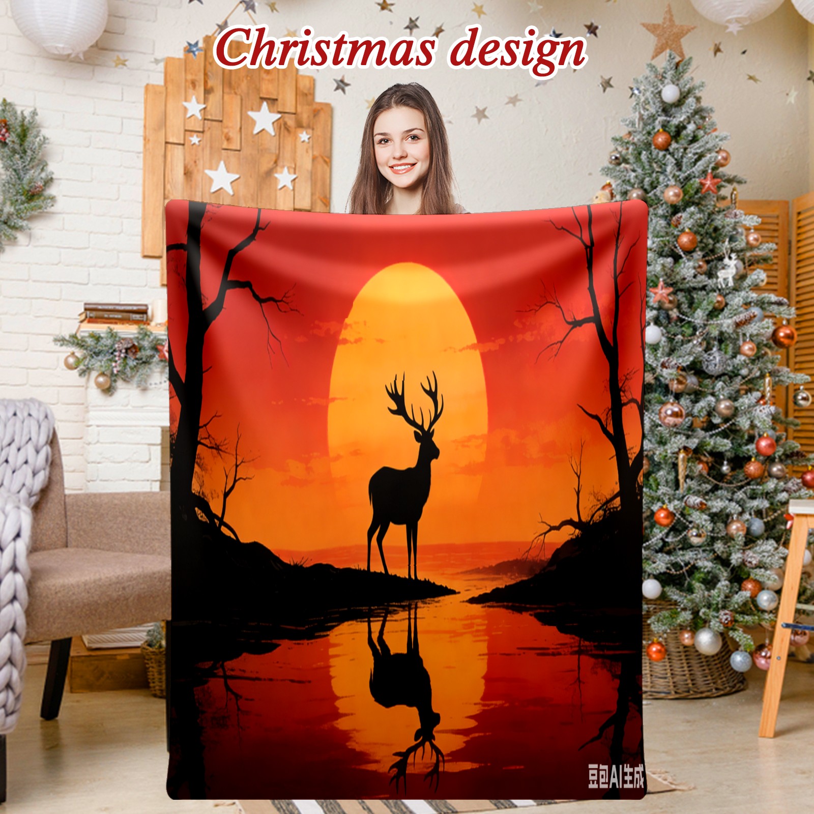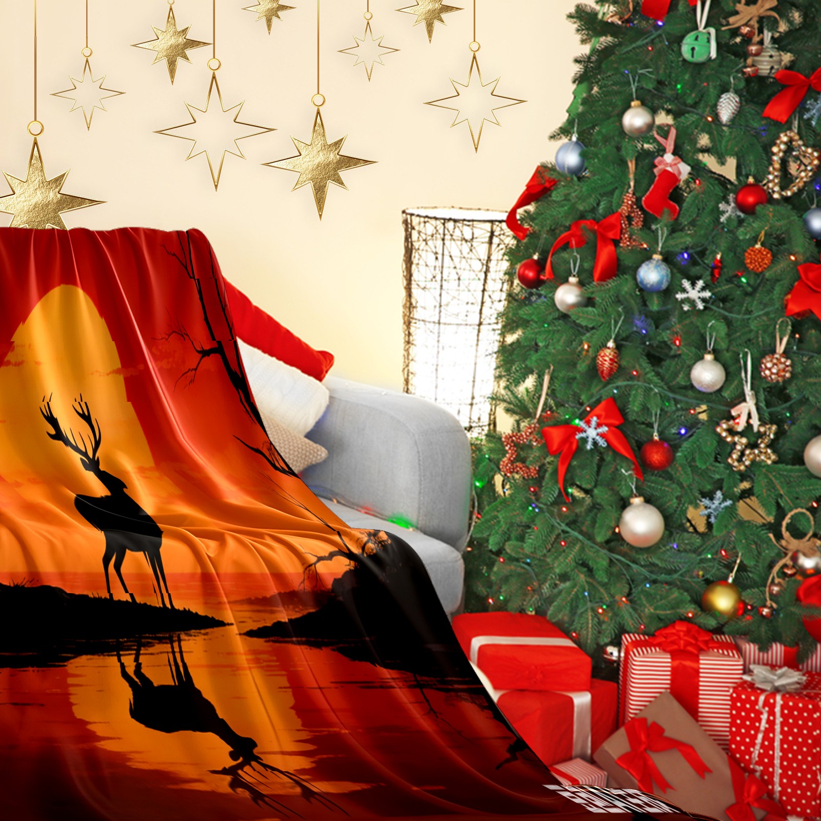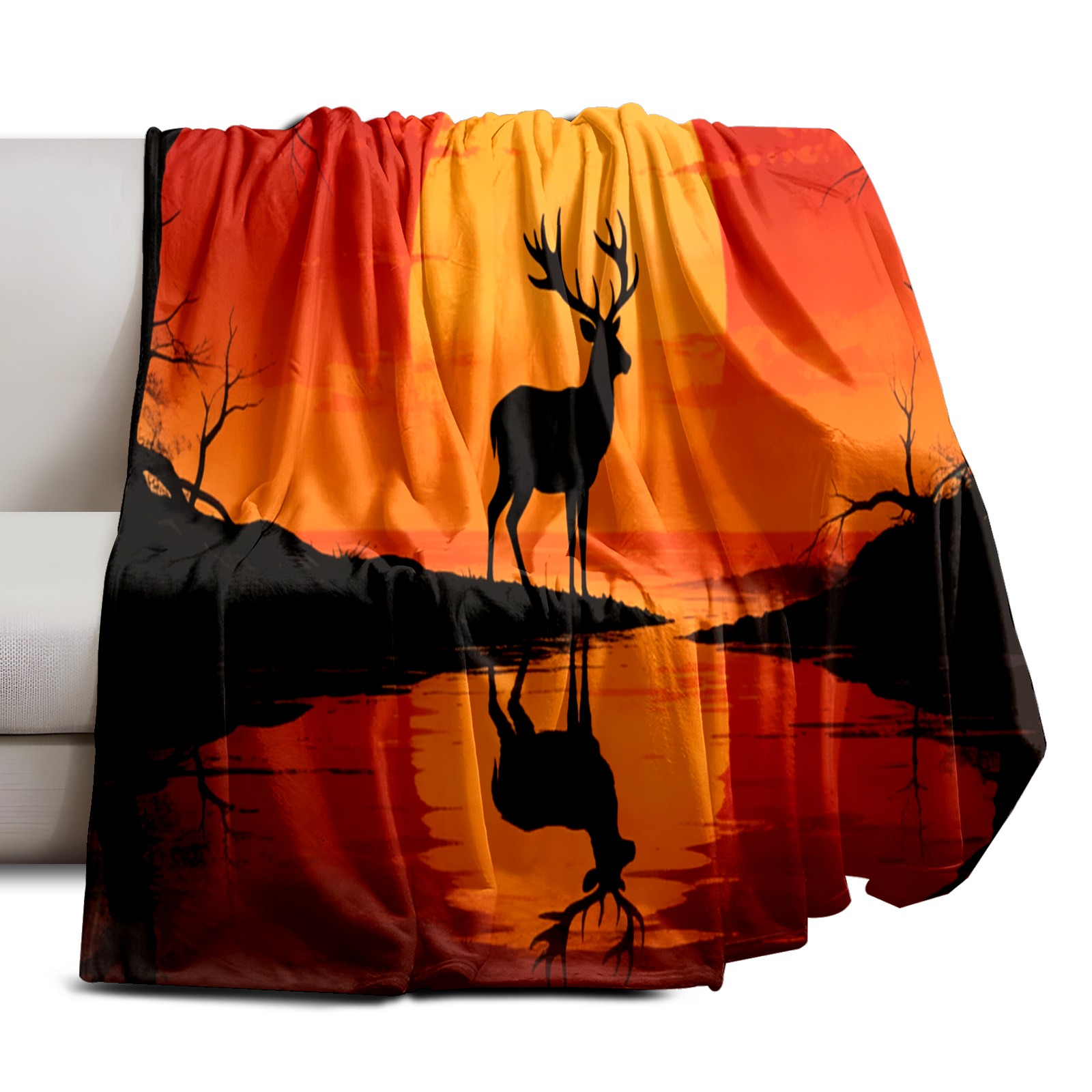 Премиальная фланелевая одеяло Sunset Deer 1