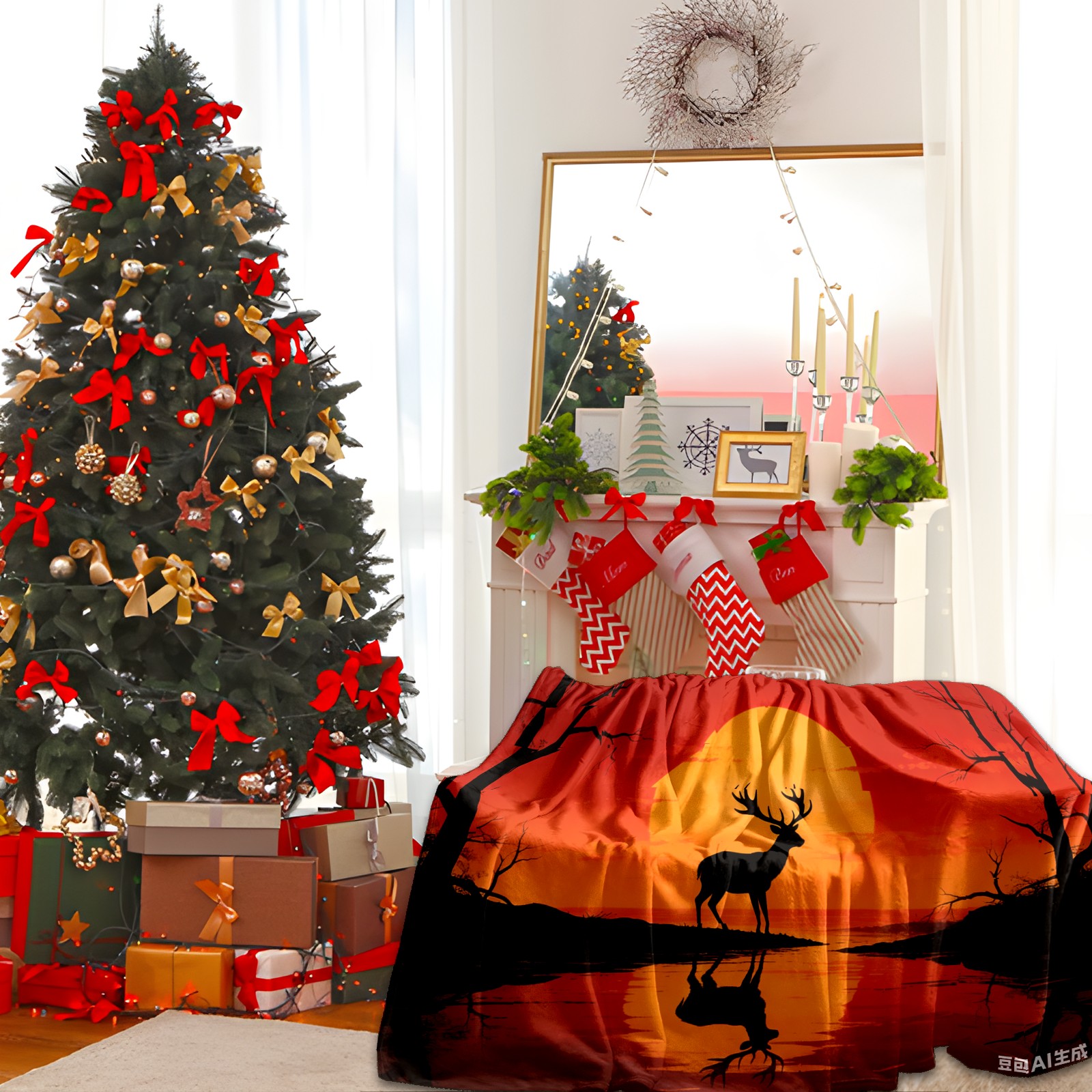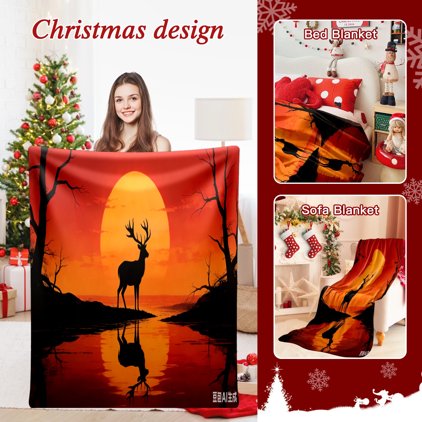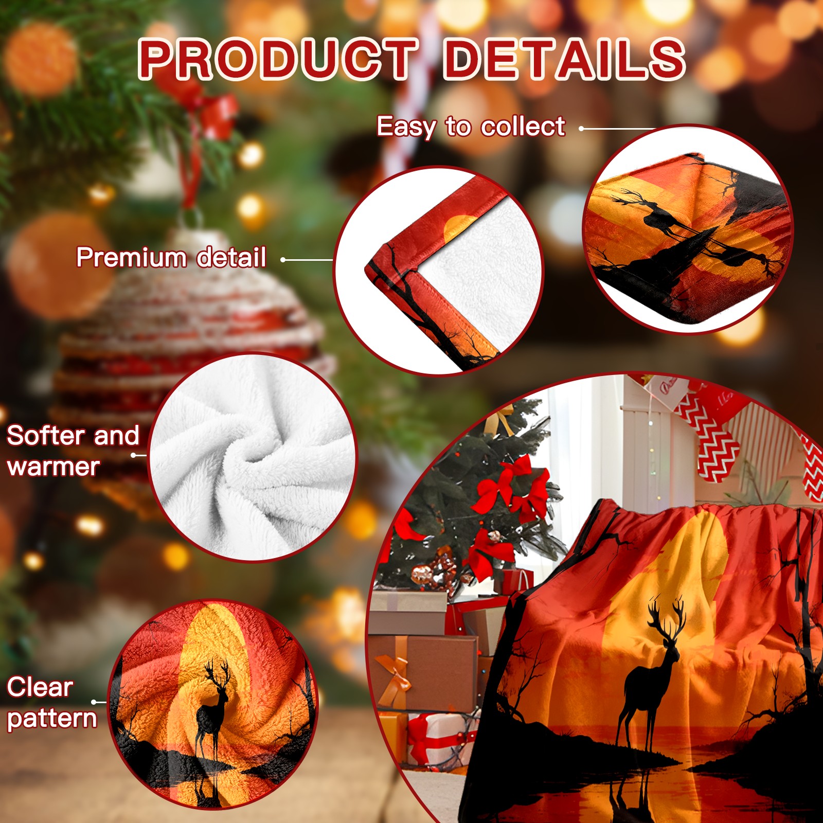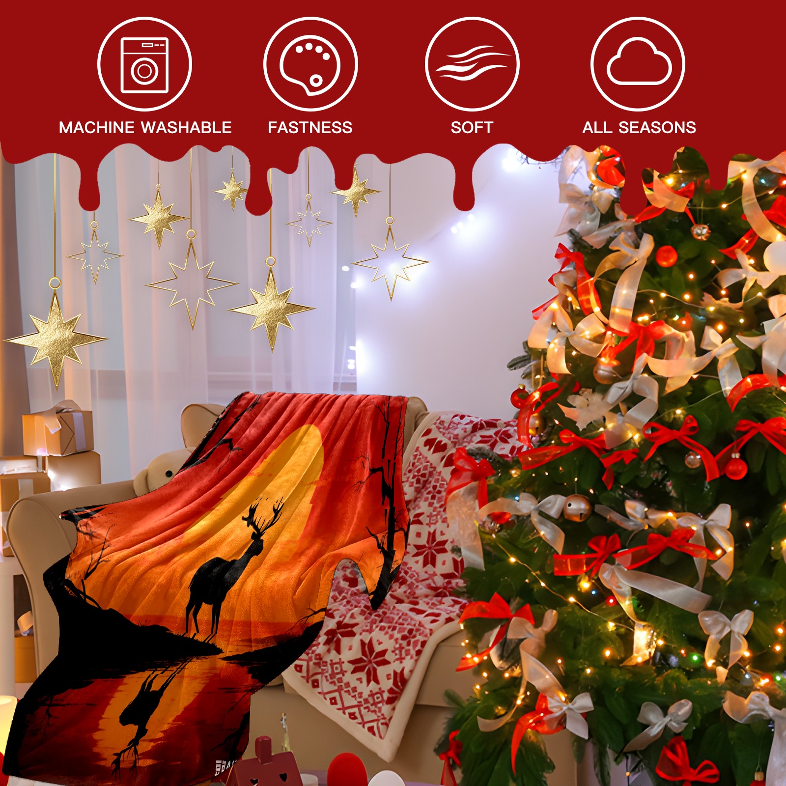 Премиальная фланелевая одеяло Sunset Deer 1