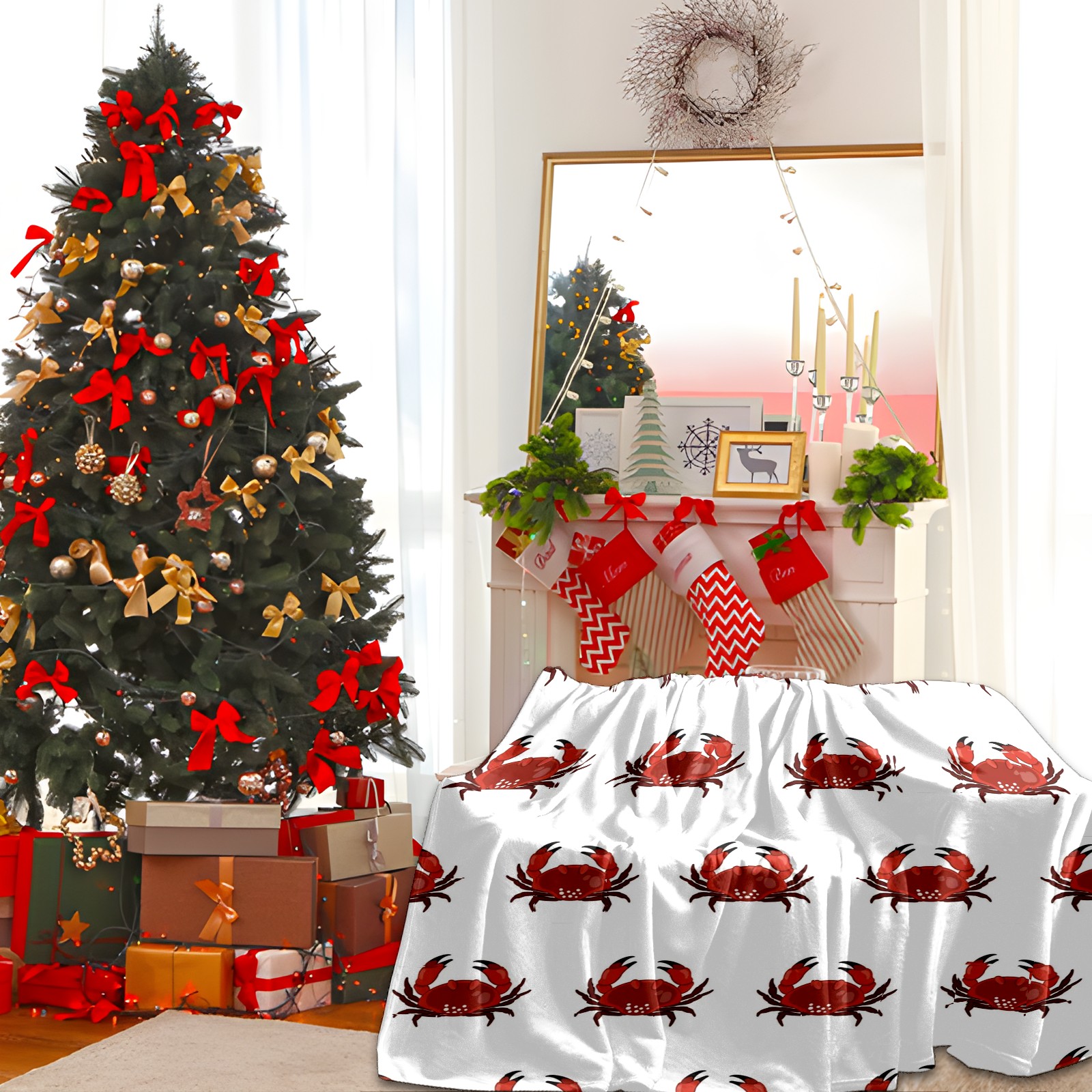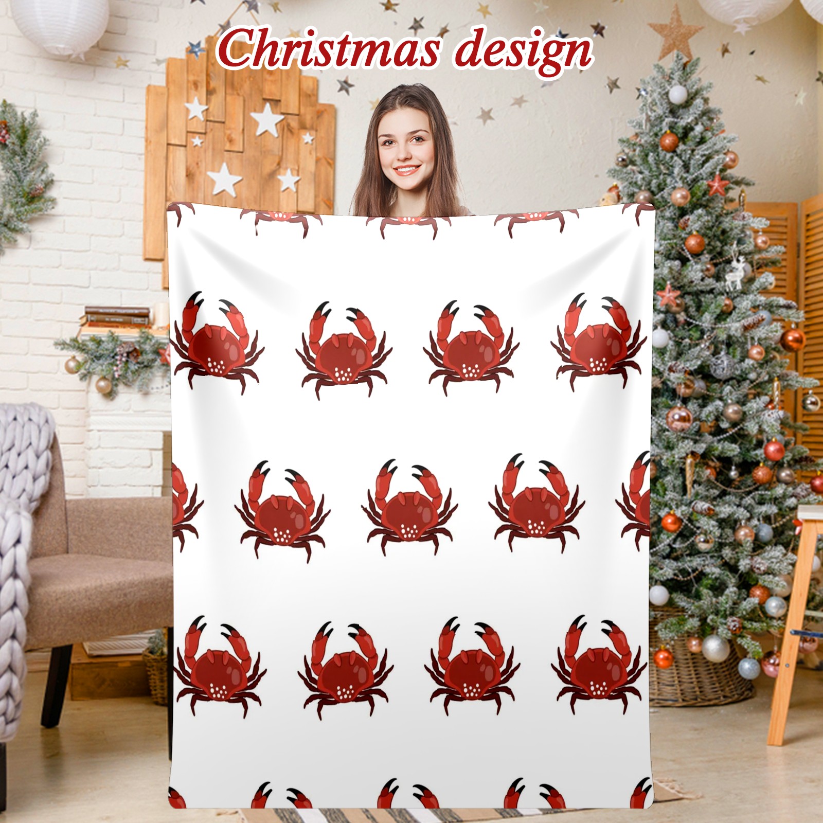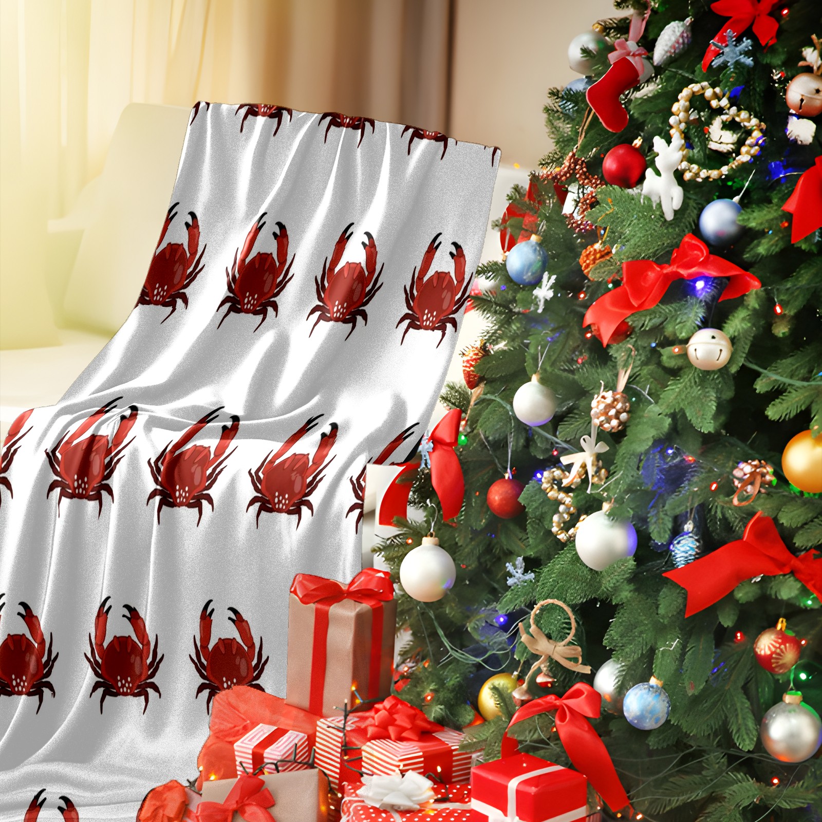 Премиальная фланелевая одеяло White Red Crab