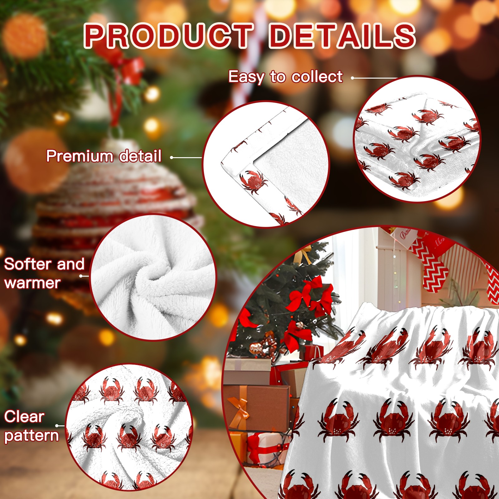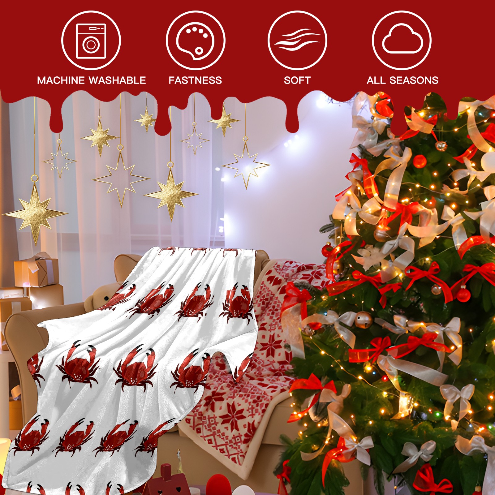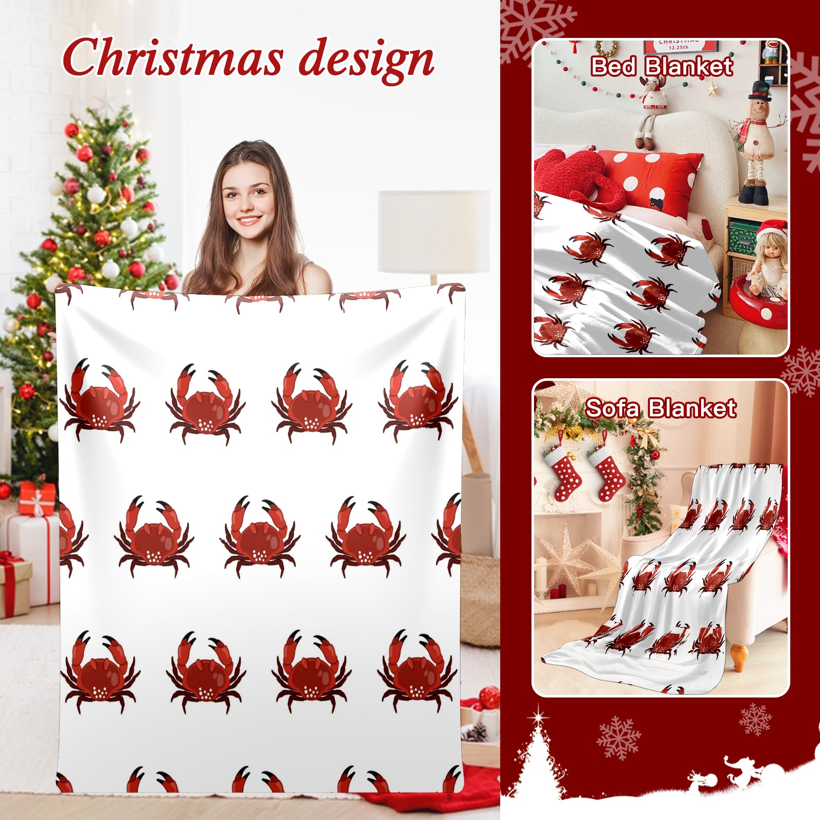 Премиальная фланелевая одеяло White Red Crab