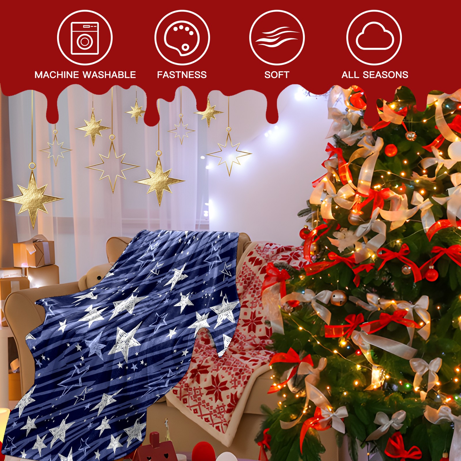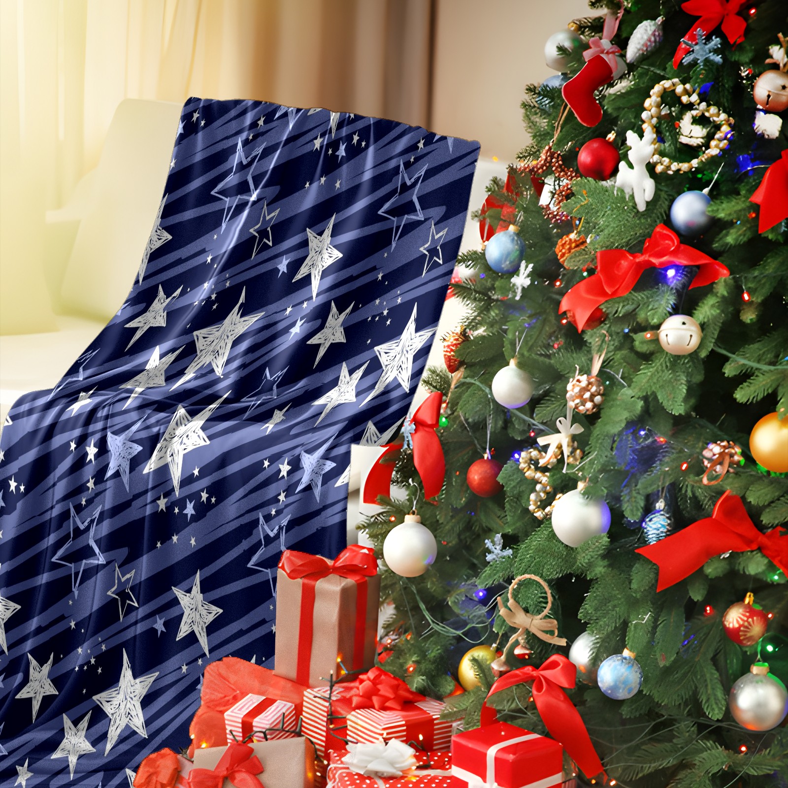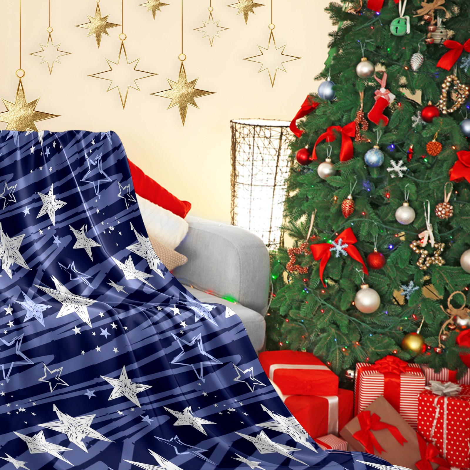 Премиальная фланелевая одеяло Dark Blue Stars