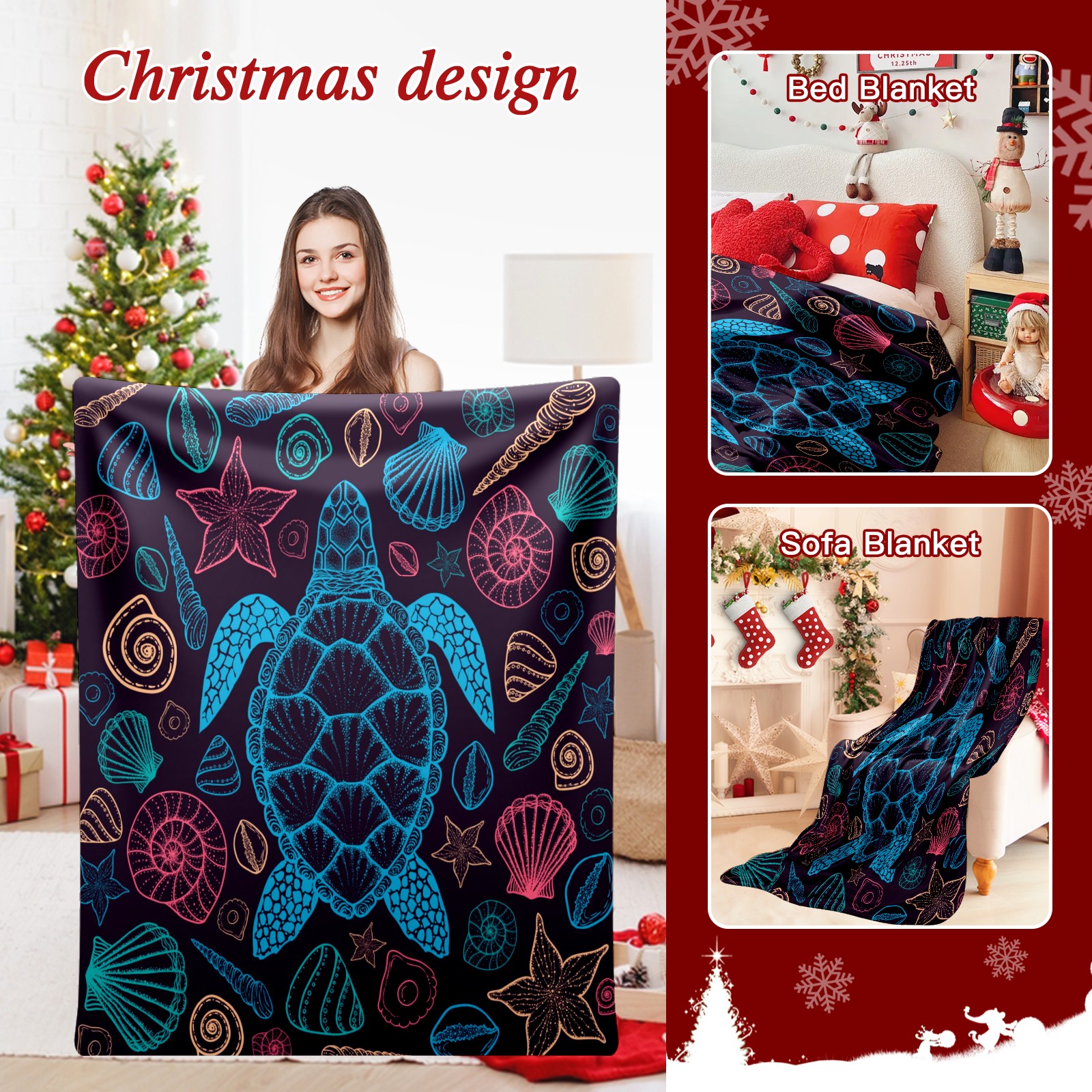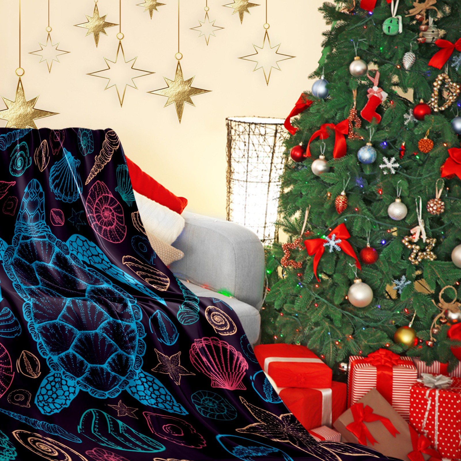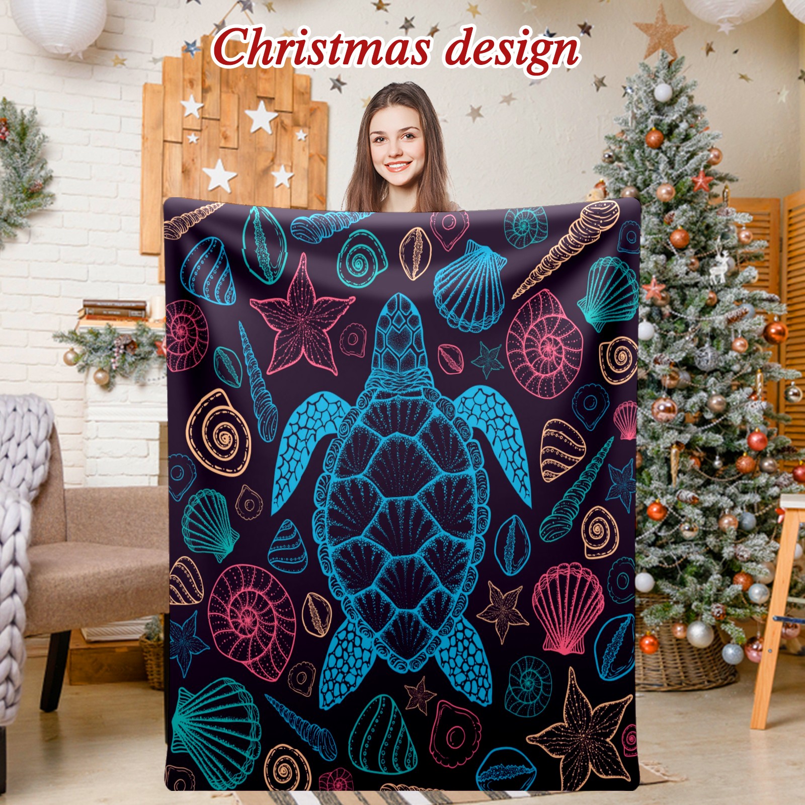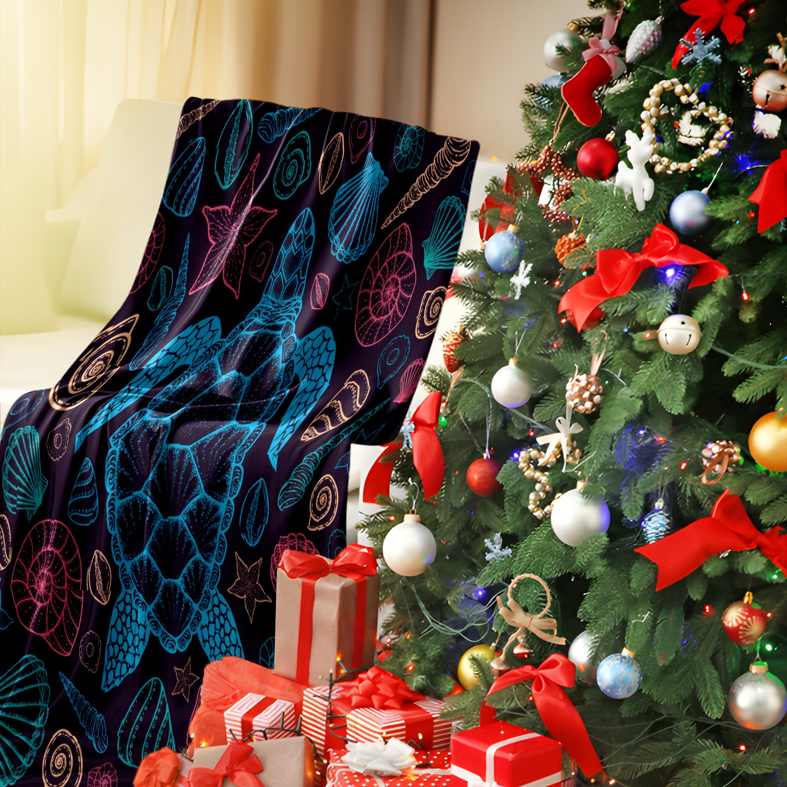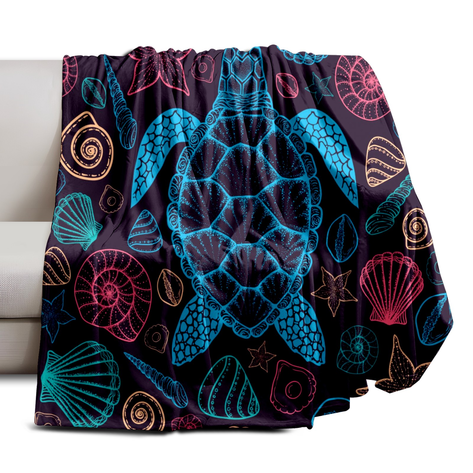 Премиальная фланелевая одеяло Colorful Sea Turtle Shells