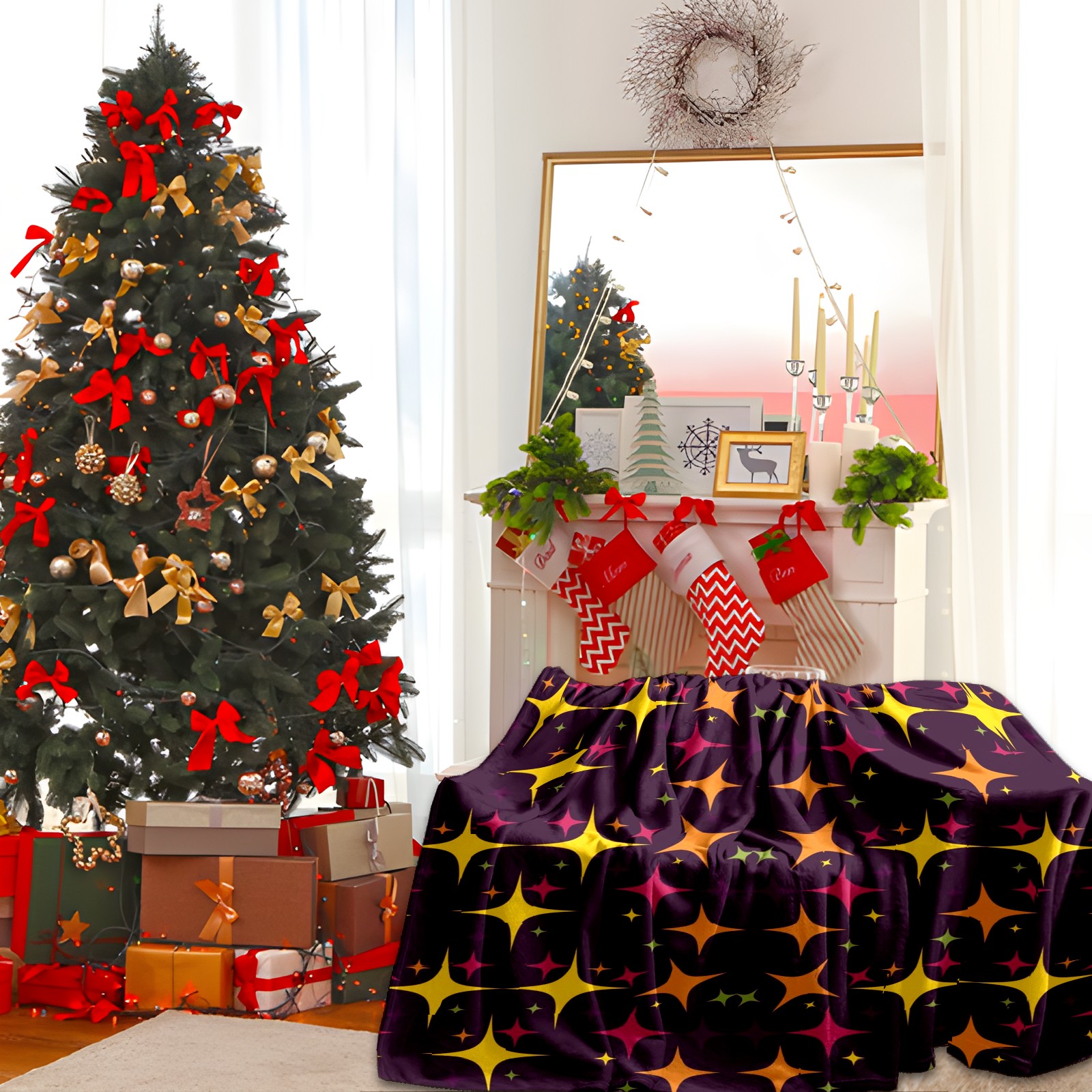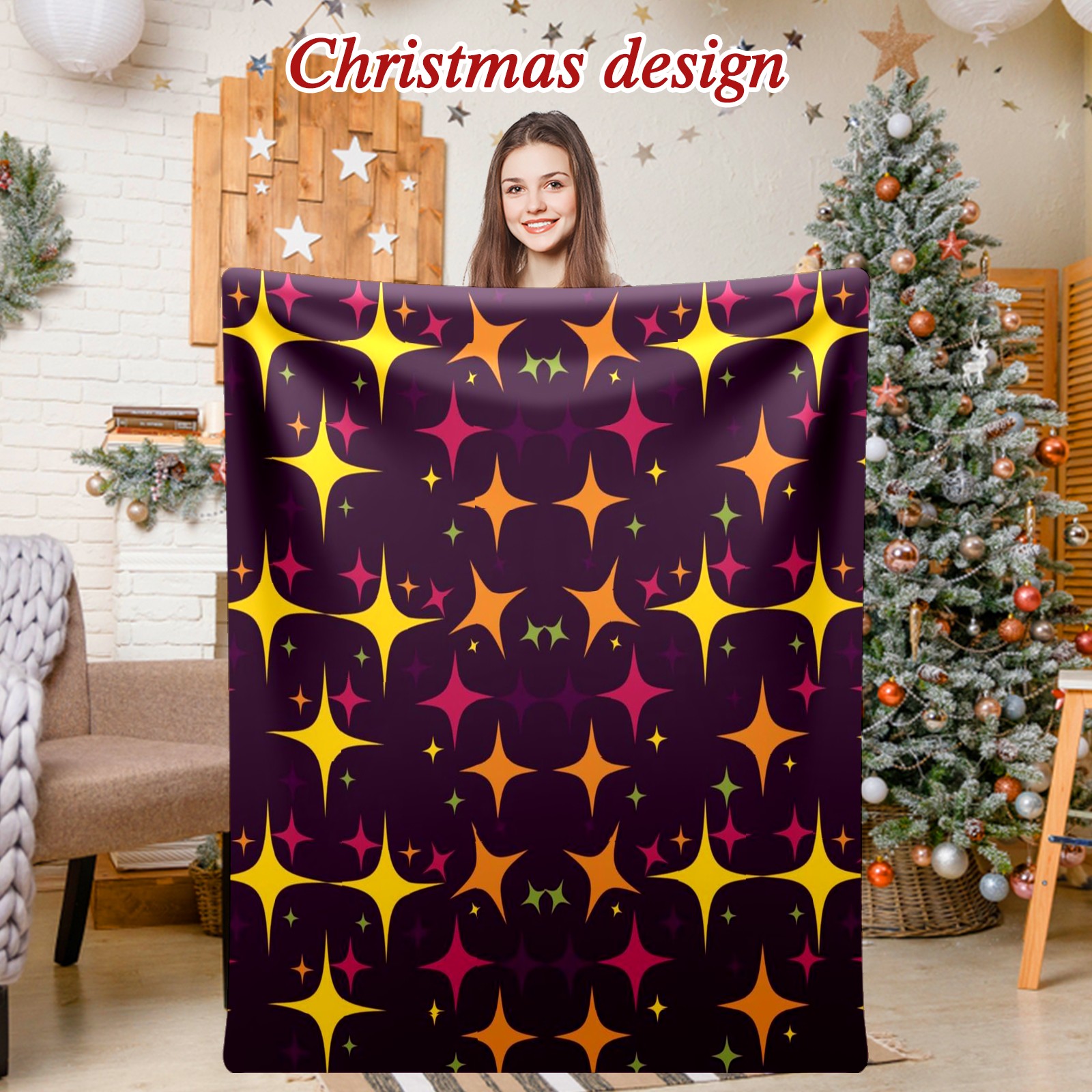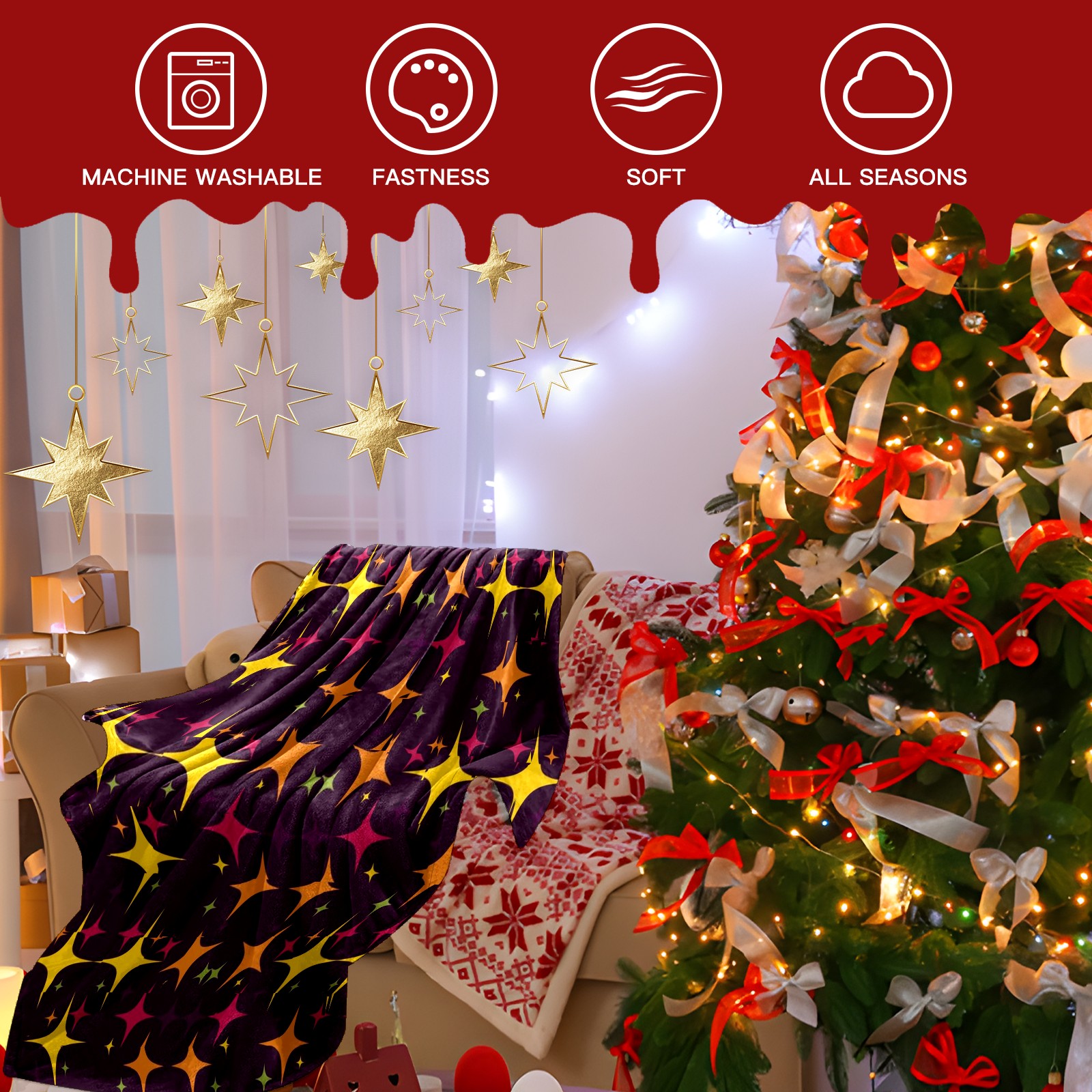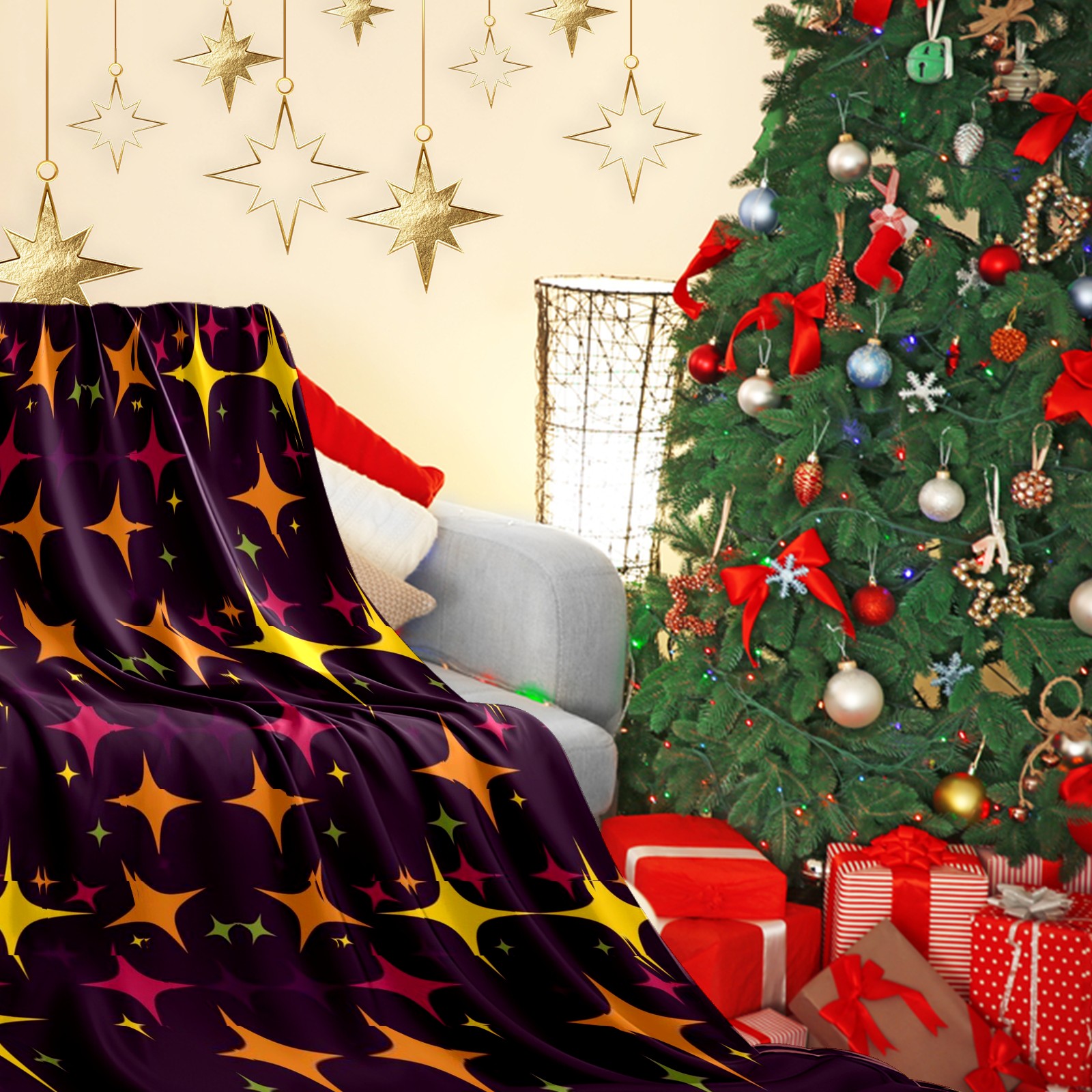 Премиальная фланелевая одеяло Colorful Stars