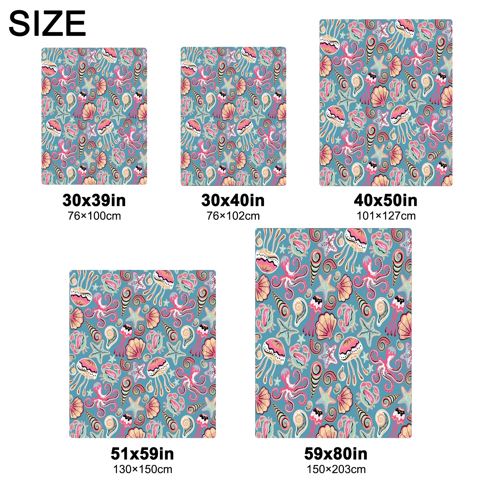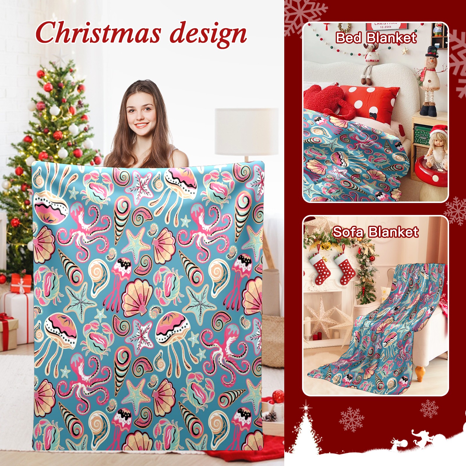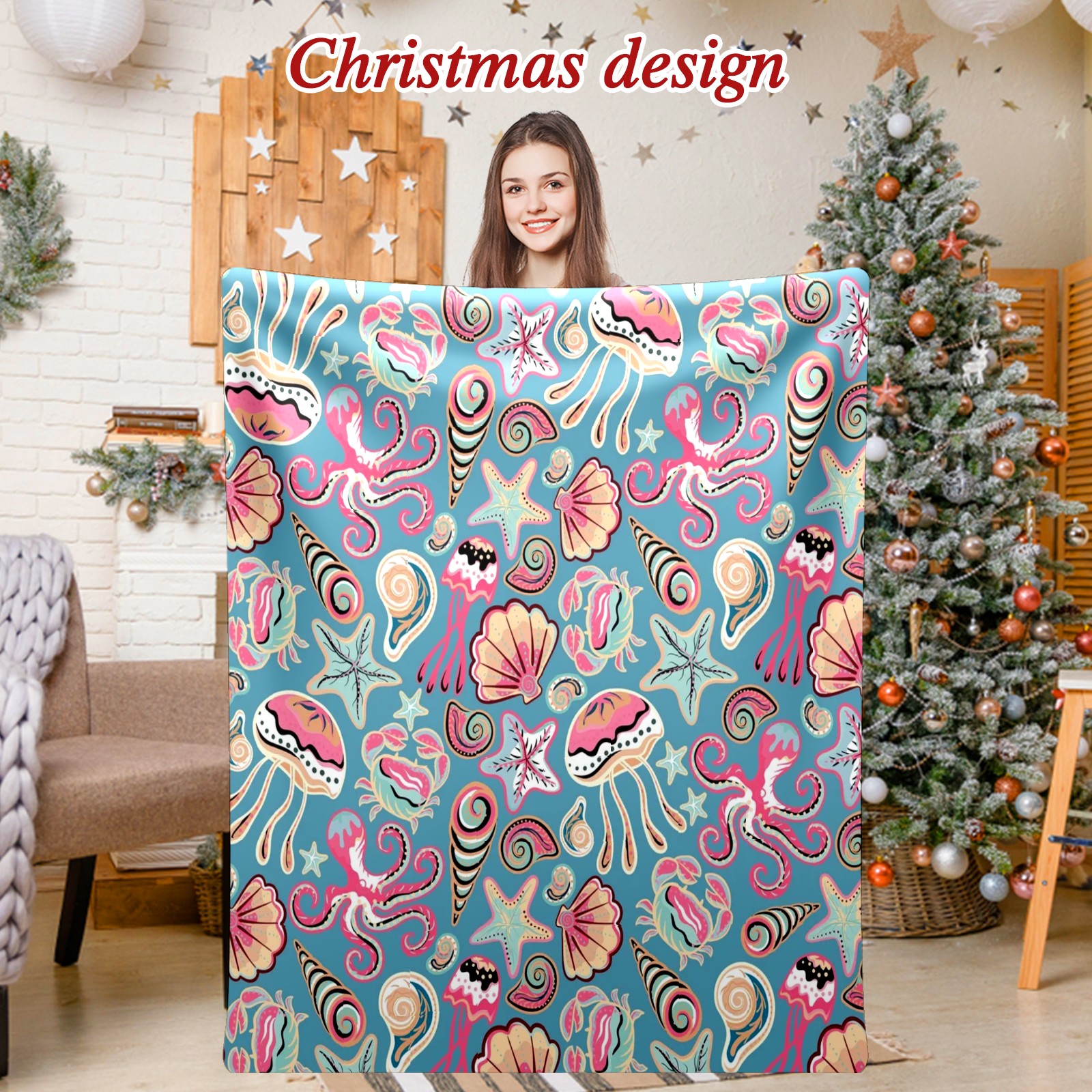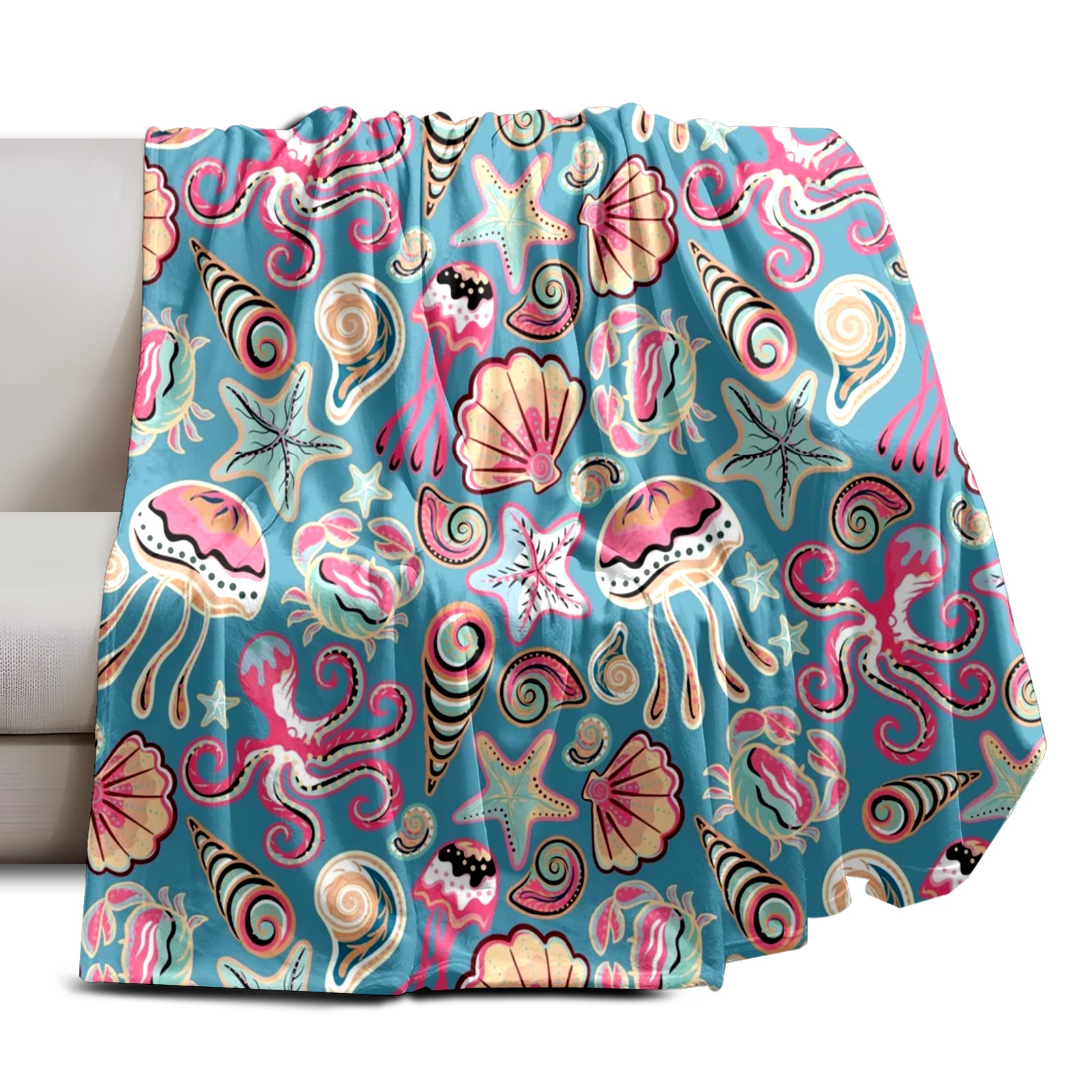 Премиальная фланелевая одеяло Colorful Sea Shells
