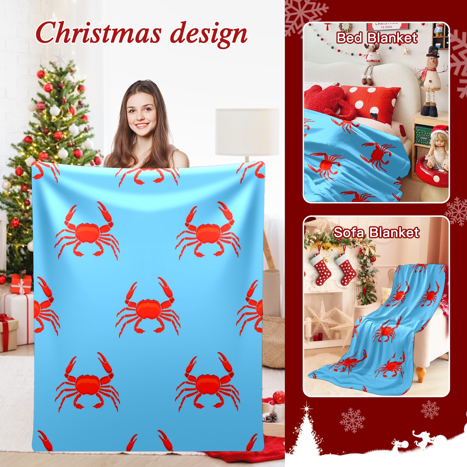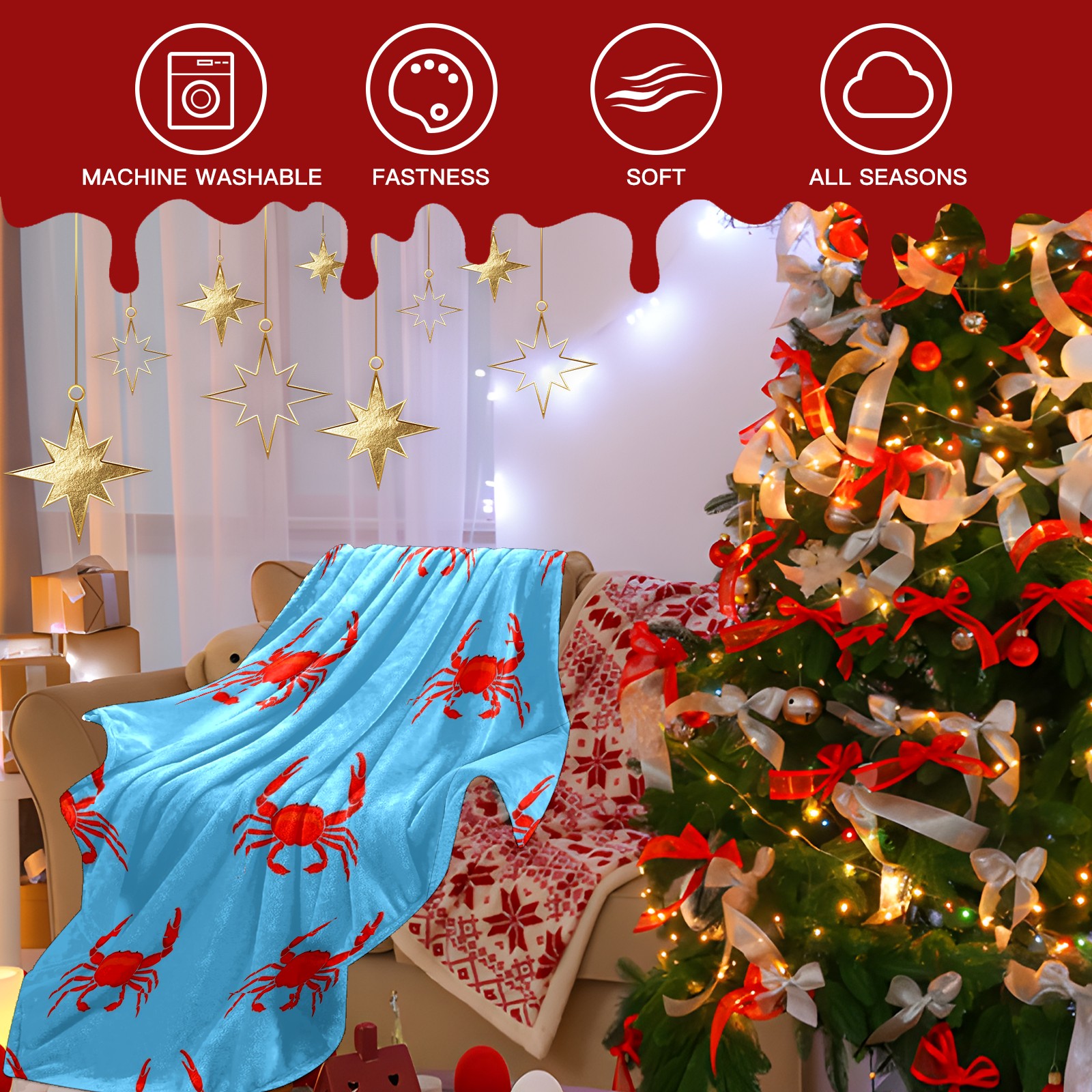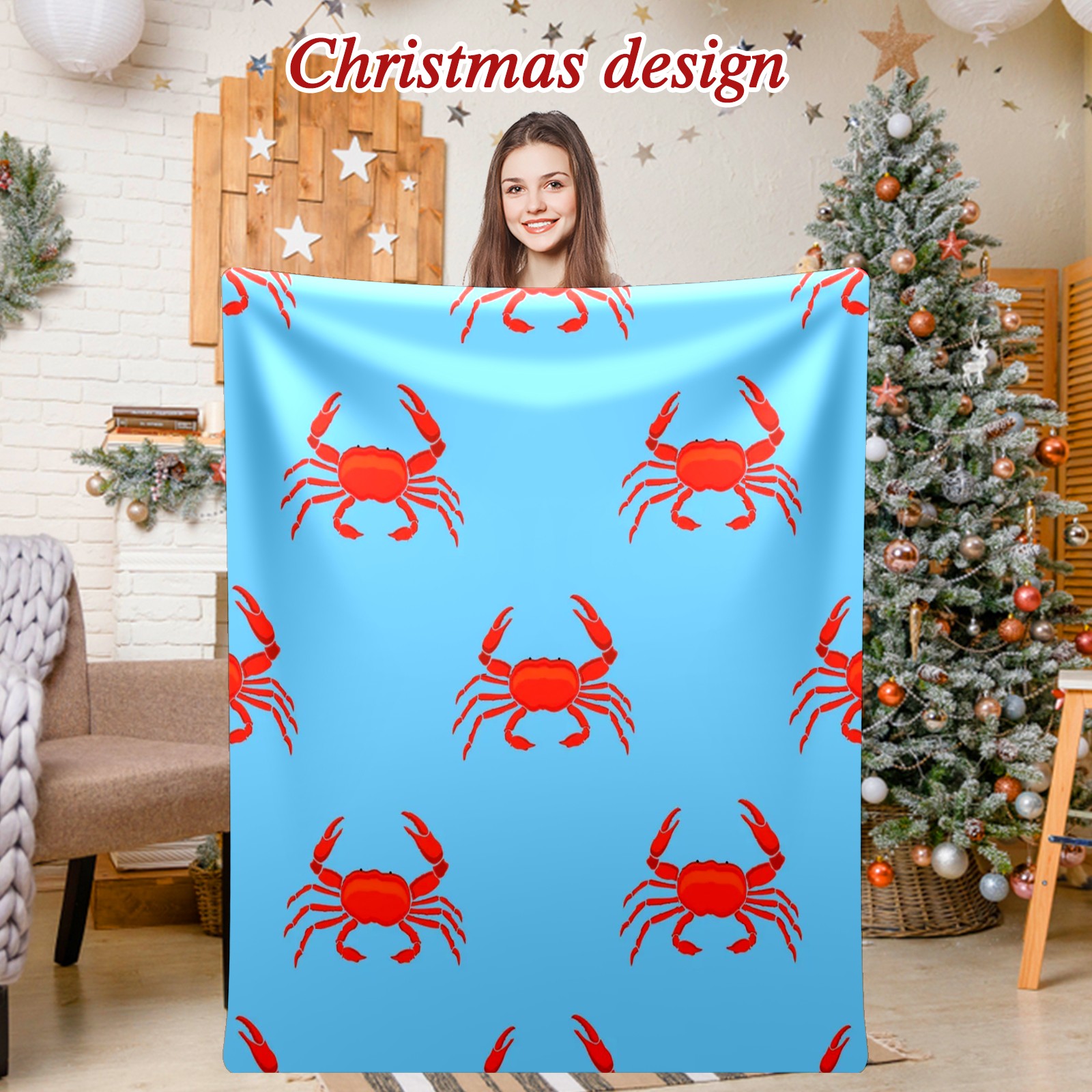 Премиальная фланелевая одеяло Blue Red Crab